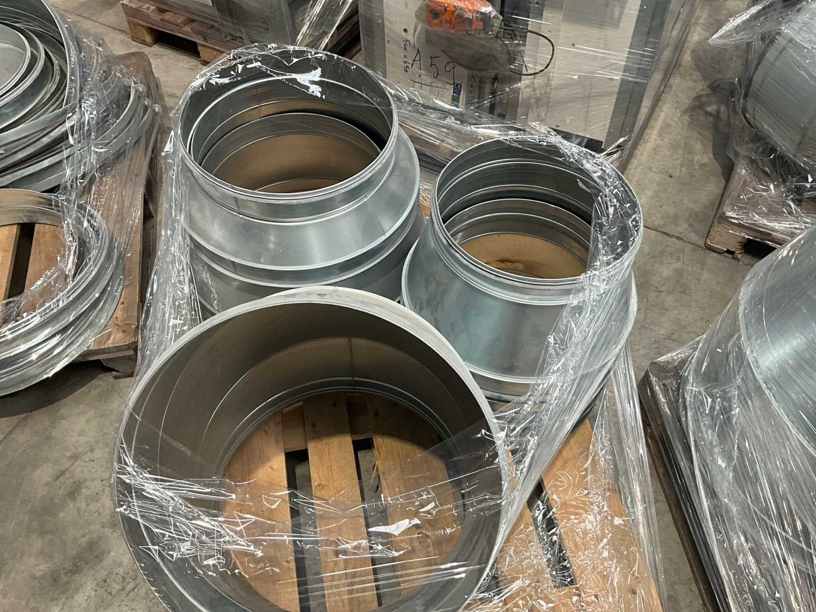 Bestaand uit 4x verloopstuk, +1x bocht 45° diameter 50 cm, +koppel spanringen + afstopdeksels, op 2x pallet, ongebruikt Nee