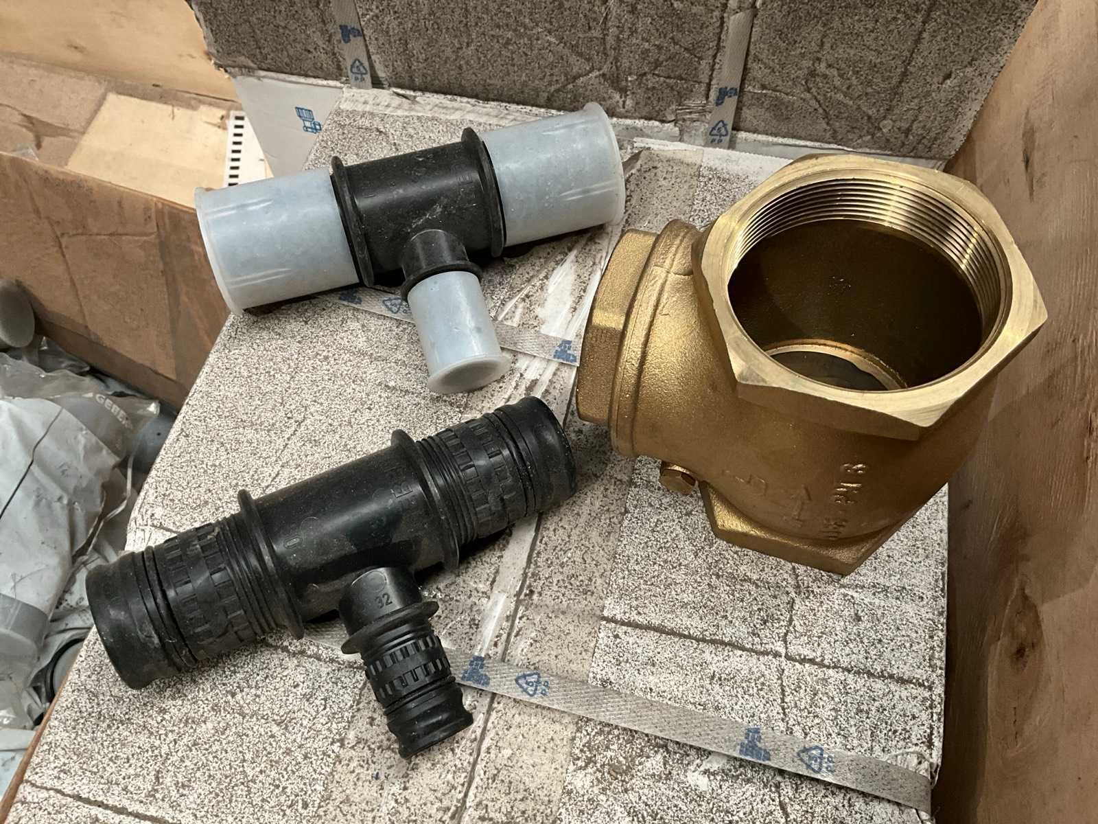 In 4x karton, +circa 30 stuks T- stukken Geberit type Mepla diameter 2x 50 + 32 mm, in palletbox, ongebruikt Nee Merk: Bianchi Product type: 2 1/2