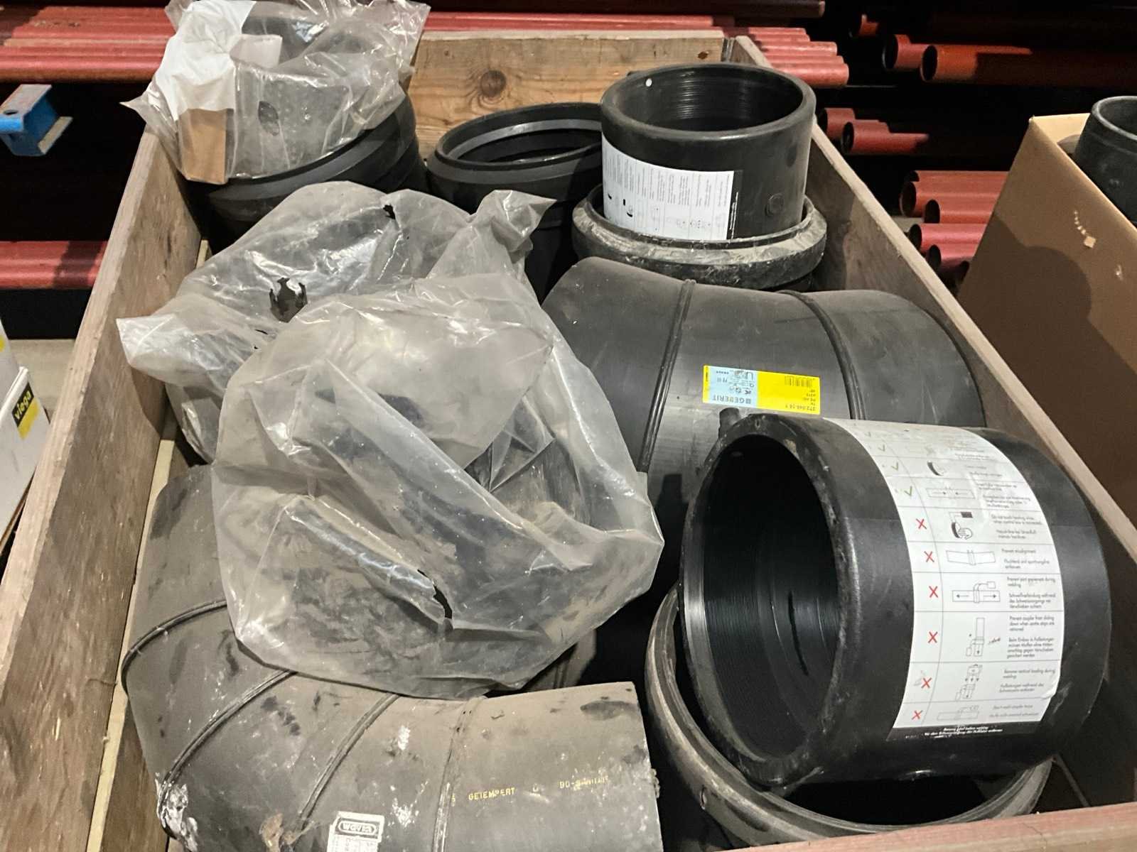 Diverse diameter en koppelstukken/moffen, in palletbox Nee Merk: Geberit-Wavin-Akatherm