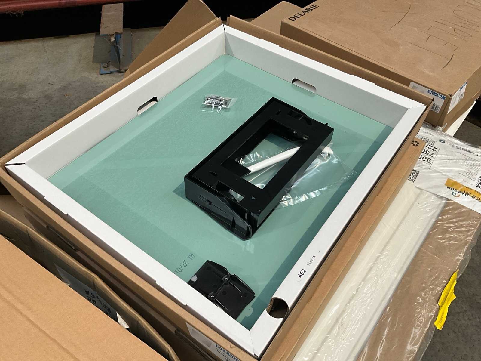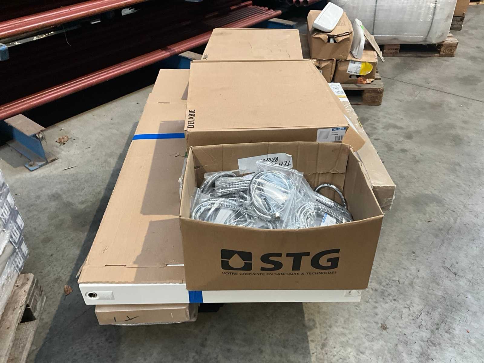 Bestaand uit 1x 90x75x10 cm , +1x 180x90x10 cm, +3x 140x30x10 cm, +3x verstelbare spiegel Delabie type 500x600 mm, + karton met partij Delabie douche flexible, ongebruikt, in originele verpakking Nee Merk: Radson