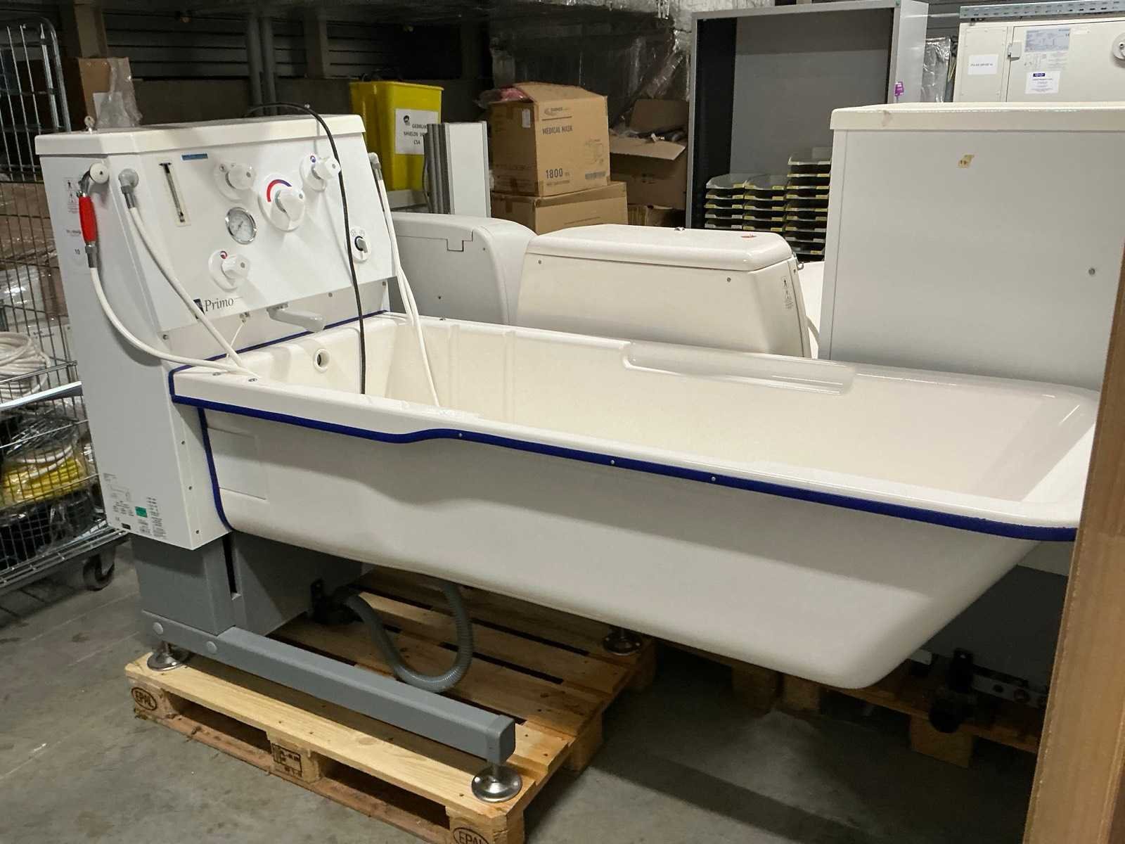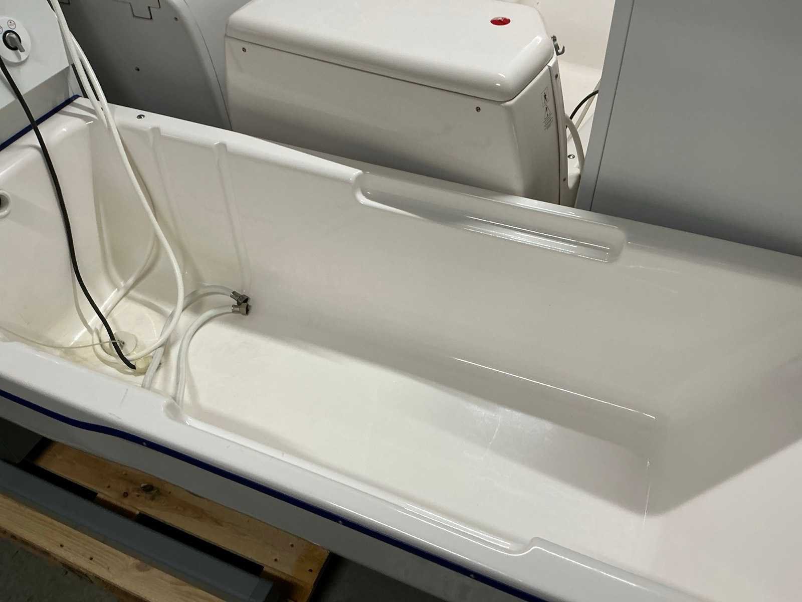 In hoogte verstelbaar bad, 230V Nee Merk: Arjo Model: Primo Lengte: 215cm Breedte: 80cm Hoogte: 136cm