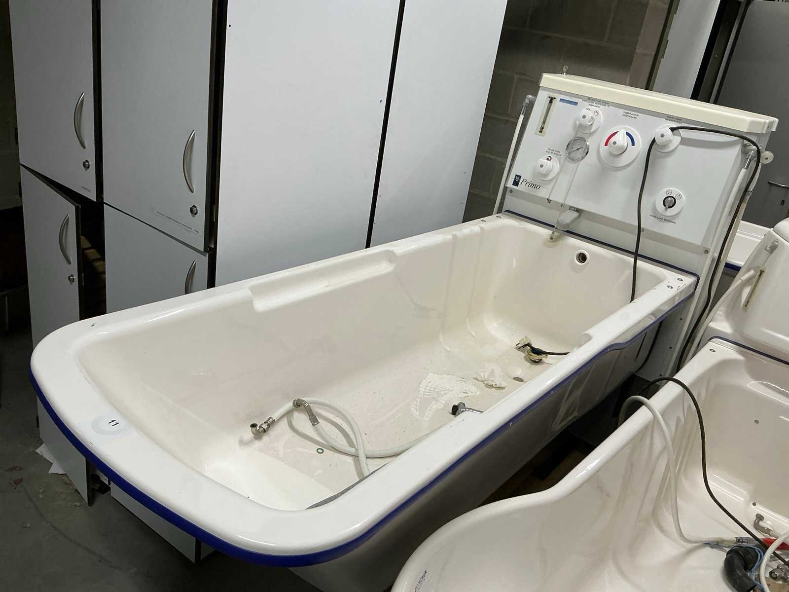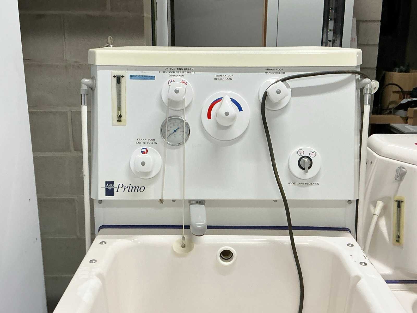 In hoogte verstelbaar bad, 230V Nee Merk: Arjo Model: Primo Lengte: 215cm Breedte: 80cm Hoogte: 136cm