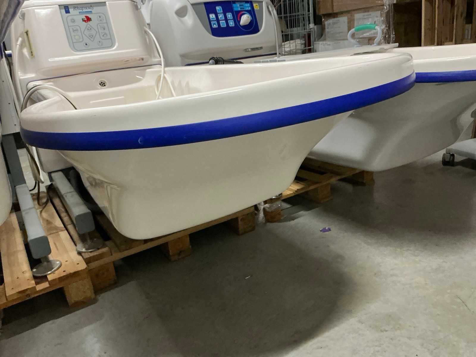 In hoogte verstelbaar bad, 230V Nee Merk: Arjo Model: Rhapsody Lengte: 230cm Breedte: 95cm Hoogte: 106cm