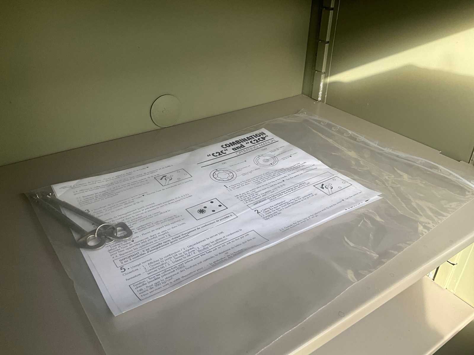 Voorzien van 2 sleutels, zonder slot. Cijfercode ongekend. Nee Merk: Fichet-bauche Lengte: 68cm Breedte: 62cm Hoogte: 114cm