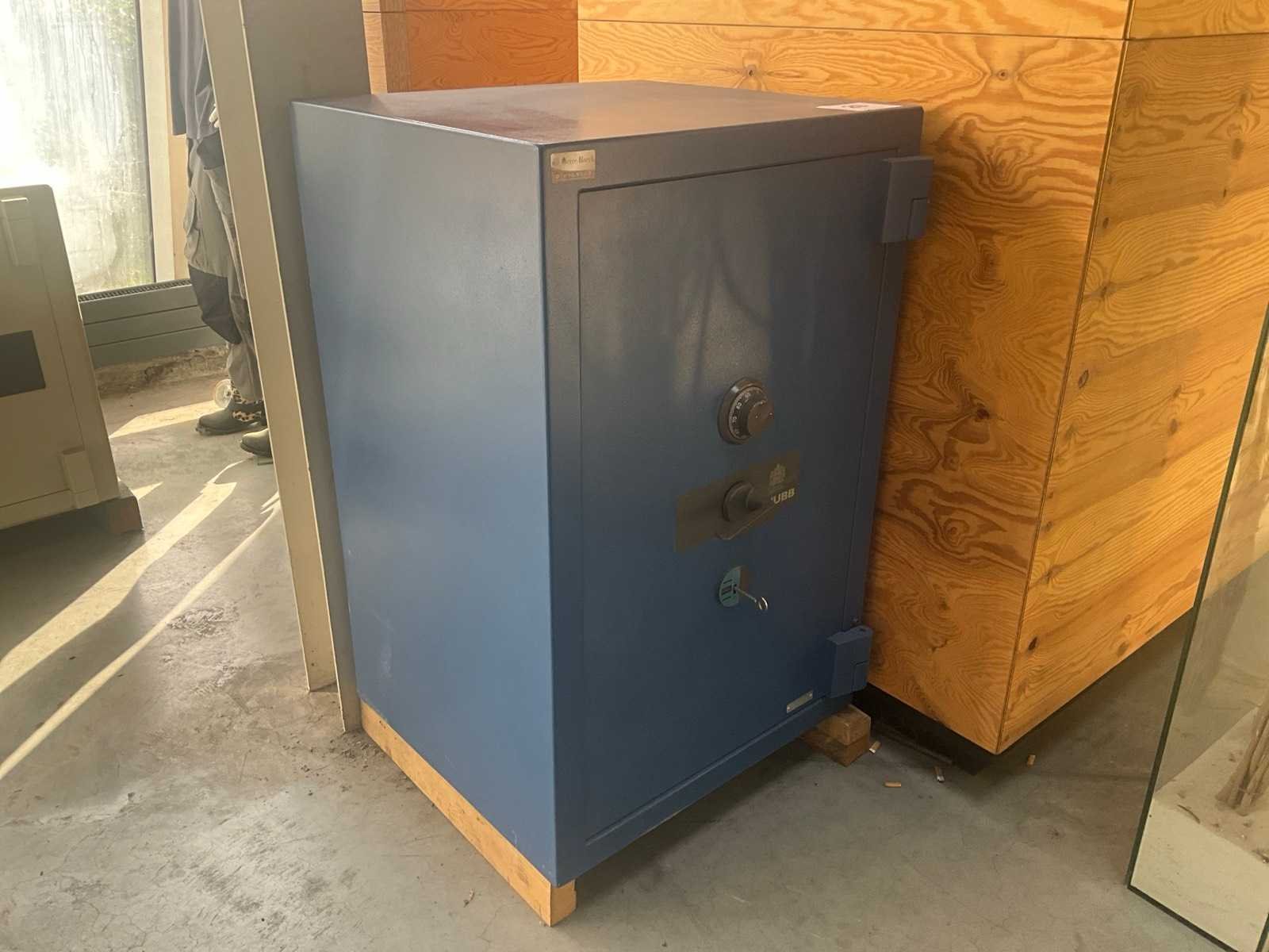 Voorzien van sleutel, cijfercode ongekend. Nee Merk: Chubb & son’s lock & safe co Lengte: 67cm Breedte: 67cm Hoogte: 102cm