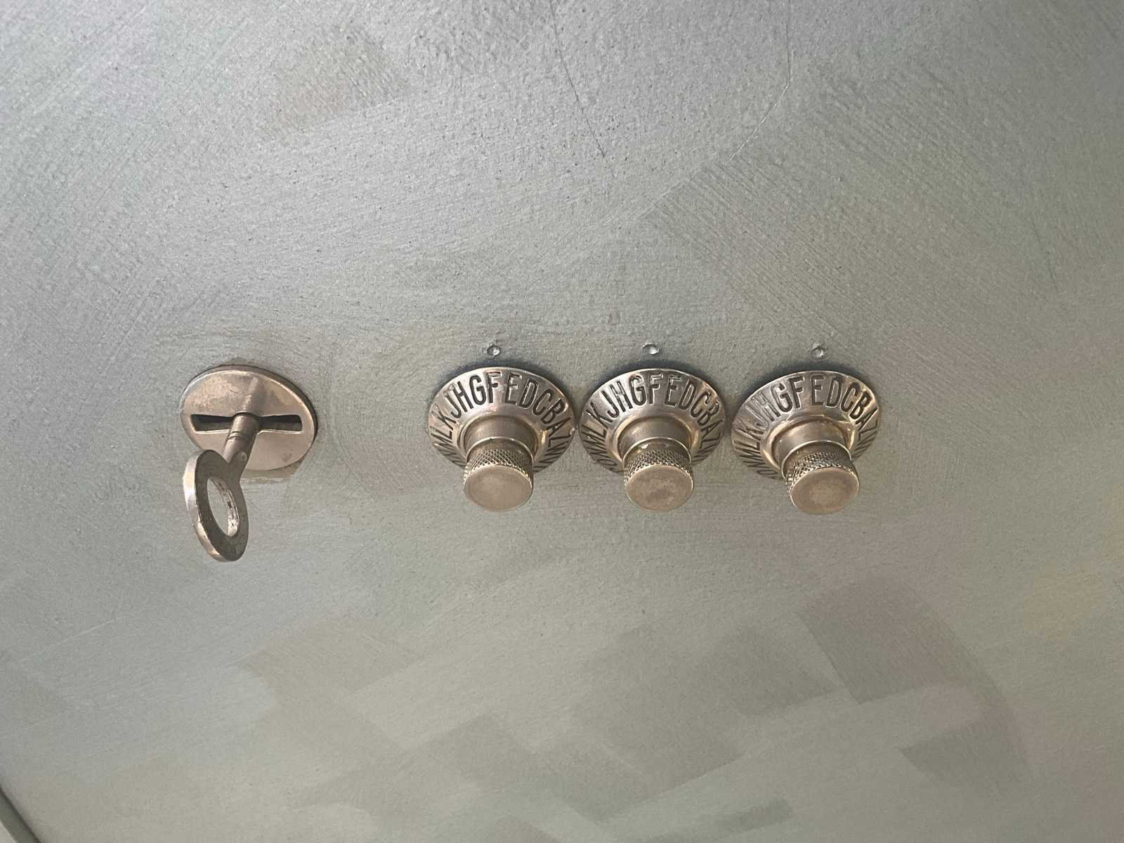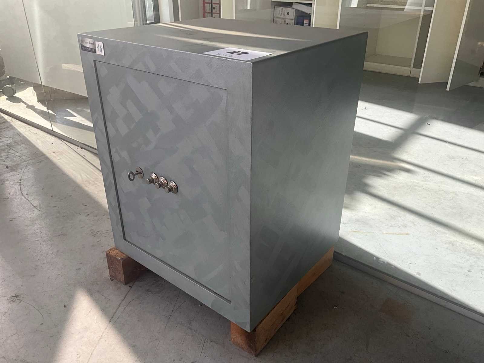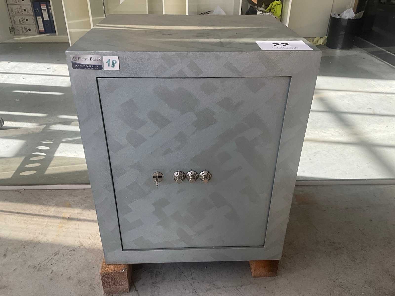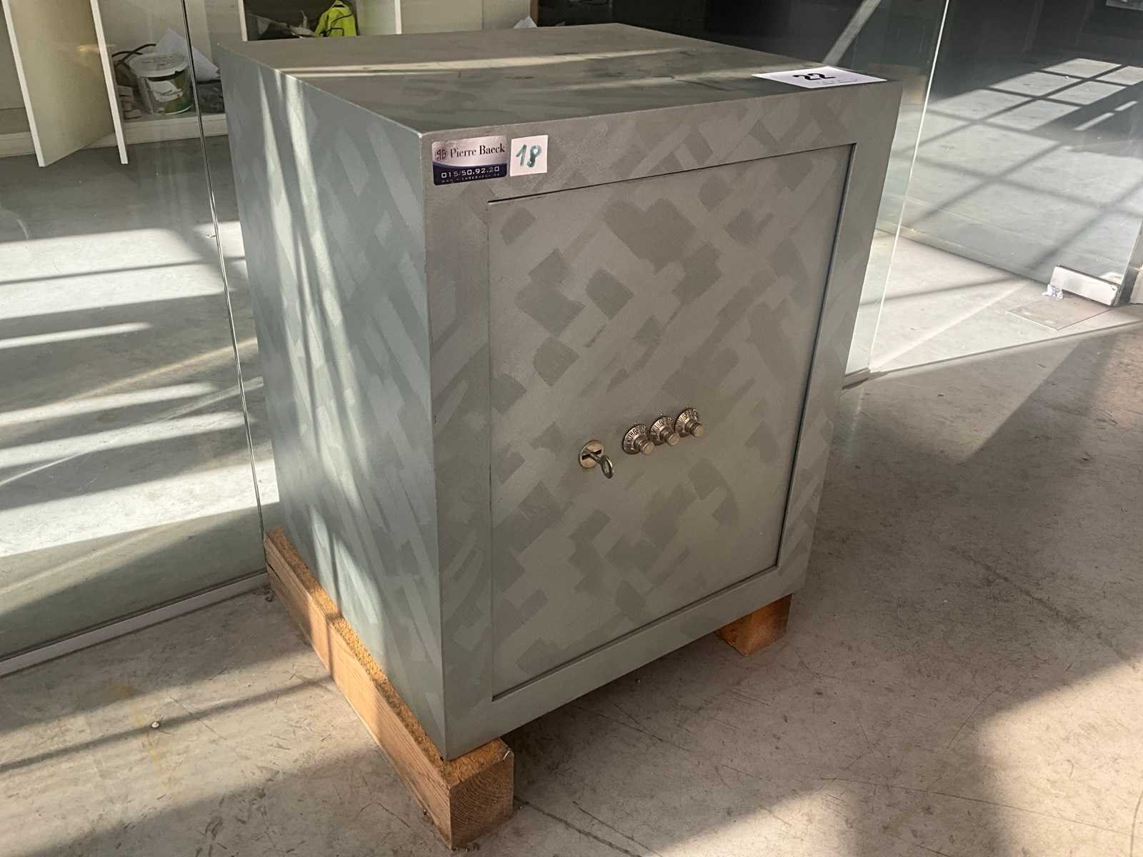 Slotvast. Voorzien van sleutel, code ongekend. Nee Gewicht: 150kg Lengte: 45cm Breedte: 50cm Hoogte: 60cm