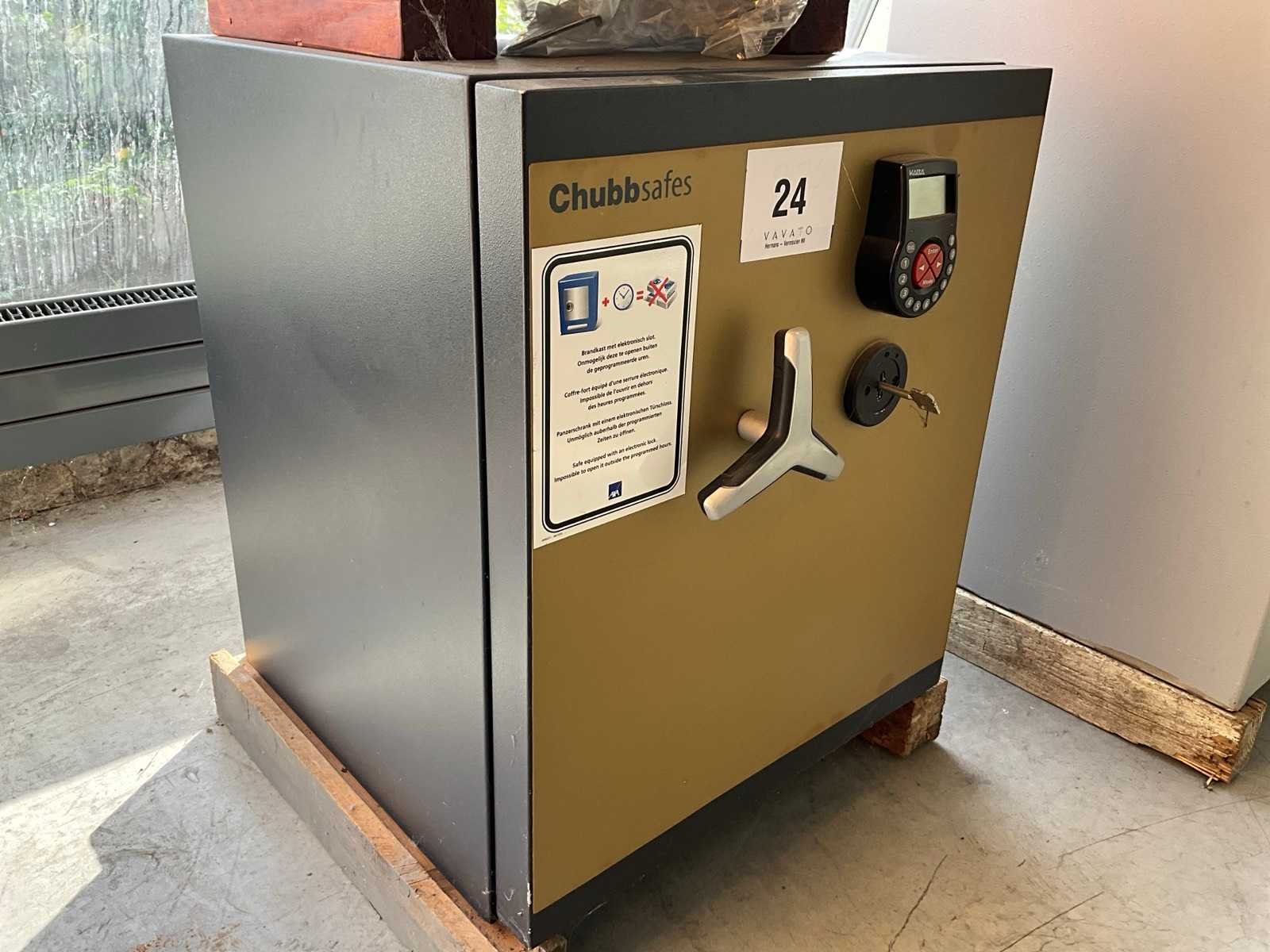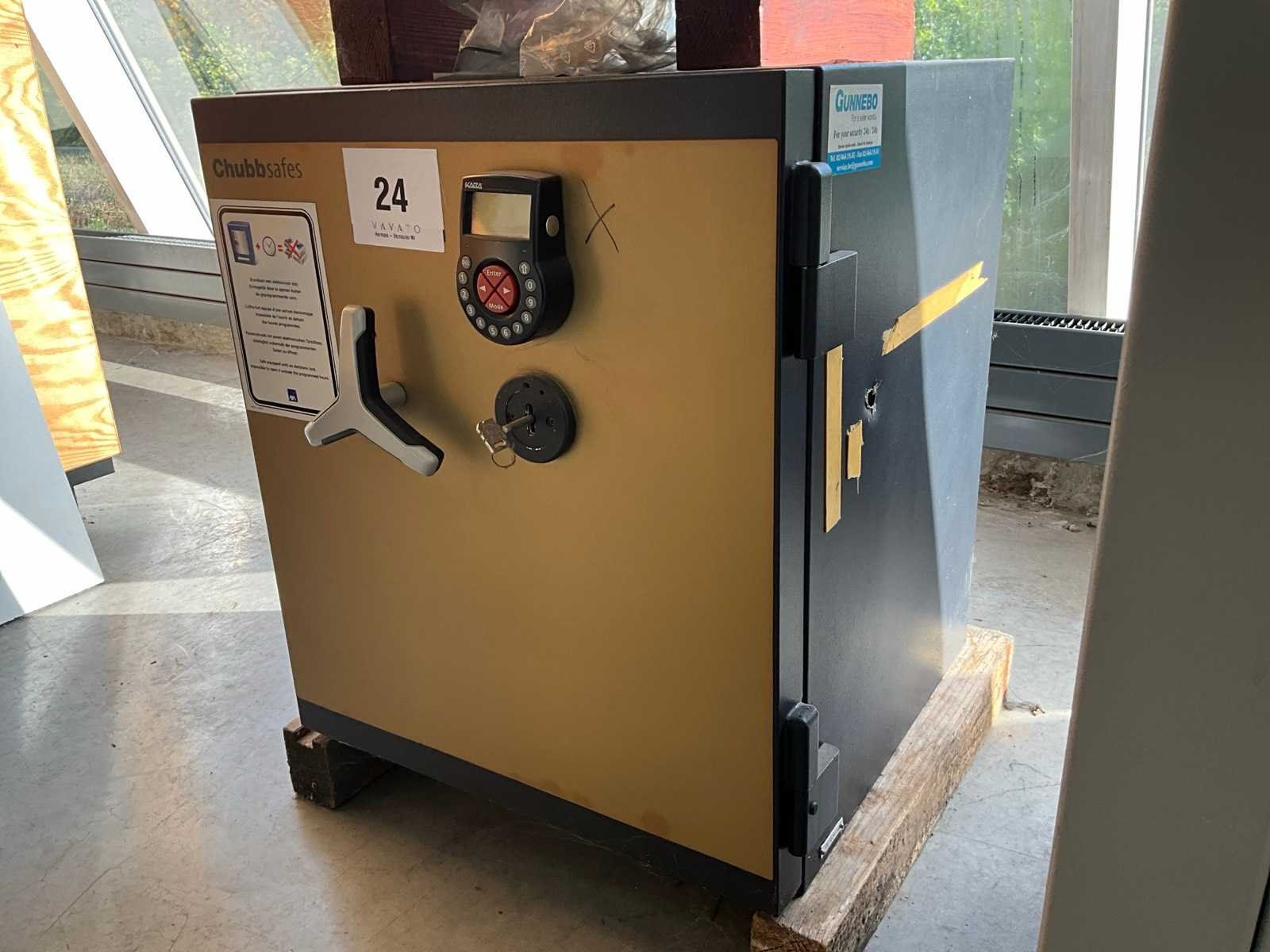 Slotvast. Voorzien van sleutel, code ongekend. Nee Merk: Chubbsafes Lengte: 60cm Breedte: 60cm Hoogte: 68cm