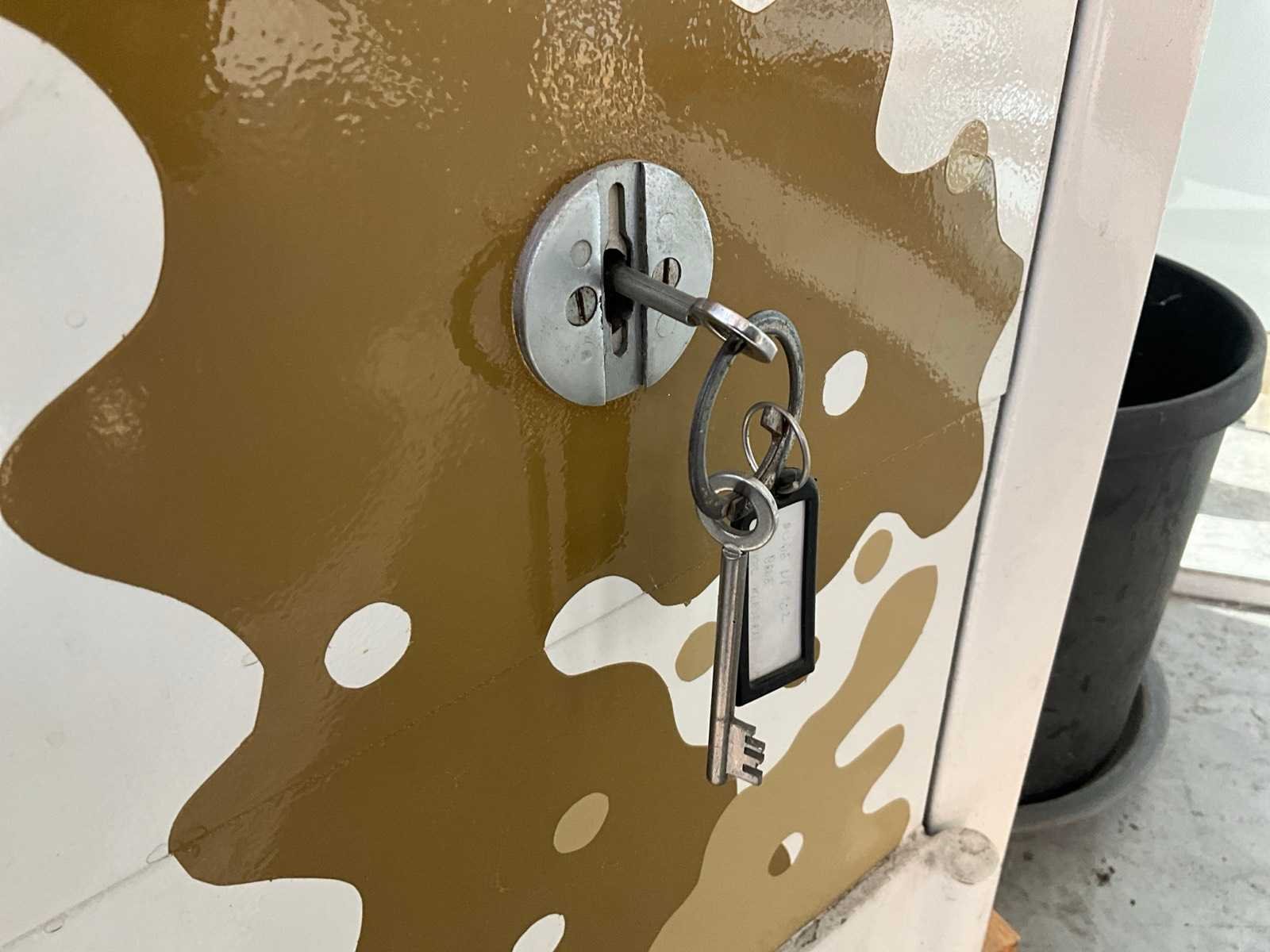 Voorzien van sleutel, code ongekend. Nee Lengte: 64cm Breedte: 60cm Hoogte: 100cm
