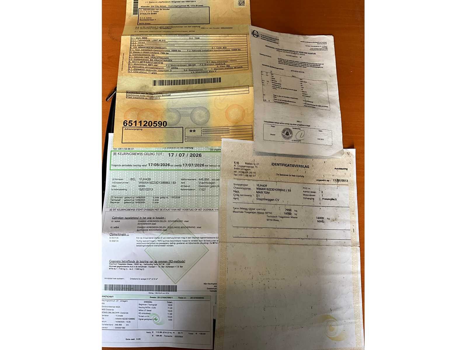 Vrachtwagen plateau 1FJH439, chassis nr WMAN18ZZ3DY298962, eerste maal in gebruik 15-07-2013, belgische boorddocumenten compleet, sleutels ok Nee Merk: MAN Type: L2007.46.010 Bouwjaar: 2013 Chassisnummer VIN: WMAN18ZZ3DY298962 Cilinderinhoud: 6871cc Kilometerstand bij opname: 720360km Datum eerste toelating: 15-07-2013 Type transmissie: Handgeschakeld Aantal assen: 2 Asconfiguratie: 2x4 Fuel Type: Diesel Laadvermogen: 16000kg Aantal sleutels: 2 Eigen gewicht: 7950kg Totale afmeting L: 11000mm Totale afmeting Breedte: 2550mm Totale afmeting Hoogte: 2900mm Handgeschakelde versnellingsbak: true