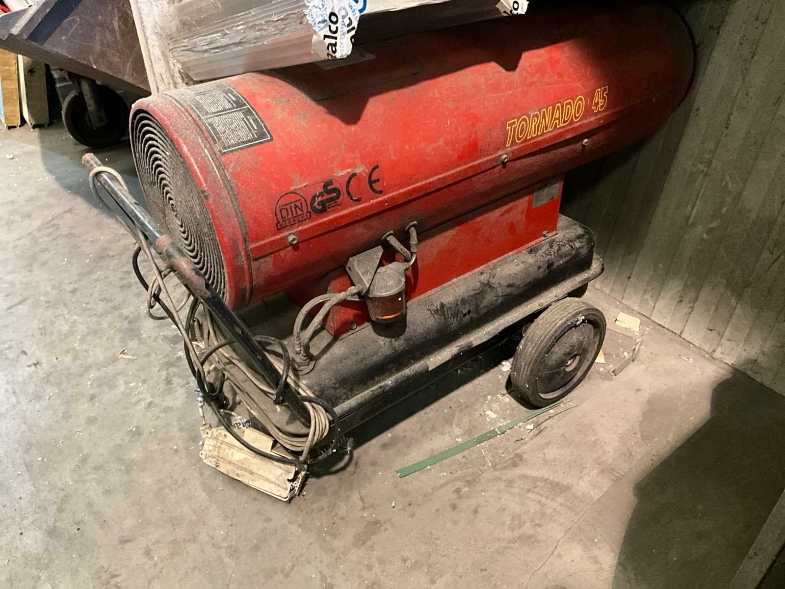 Tornado 45, mobiele opstelling, bouwjaar 1997, + werktafel met kastje en stoel met inhoud diverse handgereedschap + muziek installatie, + afvalcontainer met inhoud + kast met diverse bevestigingsmaterialen Nee Merk: Sial Type: Tornado 45 Bouwjaar: 1997 Vermogen: 45kW Ventilator: true Thermostaat: true Totale afmeting L: 1200mm Totale afmeting Breedte: 500mm Totale afmeting Hoogte: 1000mm Aansluiting: 220V