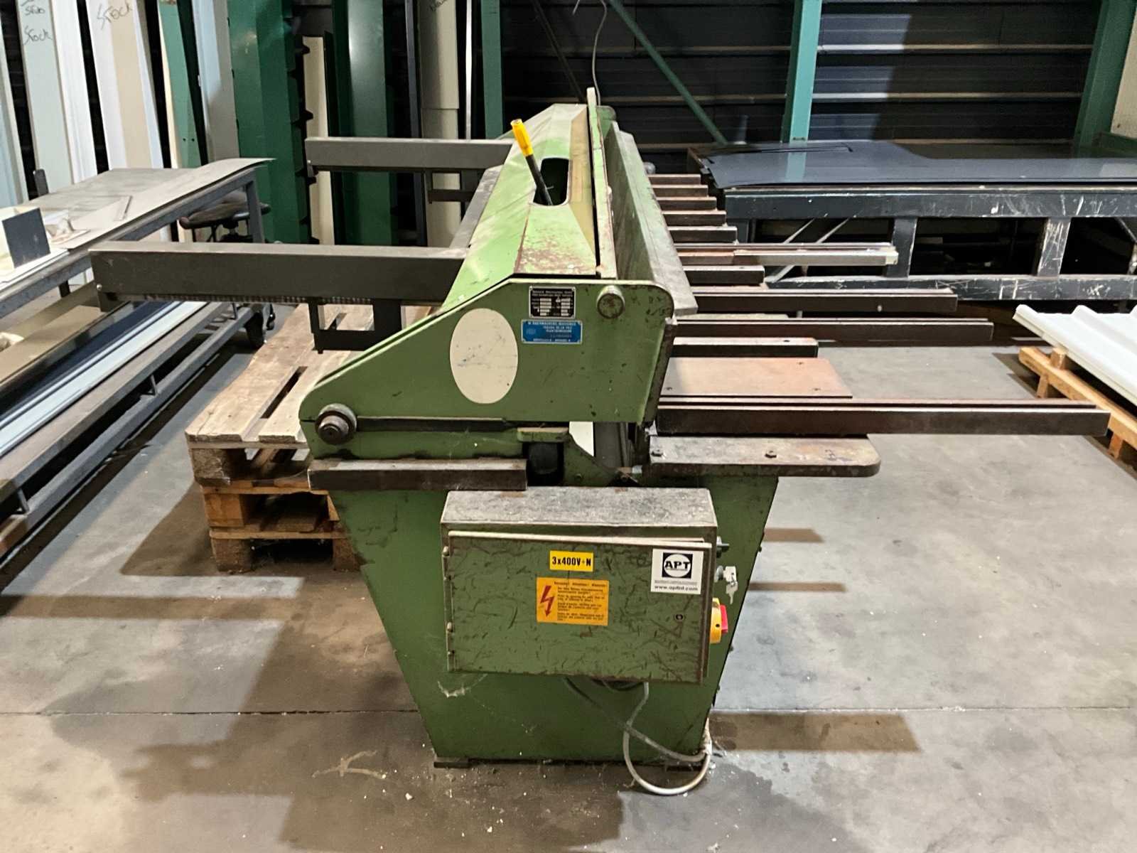 Type 82.25 met série nummer 3474, voetbediening, + bijhorende mobiele voorraad tafel + opliggend plaatmateriaal afmetingen 1250x2150 mm Nee Merk: Reinhardt Type: 82.25 Serienummer: 3474 Snijlengte: 2540mm Max. plaatdikte: 2mm Achteraanslag handbediend: true Motorvermogen (kW): 3kW Aansluiting: 400V Machinegewicht: 1600kg Afmeting l: 2000mm Afmeting b: 3000mm Afmeting h: 1200mm