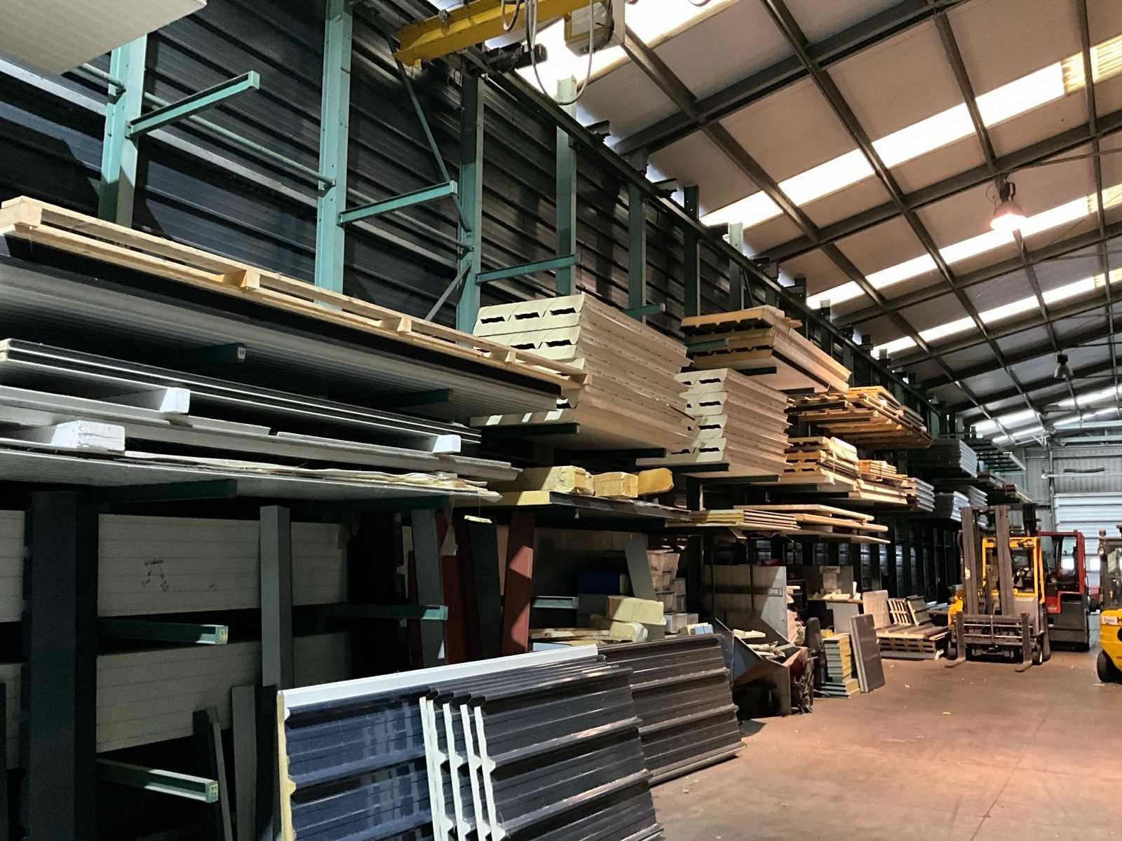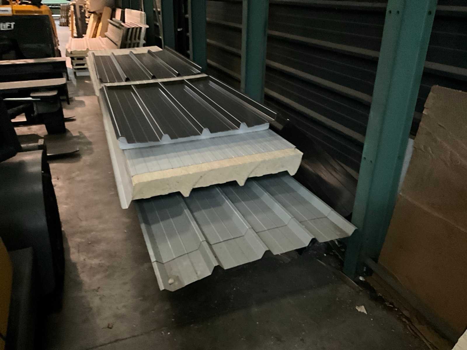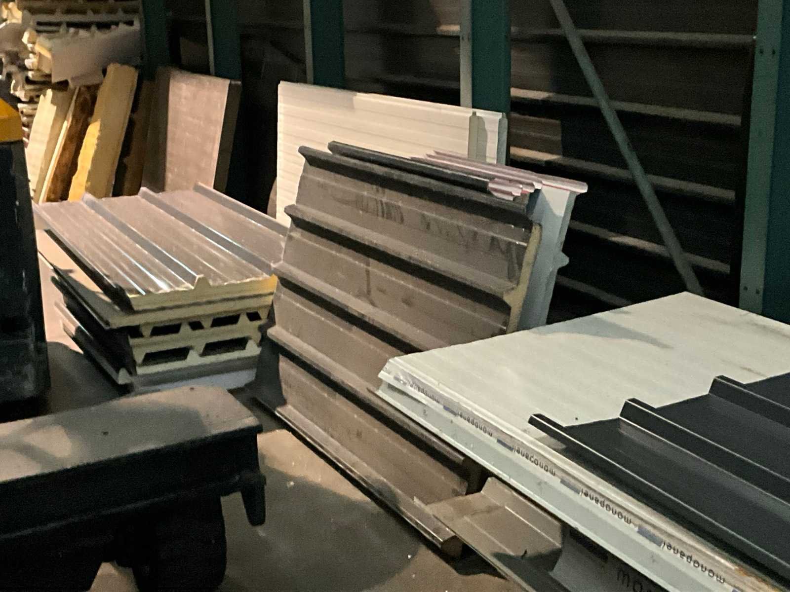 Bestaand uit grote partij diverse geïsoleerde en niet geïsoleerde dakpanelen, lichtdoorlatende panelen, geïsoleerde wanden, enz…, alles gesitueerd in draagarmstelling (niet inbegrepen) rechts in gebouw en op de grond Nee
