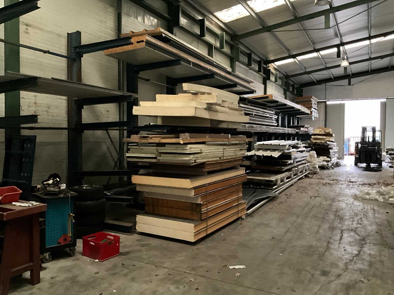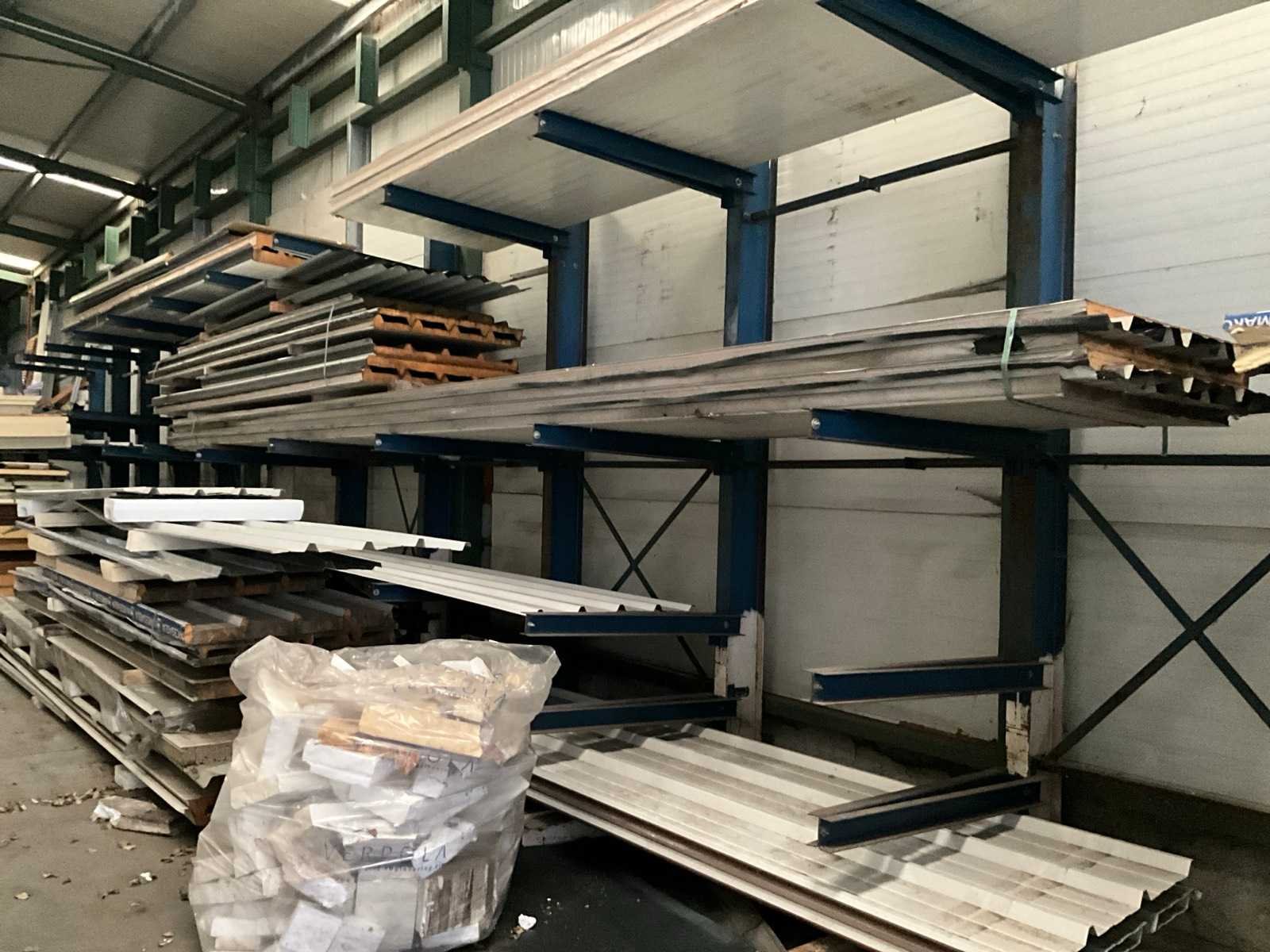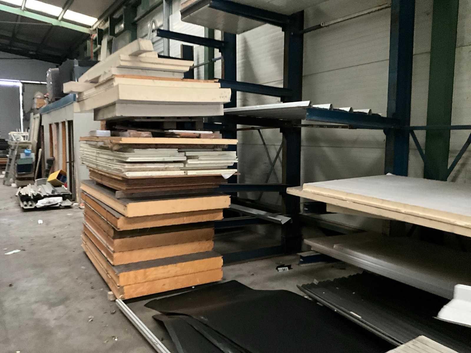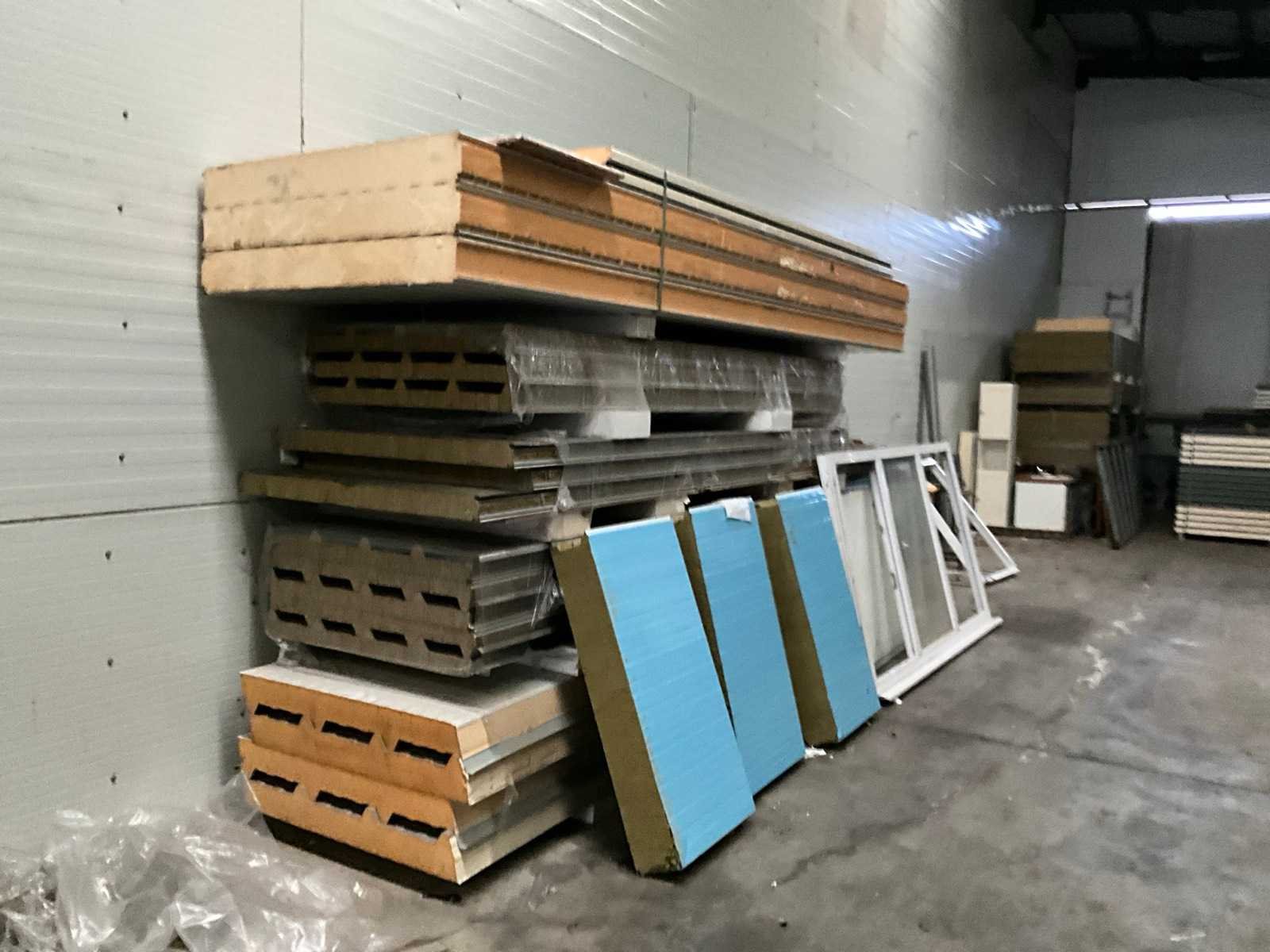 Bestaand uit grote partij diverse geïsoleerde en niet geïsoleerde dakpanelen, geïsoleerde wanden, materiaalwagen met inhoud, werkbank, banden op velg, gelakt plaatmateriaal enz…, alles gesitueerd in draagarmstelling (draagarmstelling niet inbegrepen!!) en op de grond, gesitueerd in gebouw achteraan rechts nr 3 Nee