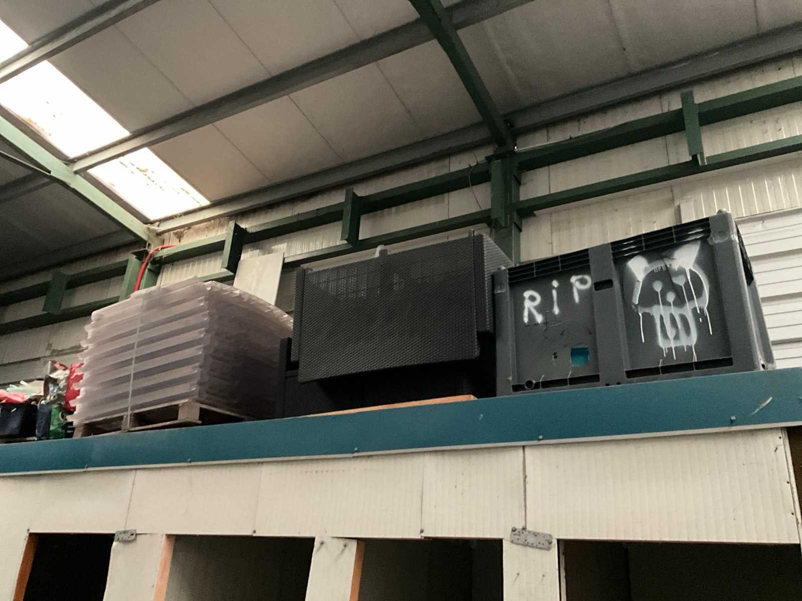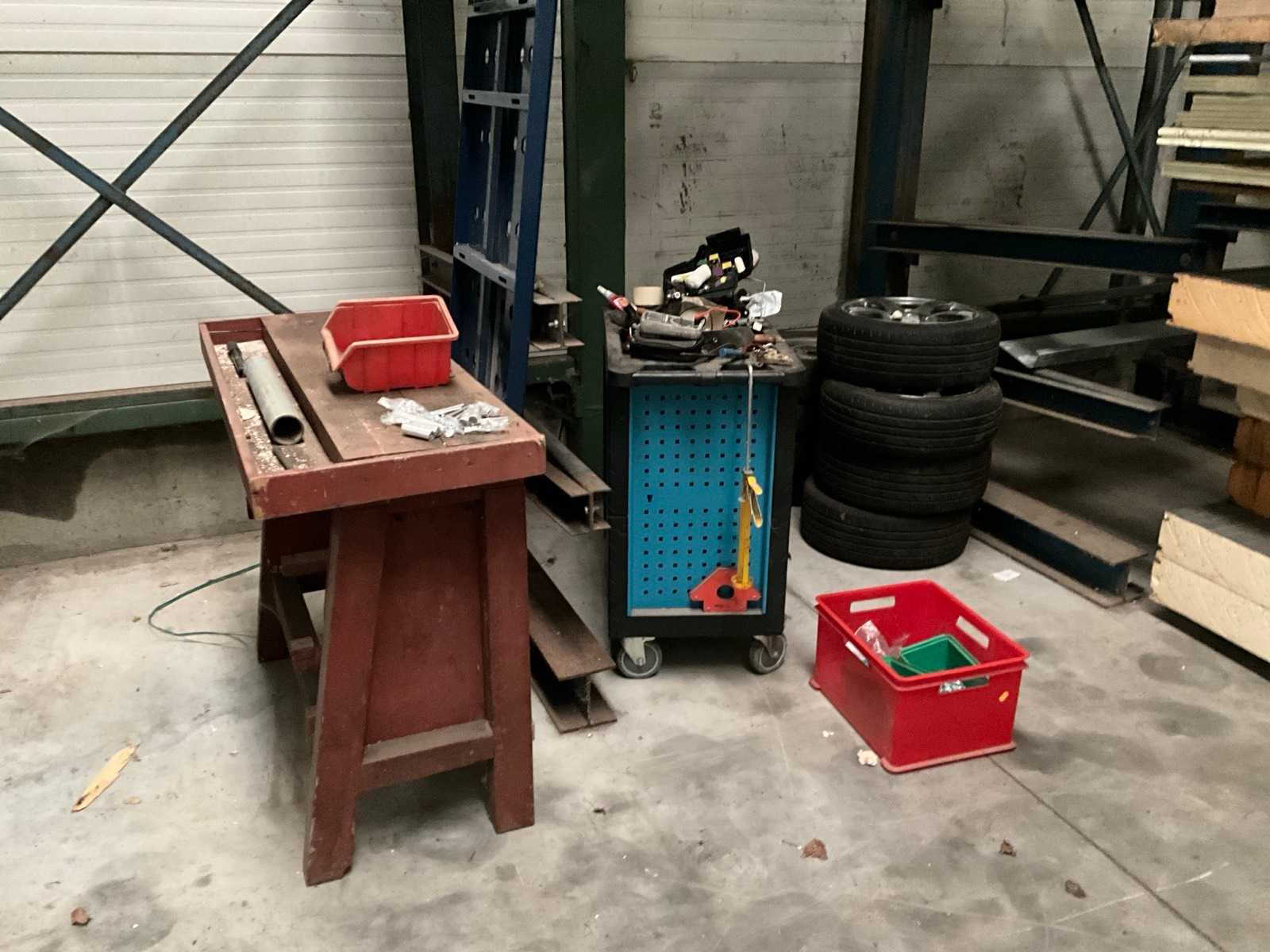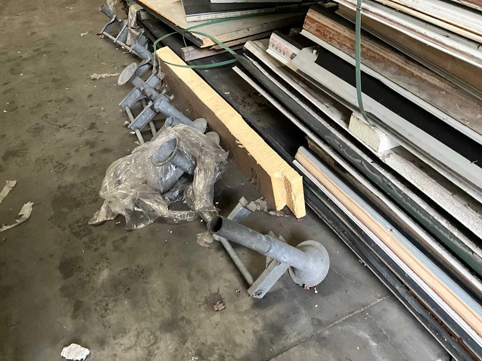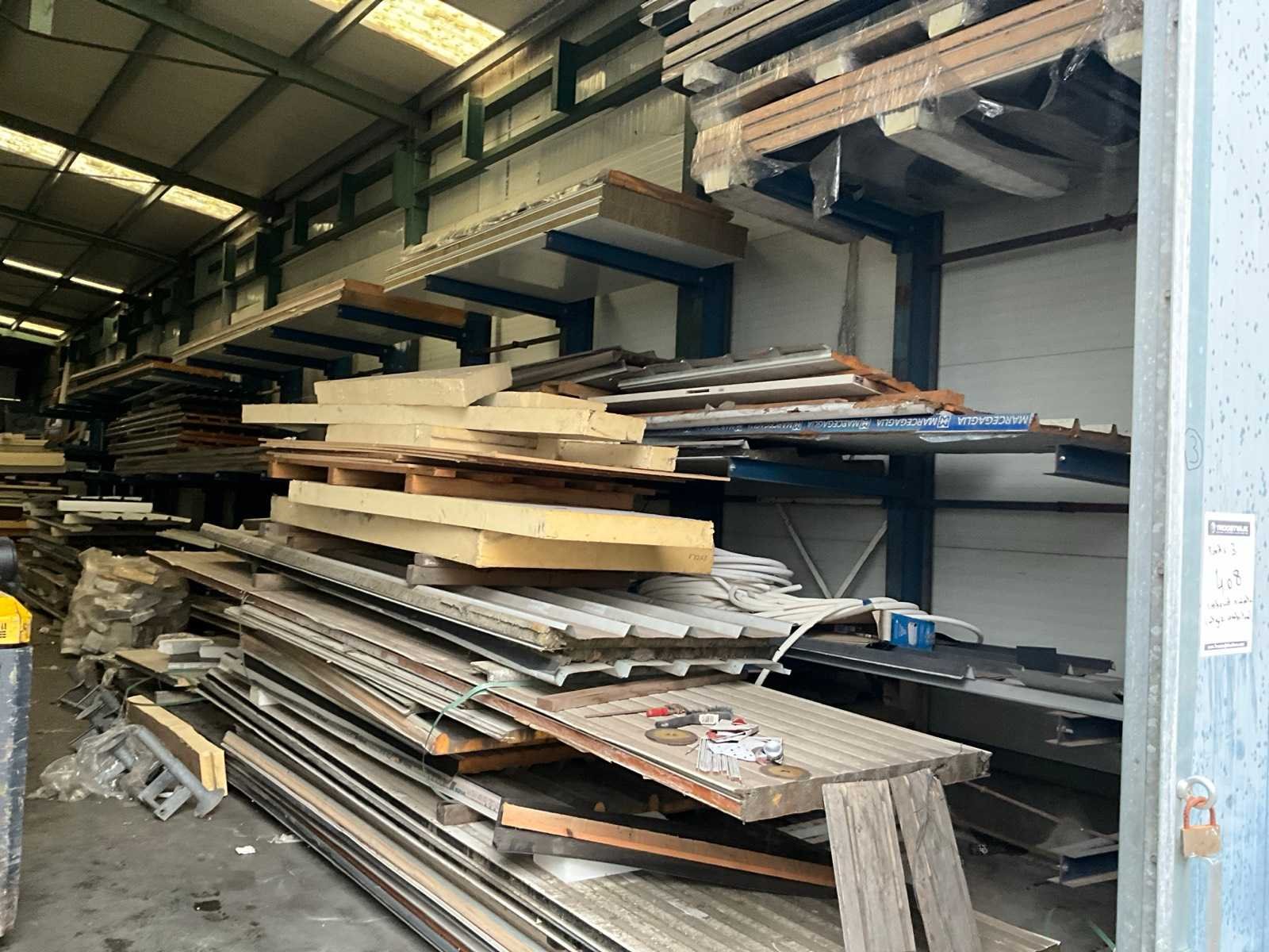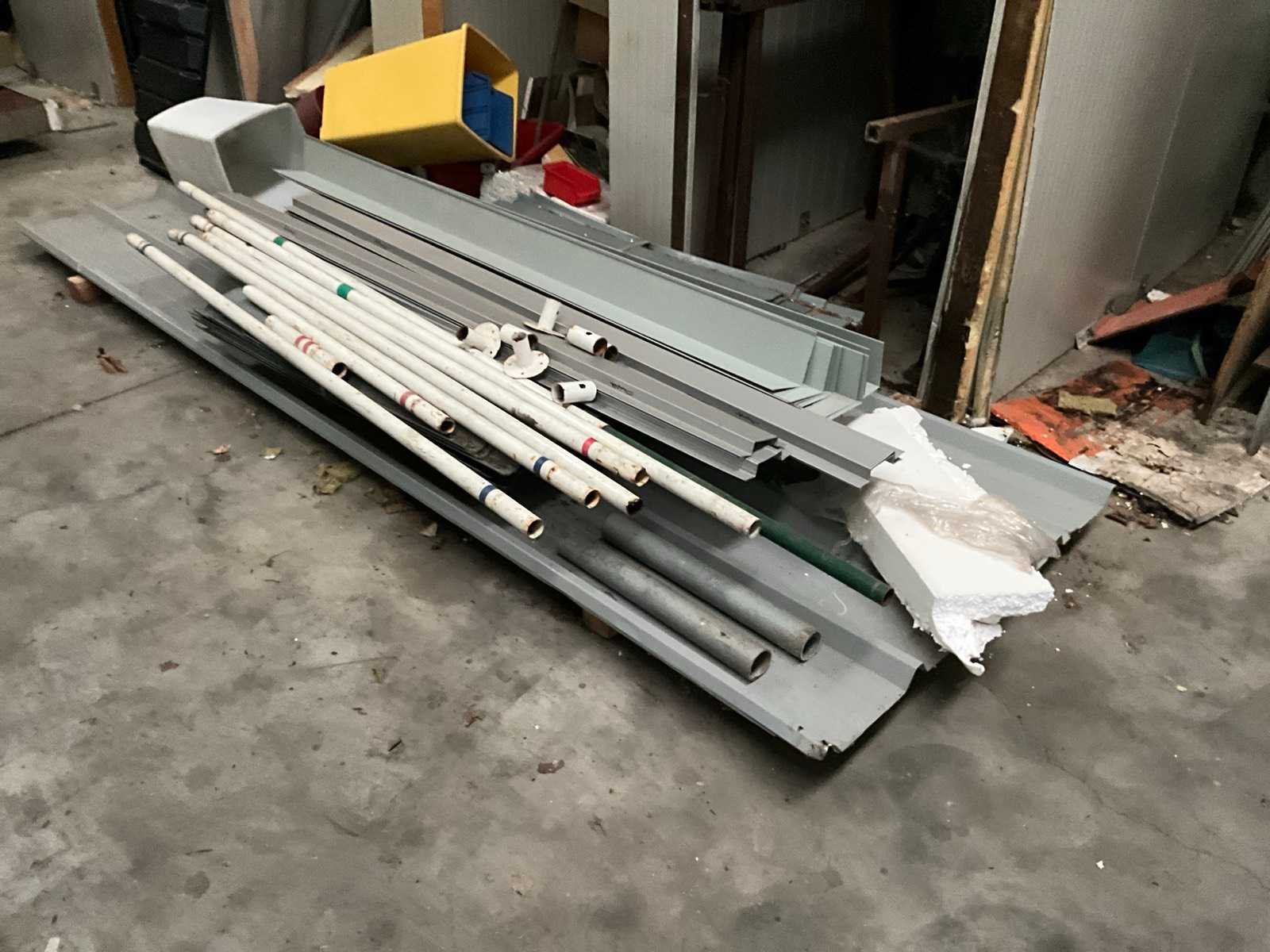 Bestaand uit grote partij diverse geïsoleerde en niet geïsoleerde dakpanelen, geïsoleerde wanden, materiaalwagen met inhoud, werkbank, banden op velg, gelakt plaatmateriaal enz…, alles gesitueerd in draagarmstelling (draagarmstelling niet inbegrepen!!) en op de grond, gesitueerd in gebouw achteraan rechts nr 3 Nee