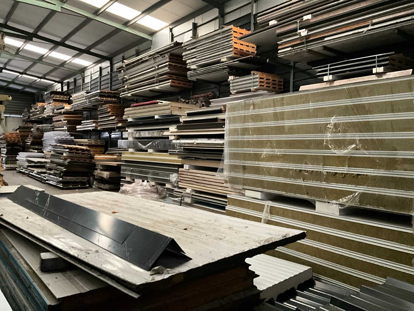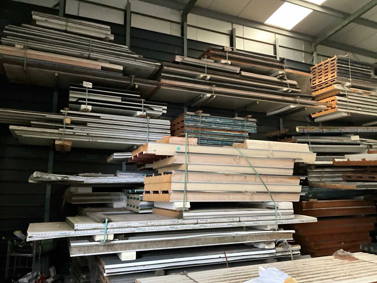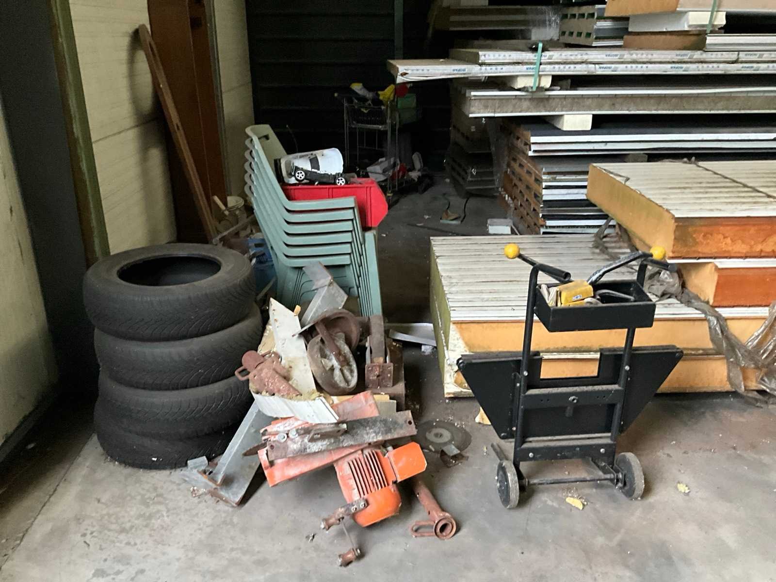 Bestaand uit grote partij diverse geïsoleerde en niet geïsoleerde dakpanelen, geïsoleerde wanden, strapbinder in lintzagen, banden, tuinstoelen enz…, alles ligt in vaste draagarmstelling en op de grond, (draagarmstelling NIET INBEGREPEN) gesitueerd in gebouw achteraan nr 4 linkerkant Nee
