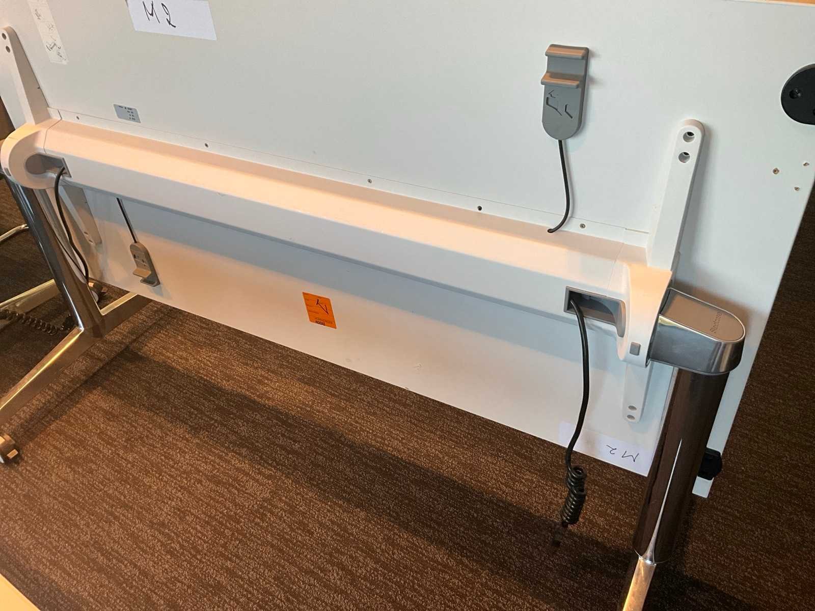 Voorzien van stekkerblok. Koppelbaar. Nee Merk: Steelcase Lengte: 80cm Breedte: 160cm Materiaal: Chrome onderstel