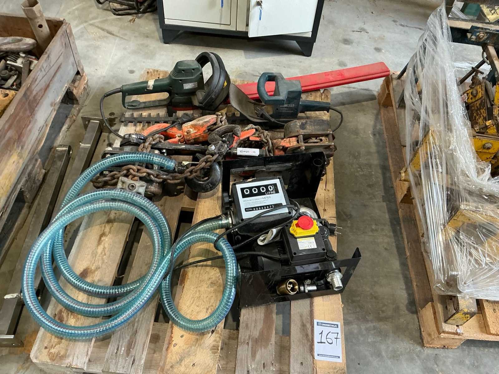 Partij divers hijsmateriaal en gereedschappen