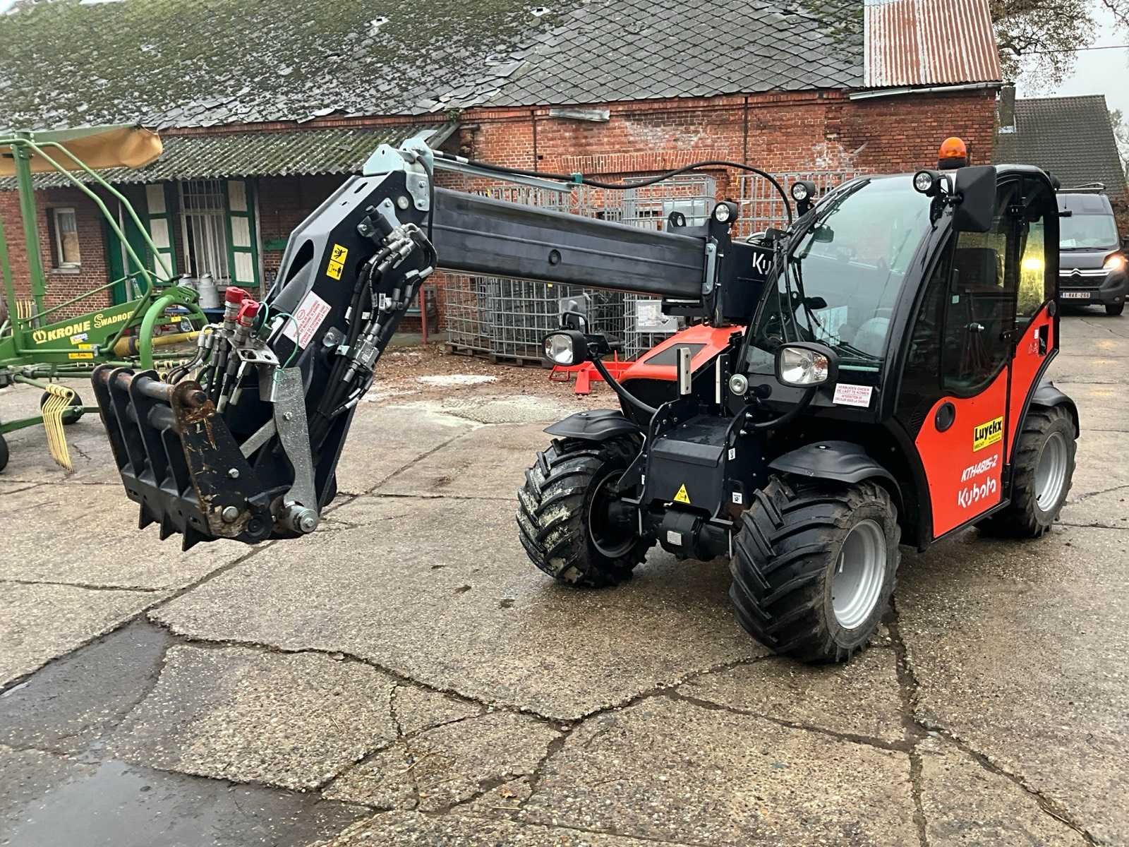 • motor: Kubota • aantal cilinders: 3 • snelwisselsysteem • extra hydraulische koppeling • gebruikssporen Nee Merk: Kubota Type: KTH4815-2 Bouwjaar: 2024 Serienummer: XP5xxx44662 Motorvermogen (kW): 37kW Cabine: true Vierwielaandrijving 4x4: true Luchtbanden: true Afgelezen urenstand: 206 Totale afmeting Breedte: 1650mm Totale afmeting Hoogte: 1900mm