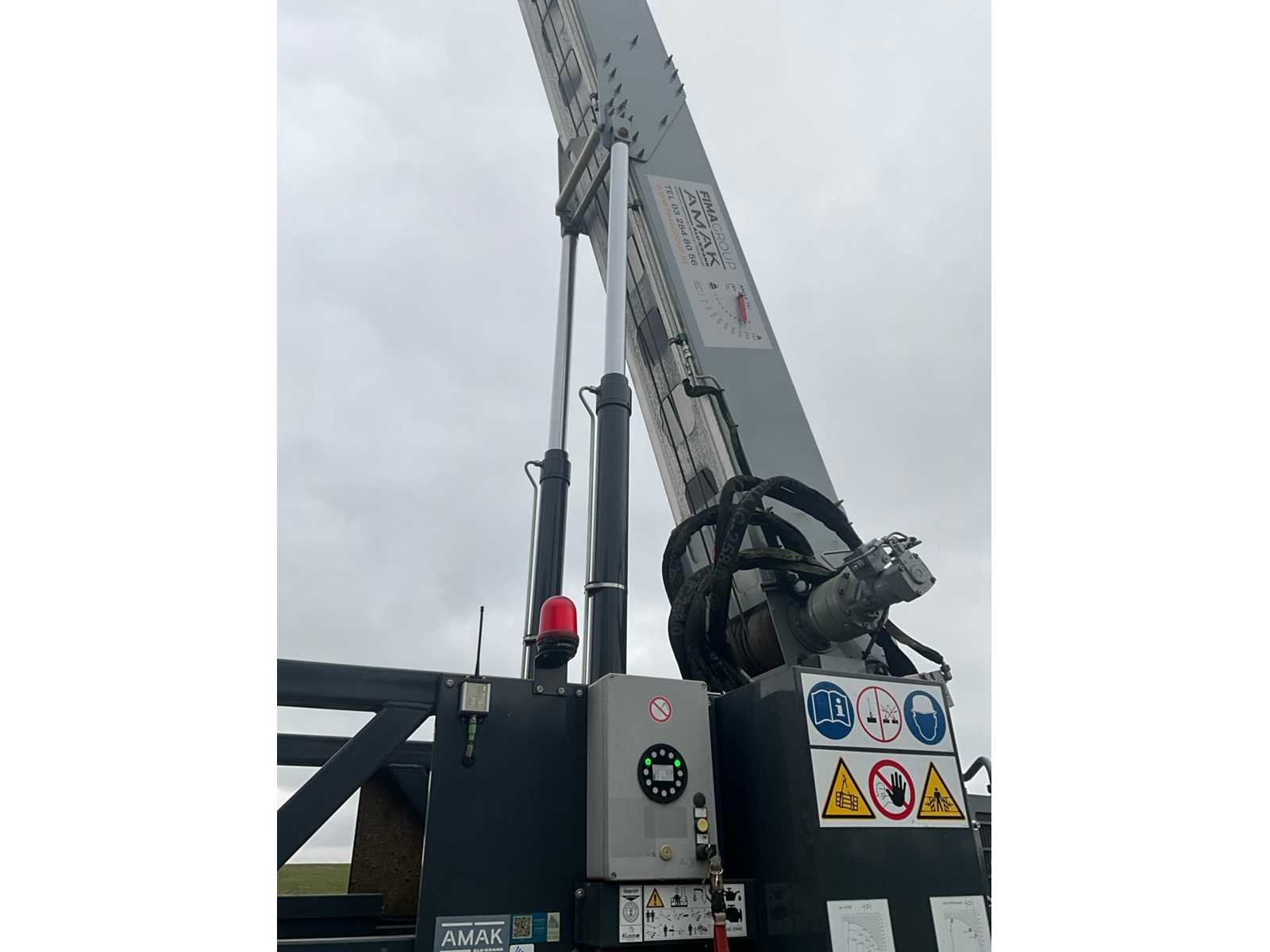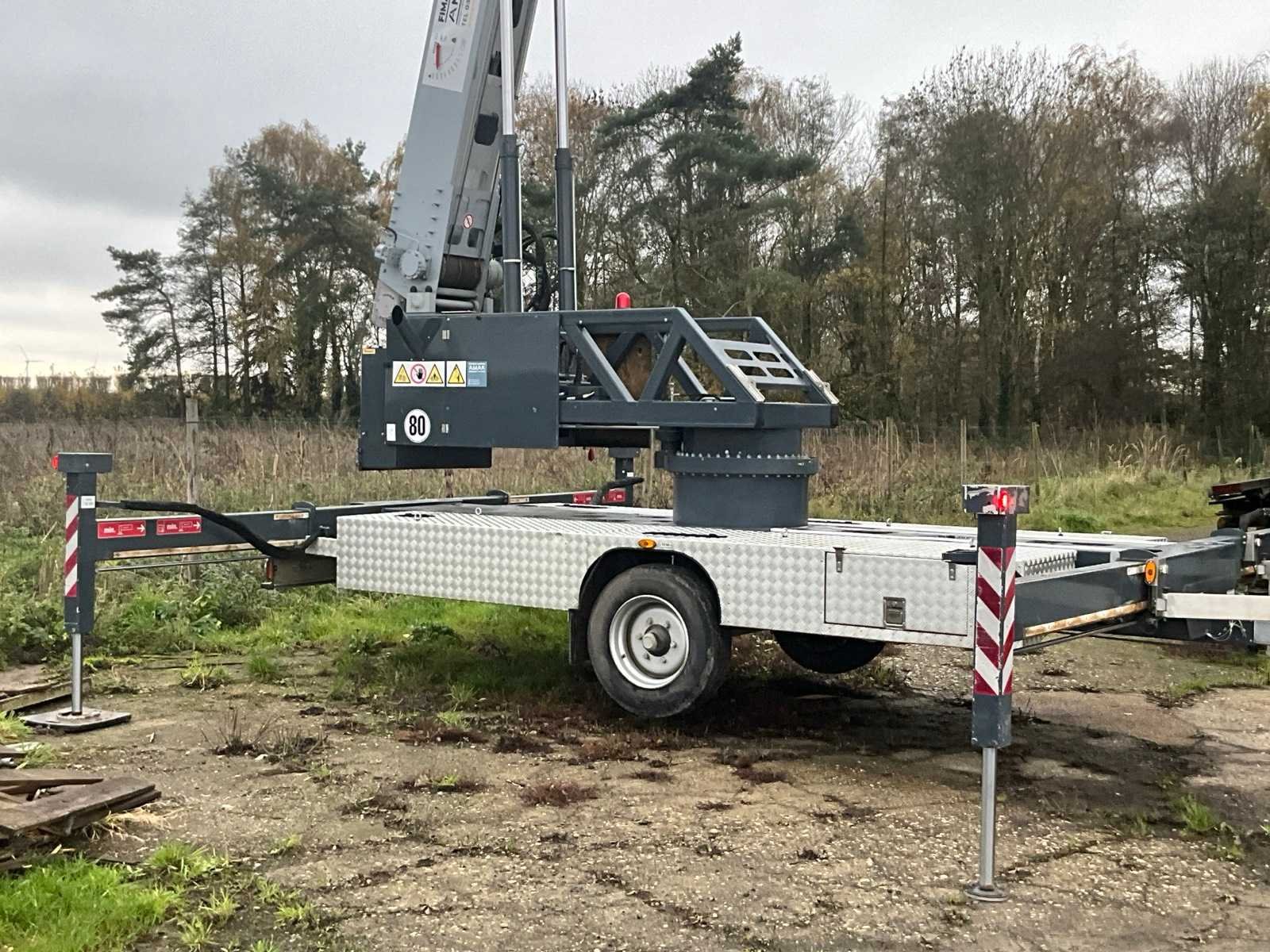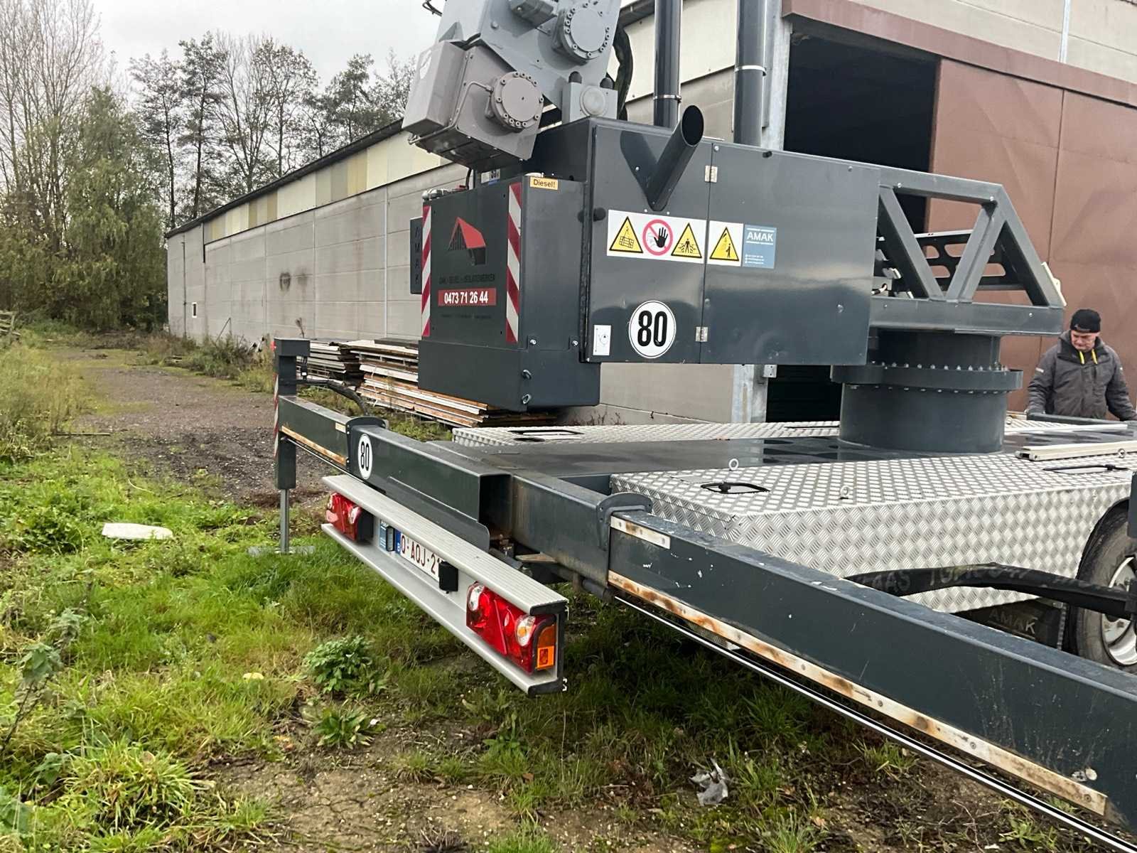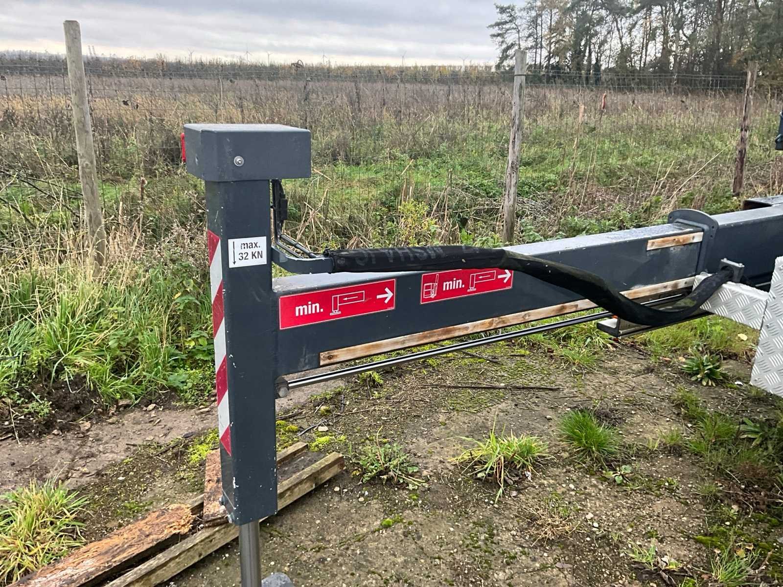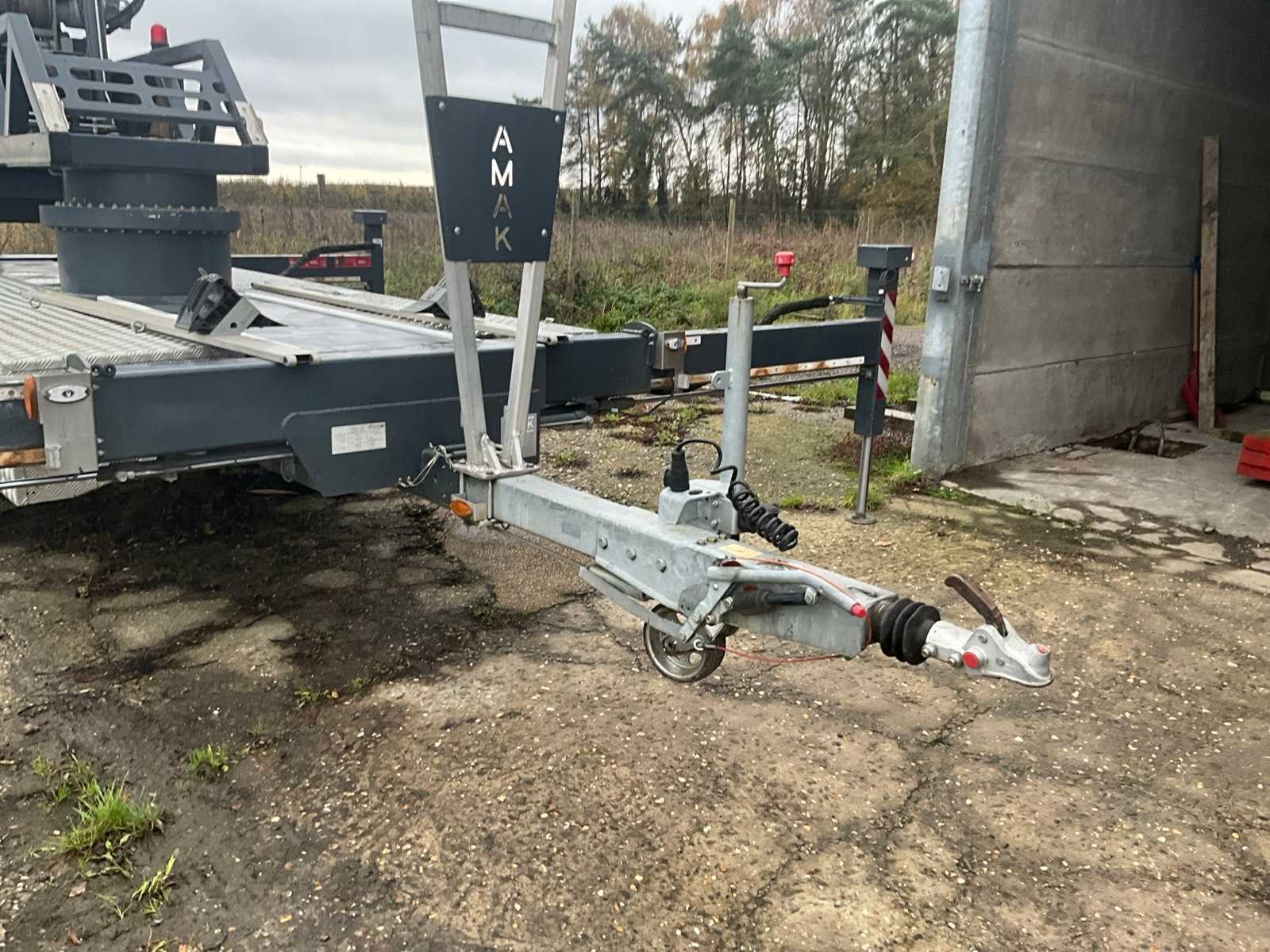 Compacte alu aanhangerkraan voorzien van volhydraulische knikarm en asc-besturing met afstandsbediening. Reikwijdte tot 20,5 m, met max. 250 kg. Kraan gemeten zonder dissel, voorzien van inschuifbare dissel AL-KO 2,8 VB/1 van totaal 4 lpm lengte, steunonderstel kraan voorzien van 4 hydraulische poten nog uitschuifbaar tot 150 cm langs beide zijden. Kentekenbewijs deel I en II aanwezig en gelijkvormigheidsattest. No Merk: Klaas Type: AMAK 35-1 Bouwjaar: 2015 Serienummer: W09K35135F1KB6013 chassis Kenteken: Q-AQJ-213 Aantal assen: 1 Max. hijshoogte: 31m Gieklengte: 20.5m Afgelezen urenstand: 1340hr Totale afmeting L: 5200mm Totale afmeting Breedte: 2200mm Max. hijscapaciteit: 1500kg