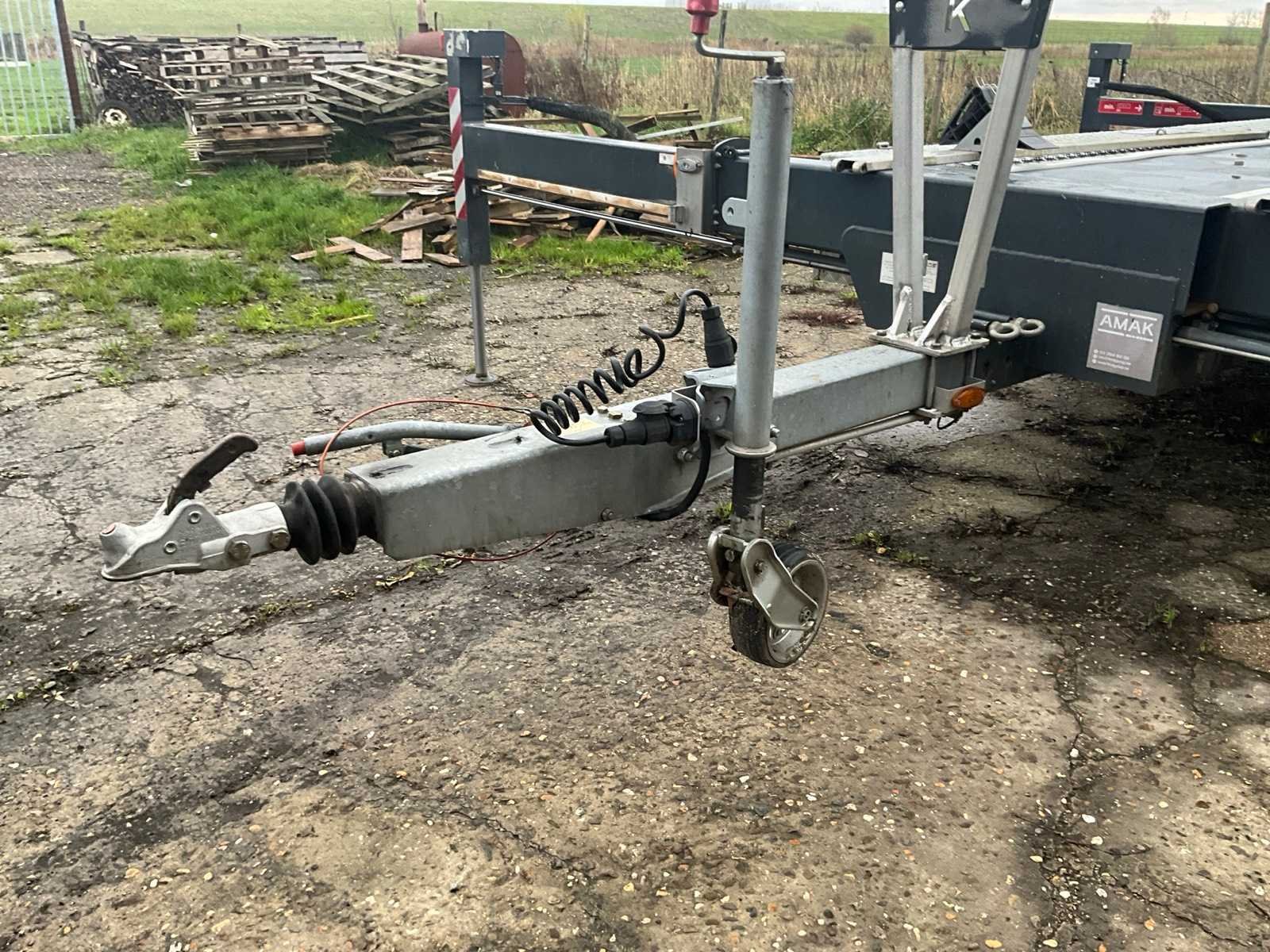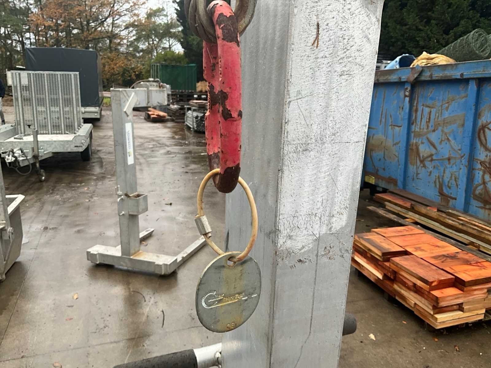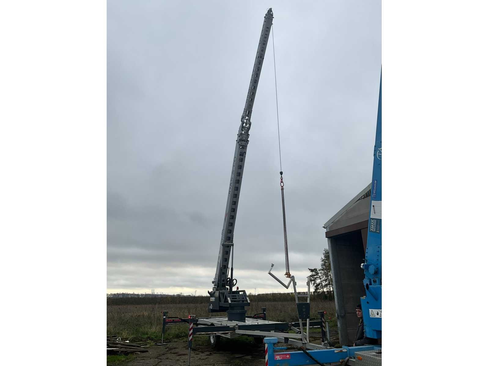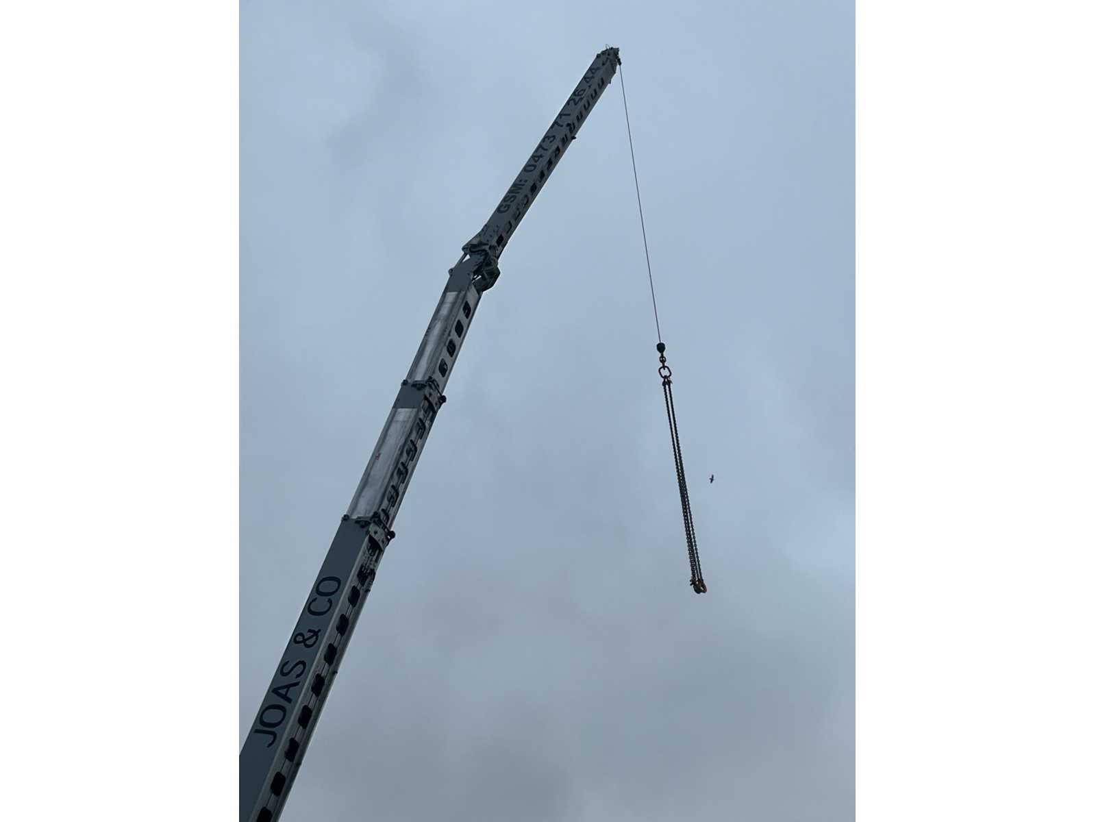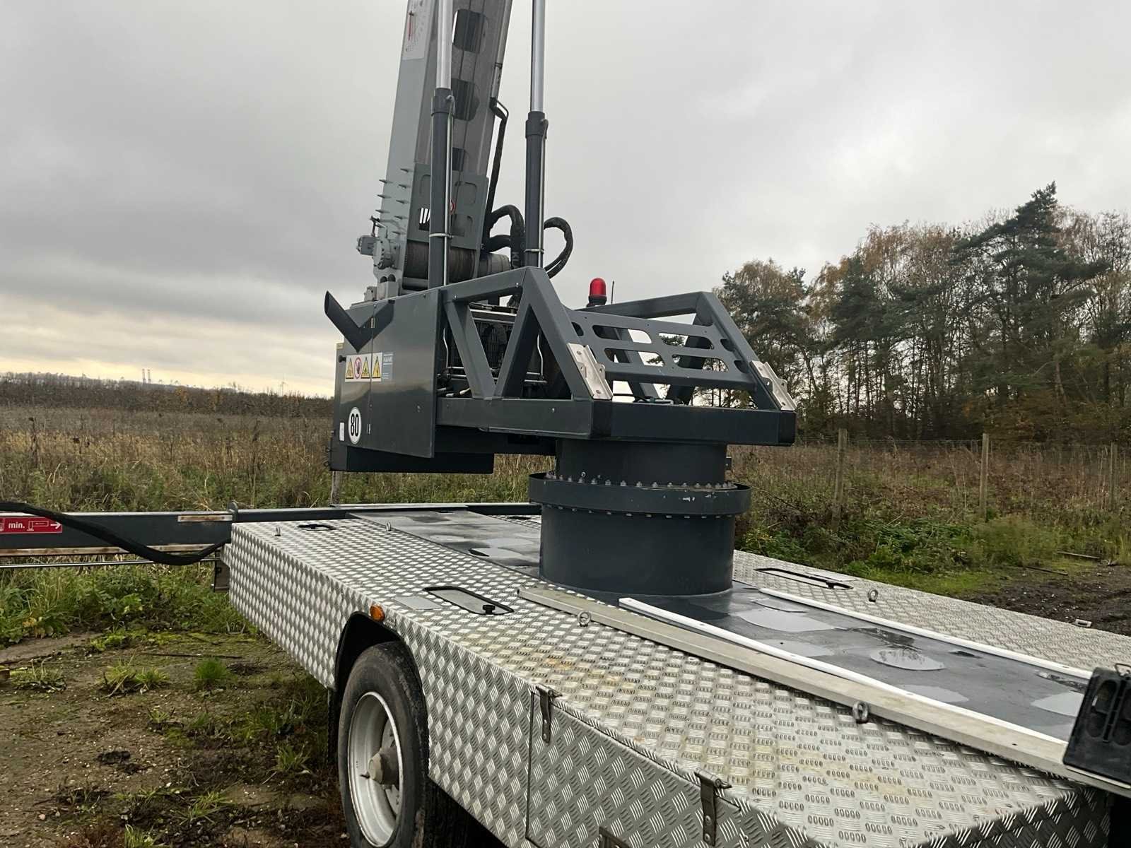 Compacte alu aanhangerkraan voorzien van volhydraulische knikarm en asc-besturing met afstandsbediening. Reikwijdte tot 20,5 m, met max. 250 kg. Kraan gemeten zonder dissel, voorzien van inschuifbare dissel AL-KO 2,8 VB/1 van totaal 4 lpm lengte, steunonderstel kraan voorzien van 4 hydraulische poten nog uitschuifbaar tot 150 cm langs beide zijden. Kentekenbewijs deel I en II aanwezig en gelijkvormigheidsattest. No Merk: Klaas Type: AMAK 35-1 Bouwjaar: 2015 Serienummer: W09K35135F1KB6013 chassis Kenteken: Q-AQJ-213 Aantal assen: 1 Max. hijshoogte: 31m Gieklengte: 20.5m Afgelezen urenstand: 1340hr Totale afmeting L: 5200mm Totale afmeting Breedte: 2200mm Max. hijscapaciteit: 1500kg