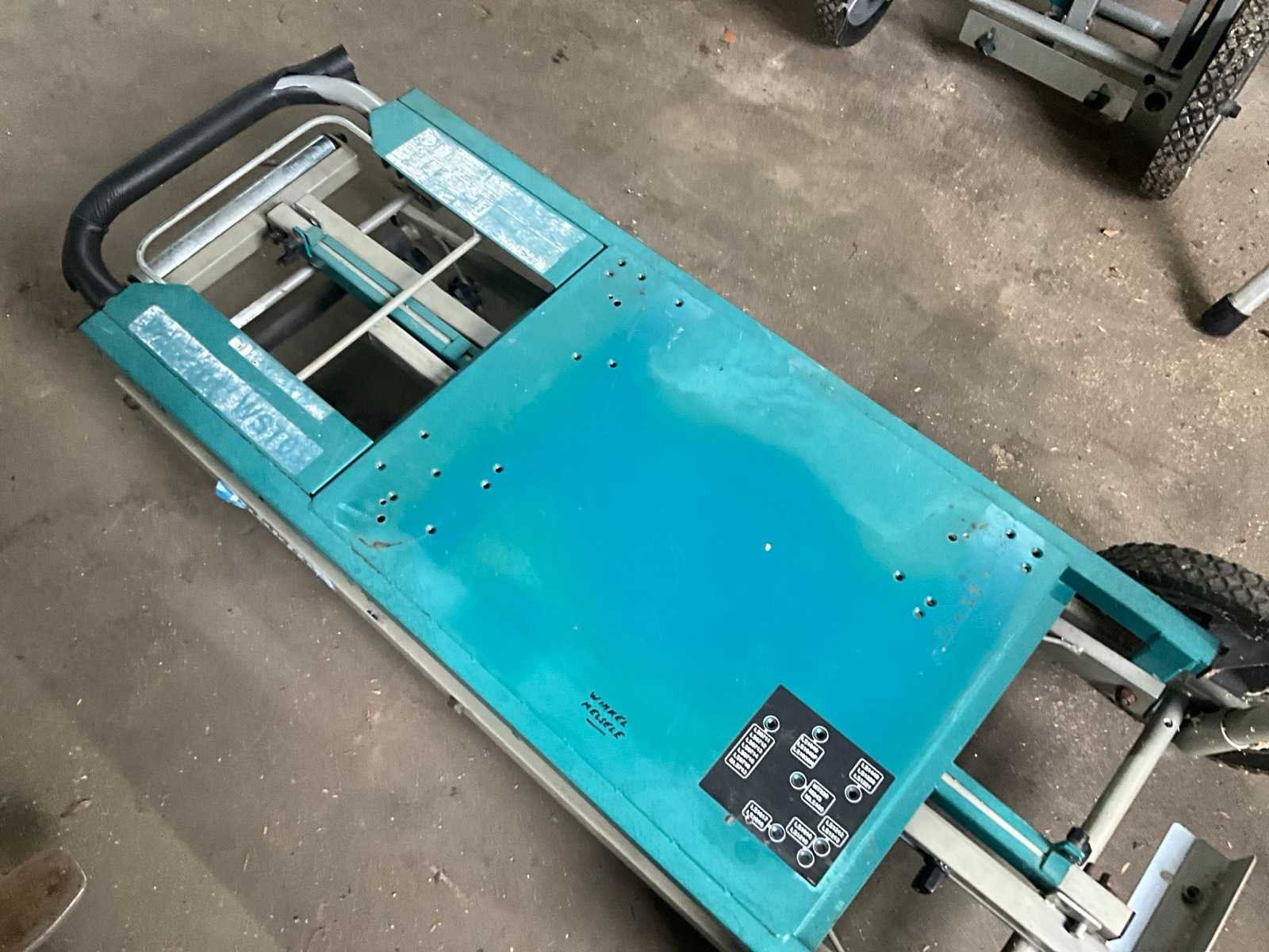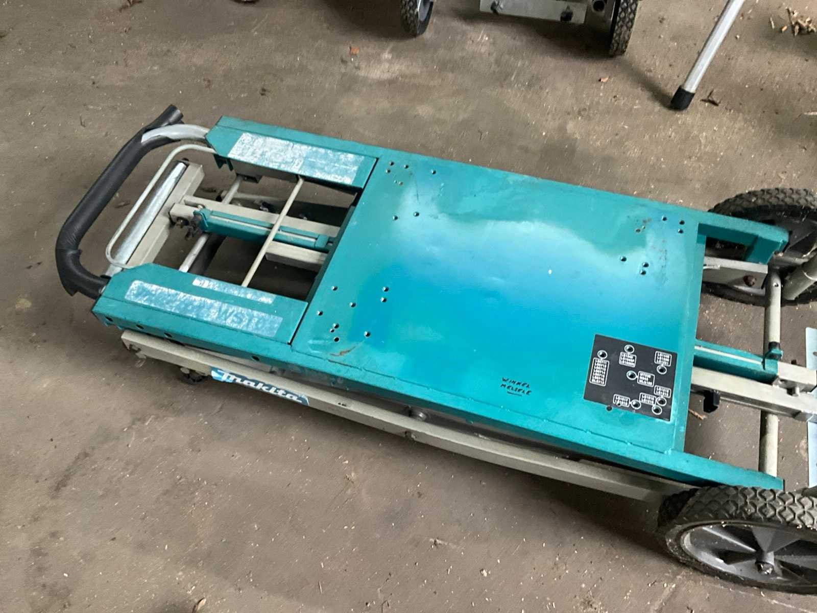Inklapbaar, voorzien van 2 wielen, geschikt voor zwaardere afkortzagen, verstelbaar statief op wielen. Nee Merk: Makita Type: WST01N