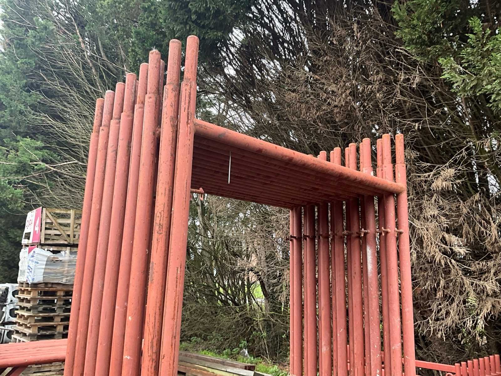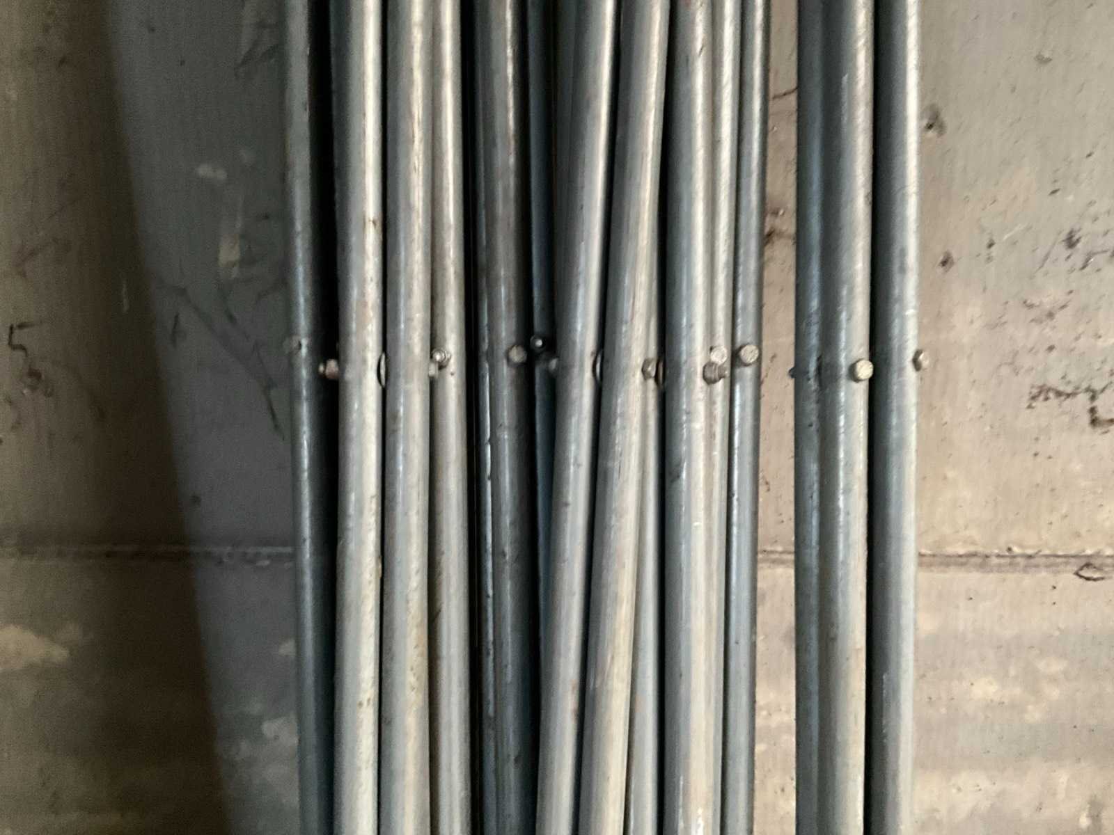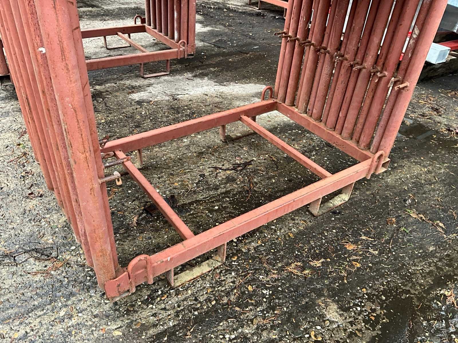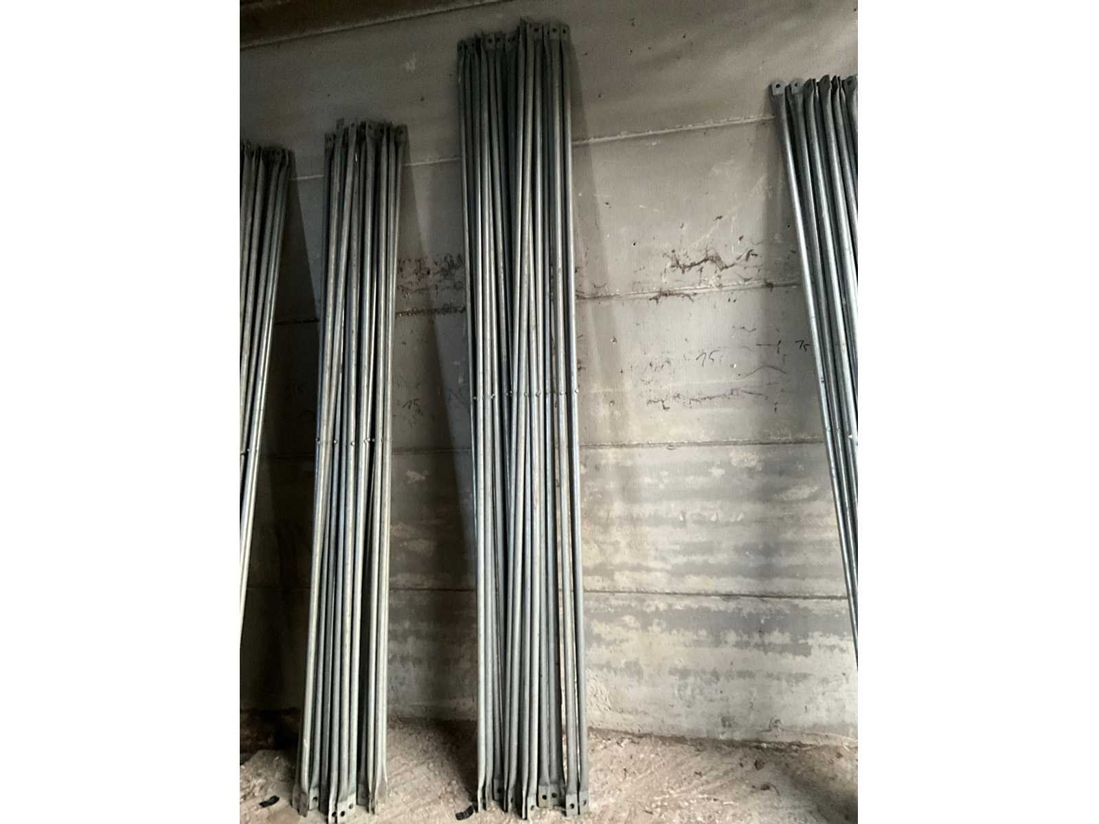 Metalen staanders zo goed als nieuw, elk met afmeting 130 x 215 cm hoog op bijhorende stapelbok. Compleet met 14 bijhorende diagonalen. Nee Totale afmeting Breedte: 130mm Totale afmeting Hoogte: 1150mm