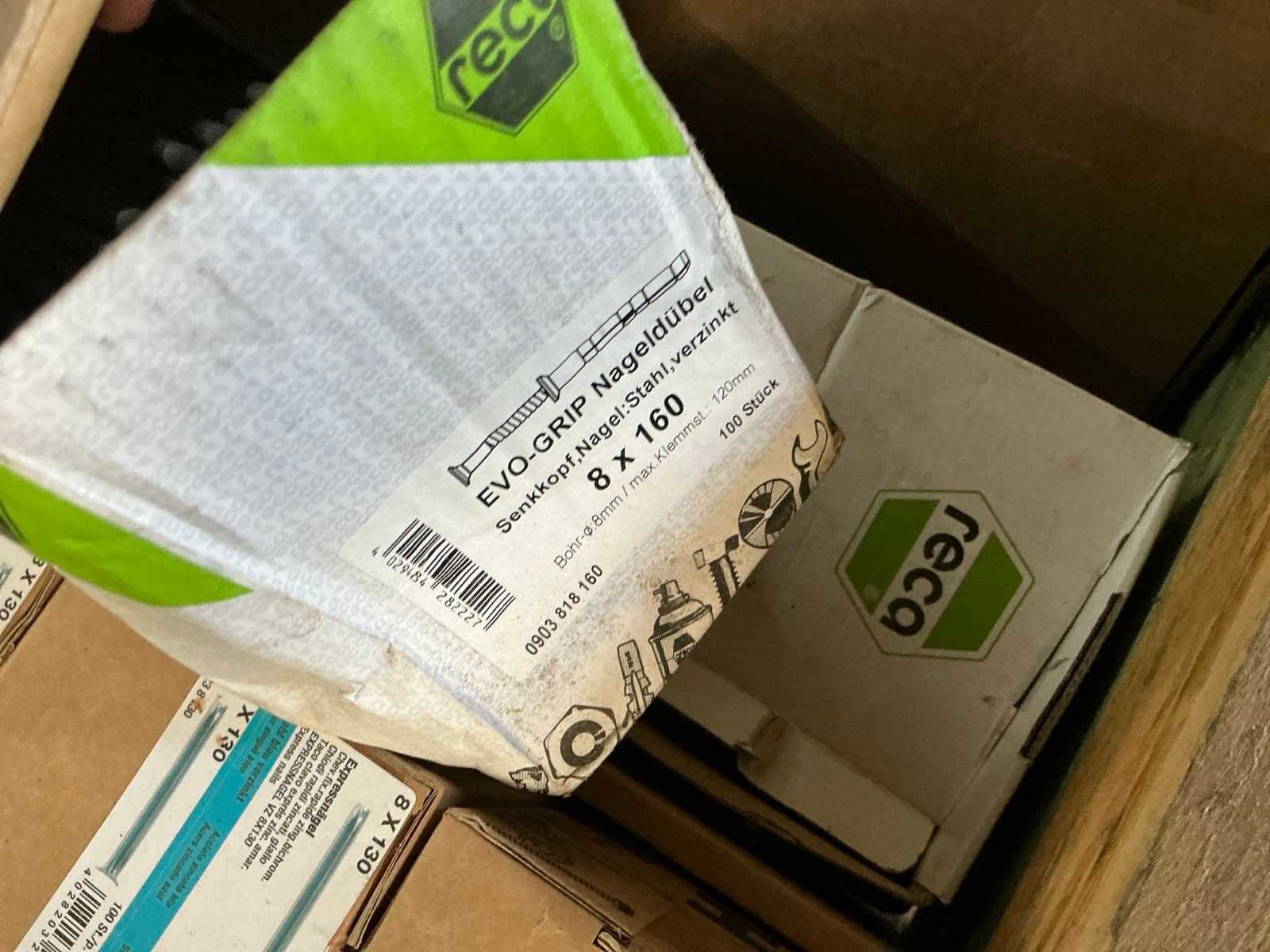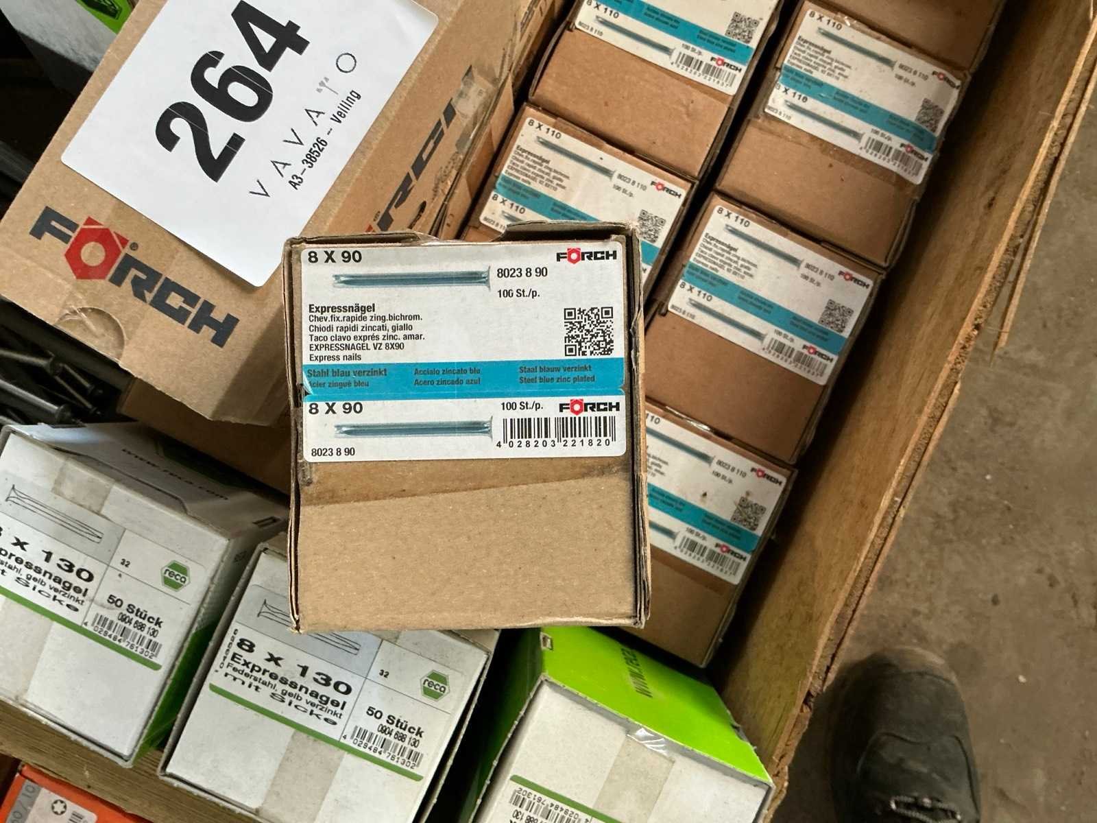 Waaronder 14 dozen FORCH waaronder 8x110, 8x130 en 8x90, compleet met 5 dozen Reco waaronder 3x doos inhoudende expressnagels 8x130mm en 2 dozen inhoudende slagpluggen waaronder 8x160 waaronder aangesproken Nee