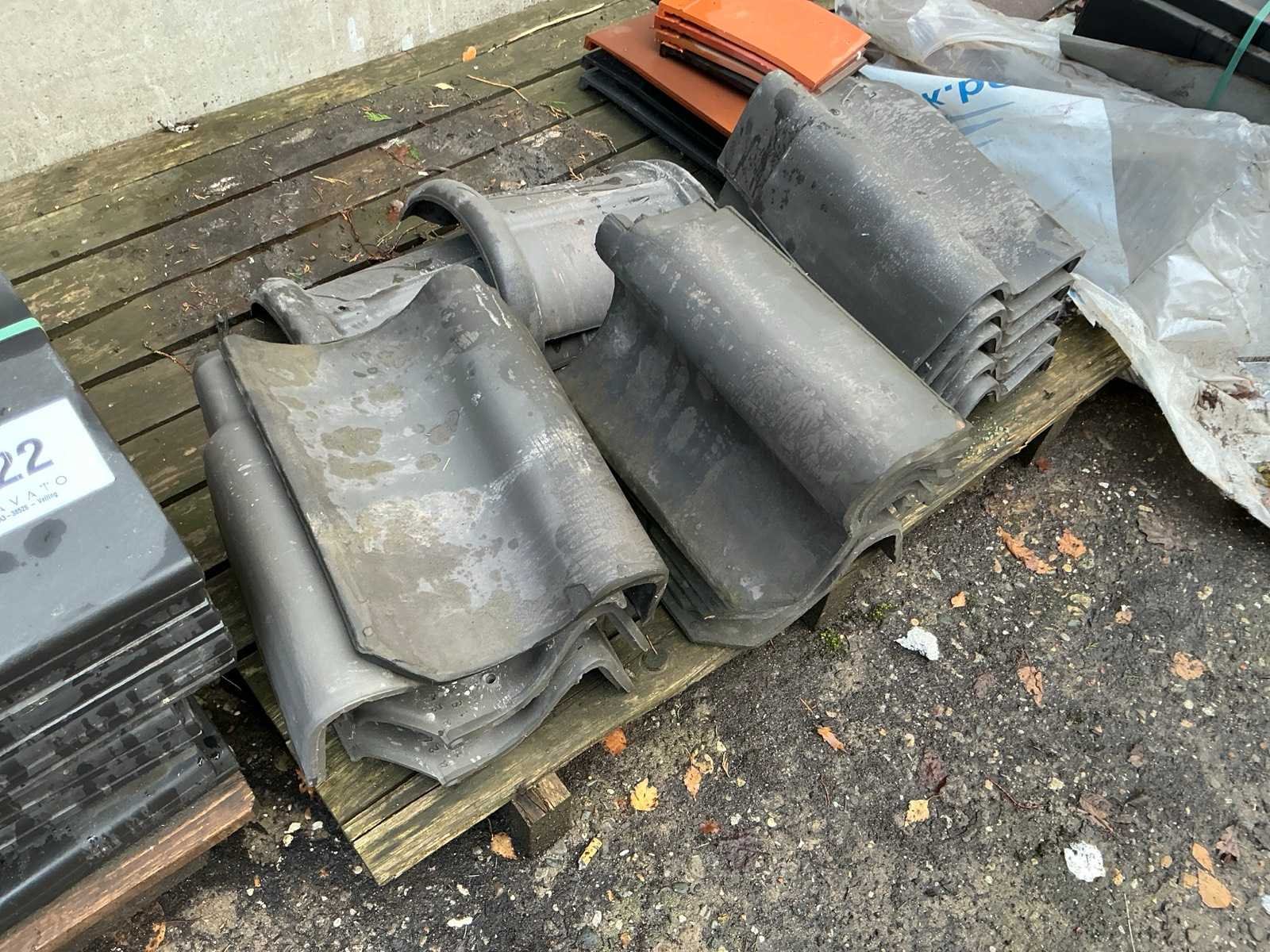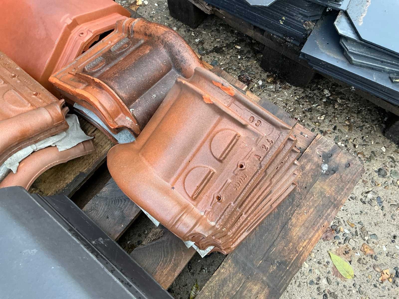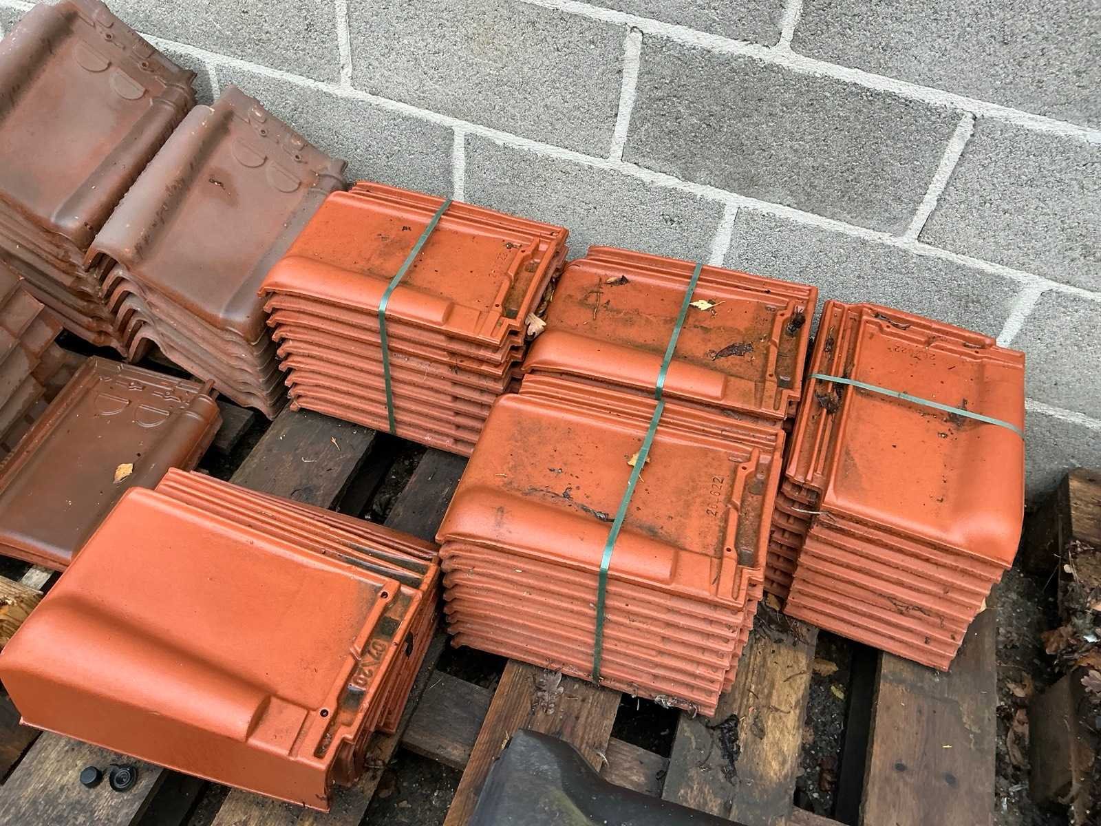 Waaronder Wienerberger, Monnier,.., waaronder nokken, gevelpannen, dakpannen, in diverse kleuren, maten en uitvoeringen, liggende op 11 palletten Nee