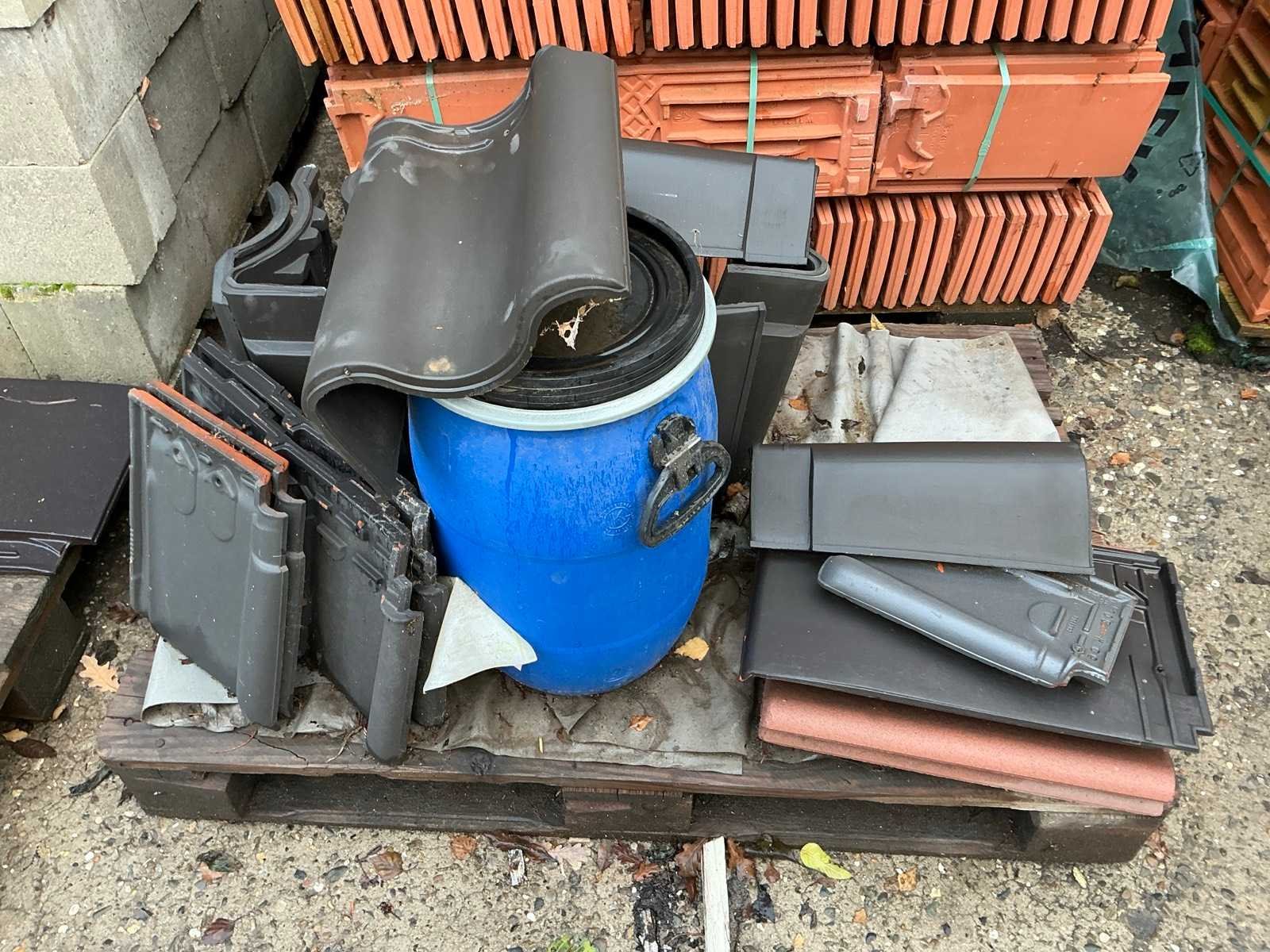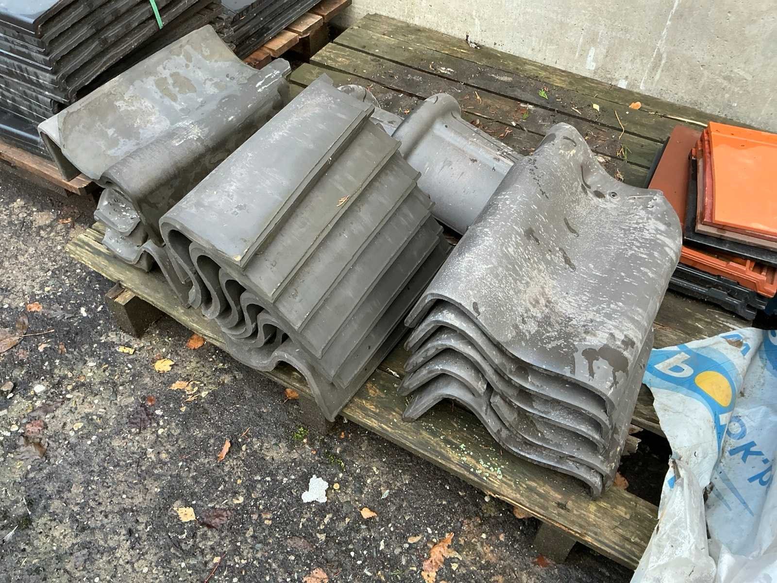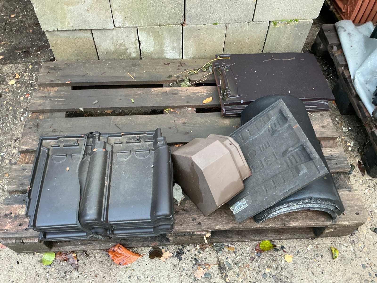 Waaronder Wienerberger, Monnier,.., waaronder nokken, gevelpannen, dakpannen, in diverse kleuren, maten en uitvoeringen, liggende op 11 palletten Nee