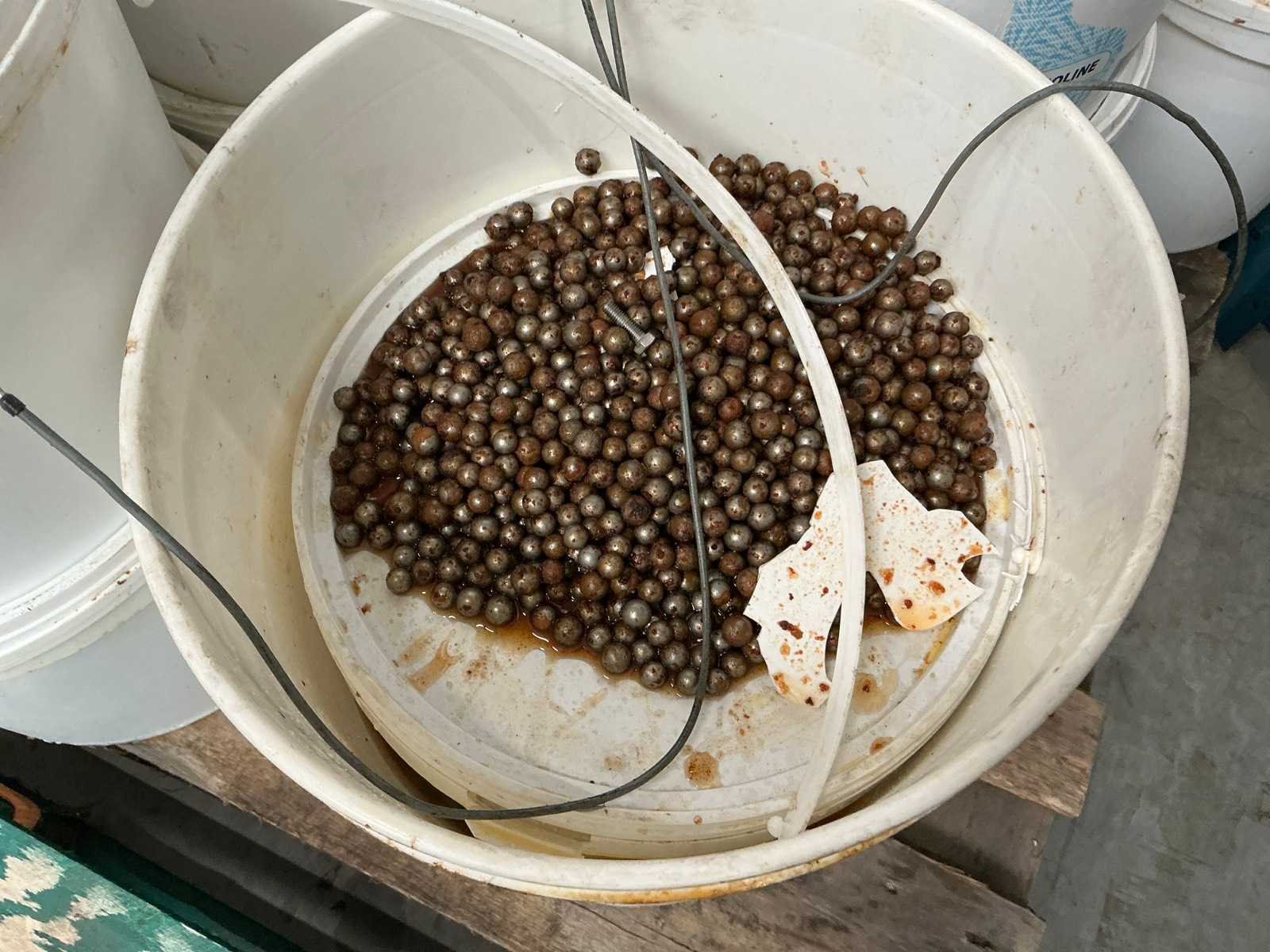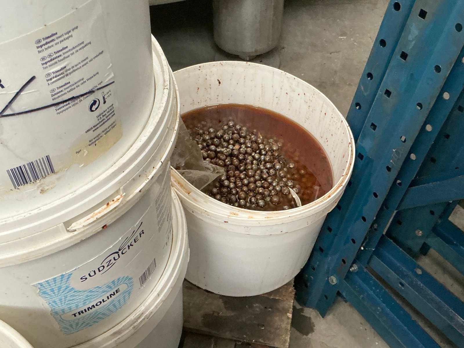 Compleet met 24 emmers kogels OPHALING OP AFSPRAAK! Nee Merk: Sahin Eigen gewicht: 2490kg Aansluiting: 380V Totale afmeting Breedte: 2100mm Totale afmeting Hoogte: 2470mm Totale afmeting L: 2700mm Bouwjaar: 2020 Type: MKSR-B1M3
