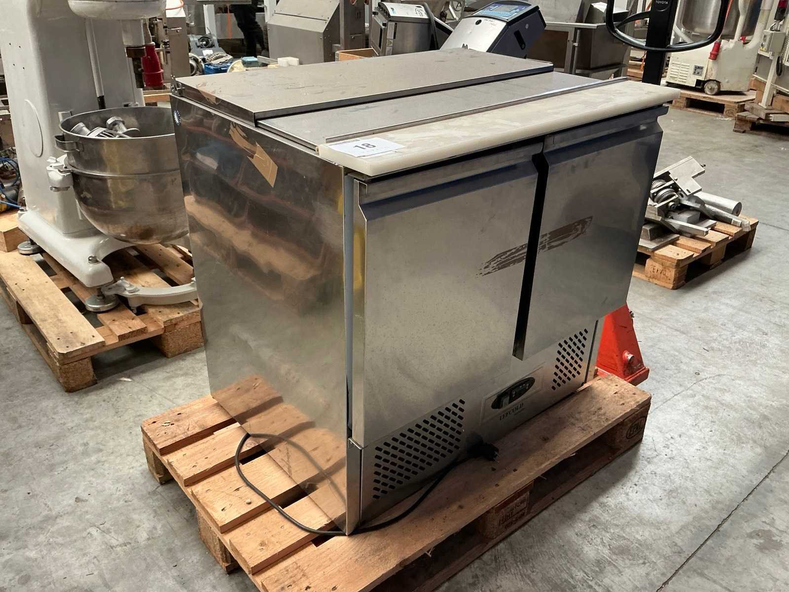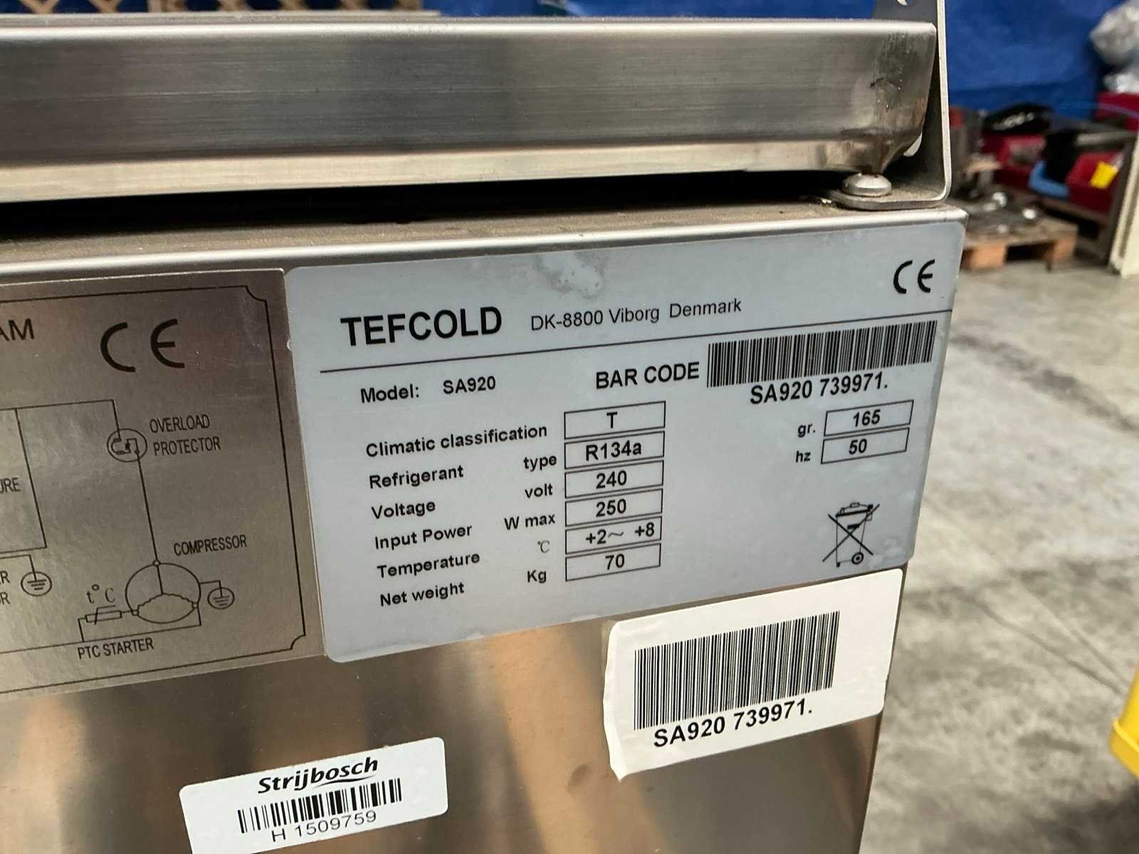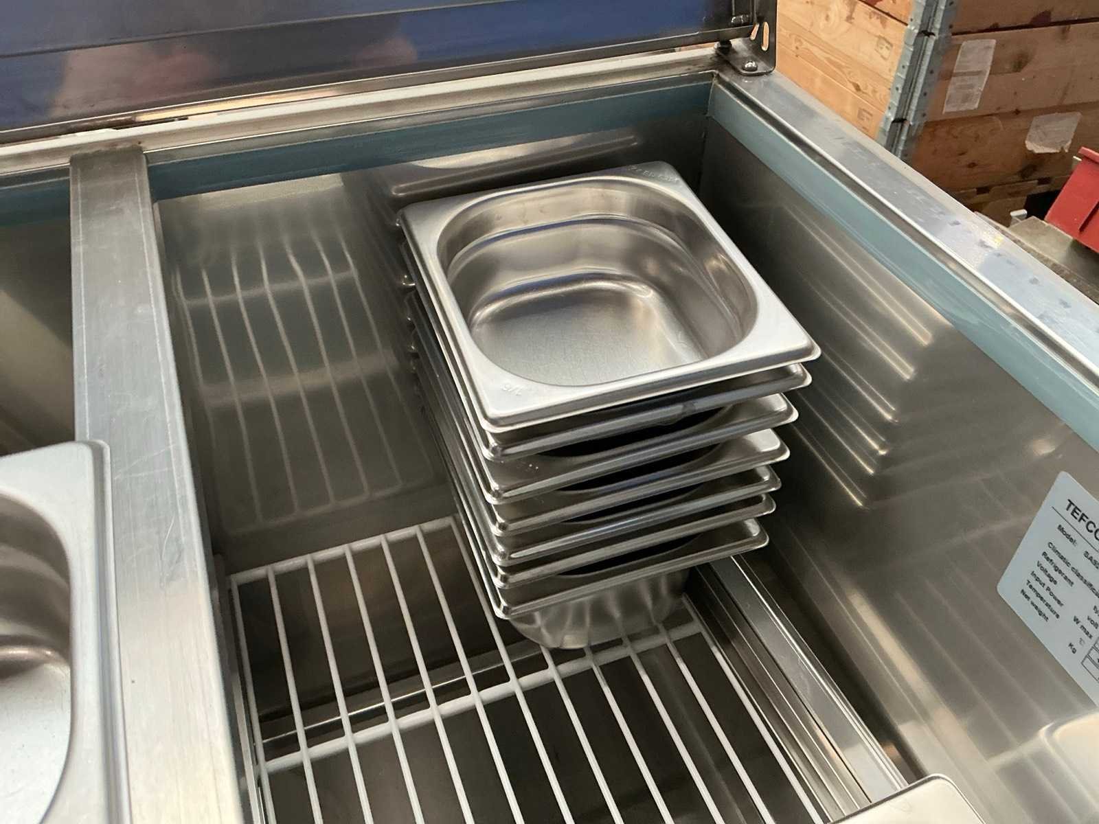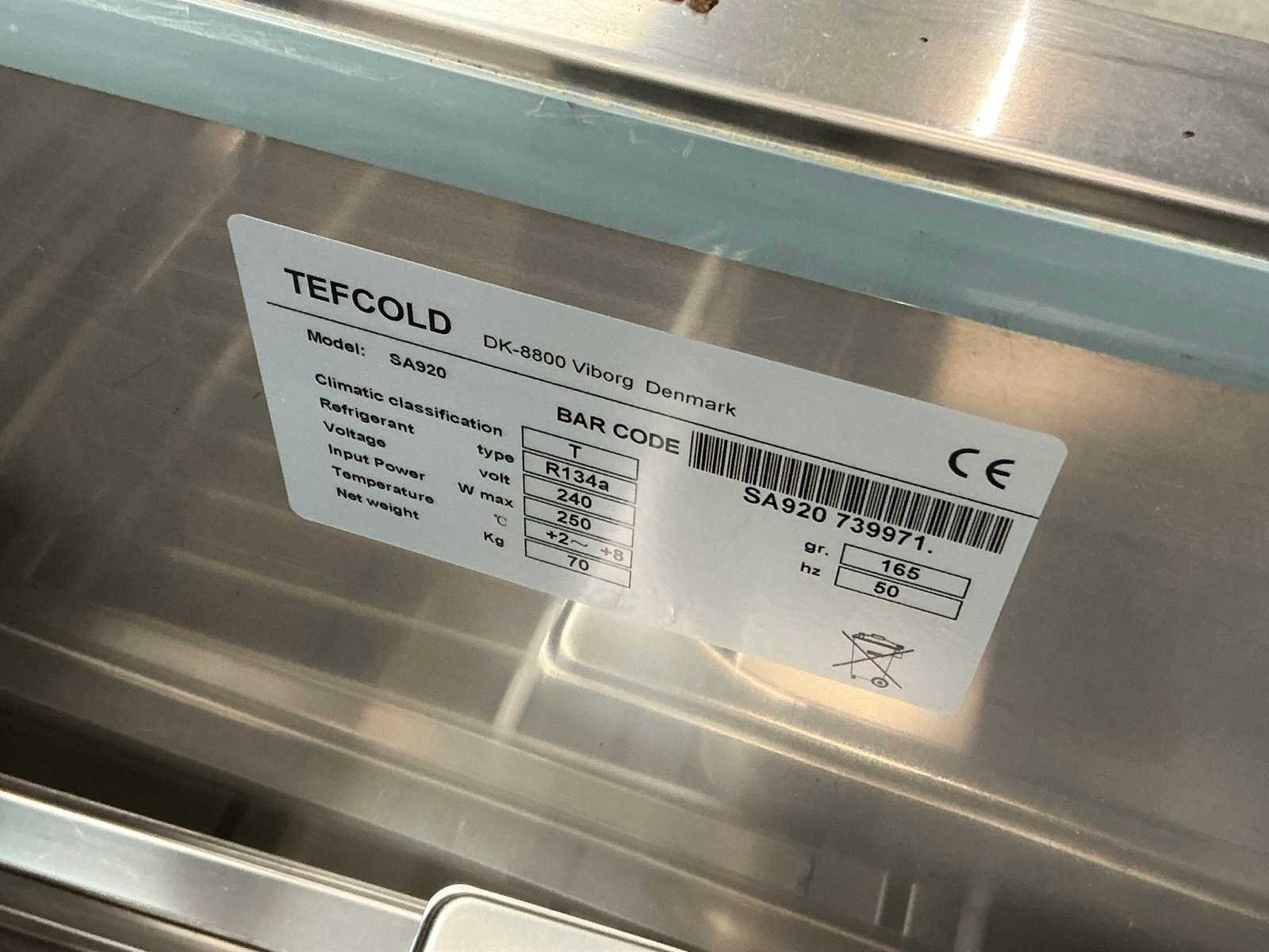Voorzien van 12 diverse gastronormbakken Nee Merk: Tefcold Type: SA920 Materiaal: RVS Eigen gewicht: 70kg Ingebouwde koelcompressor: true Rvs: true Aansluiting: 240V