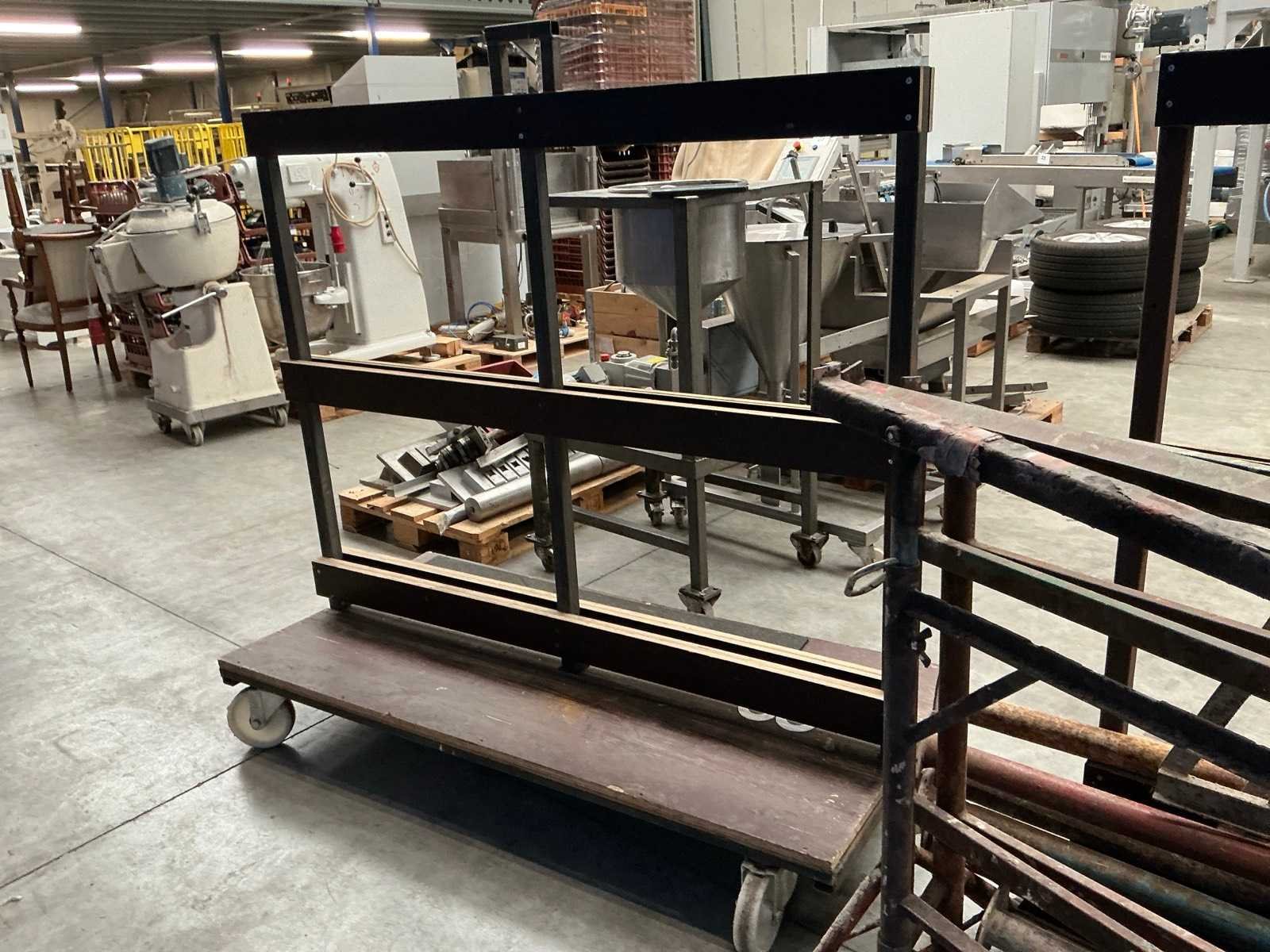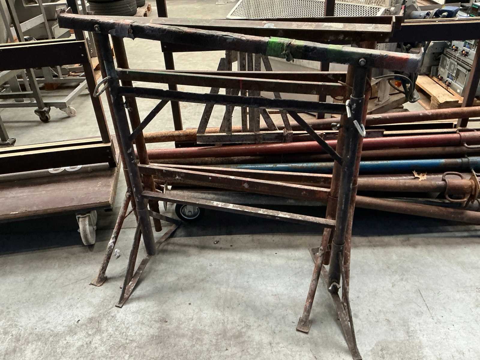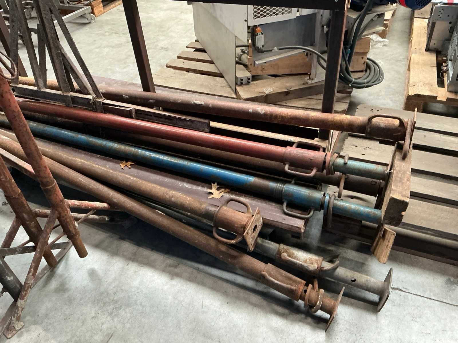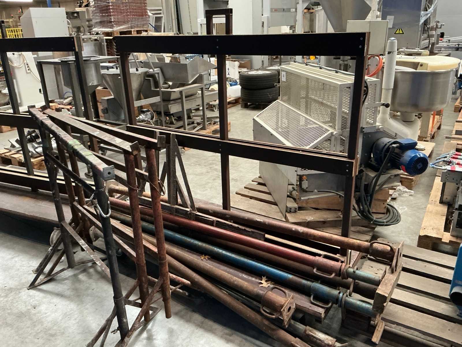 Bestaande uit 3x schragen met afm ca. 115 x 100cm en 7x schoren waaronder met lengte ca. 160cm en 190cm. Compleet met 2x transportkar met afmetingen ca. 160 x 75 x 165cm. Nee