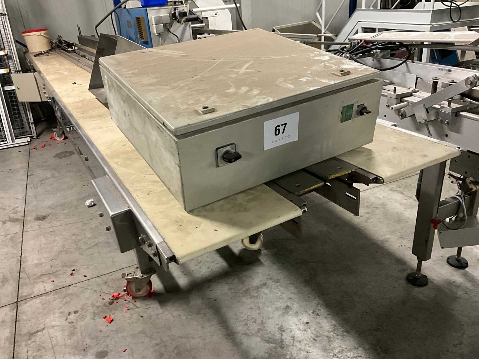 Voorzien va, 2x transportband en zekeringkast. Nee Band afm. b: 300mm Totale afmeting L: 5000mm Totale afmeting Breedte: 1000mm Totale afmeting Hoogte: 900mm