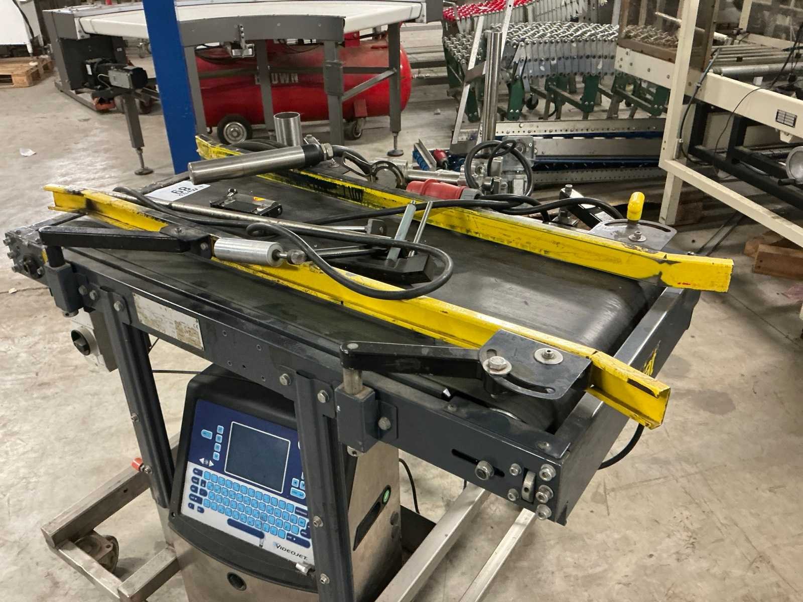 Compleet met ICJ printer Videojet 1520. Nee Merk: Siat Type: CE1/500 Totale afmeting L: 1100mm Totale afmeting Breedte: 800mm Totale afmeting Hoogte: 900mm