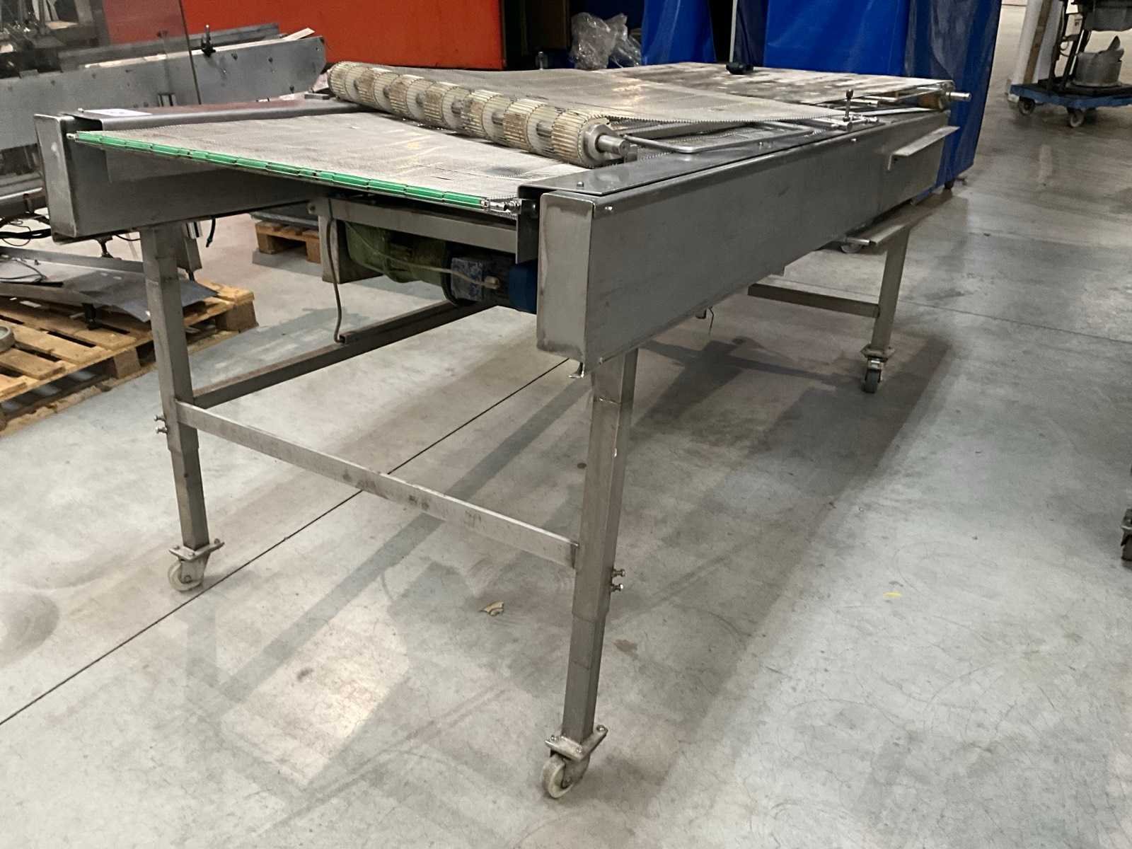 Compleet met 2 dito gedemonteerde transportbanden. Nee Band afm. b: 960mm Totale afmeting L: 2400mm Totale afmeting Breedte: 1250mm Totale afmeting Hoogte: 1150mm