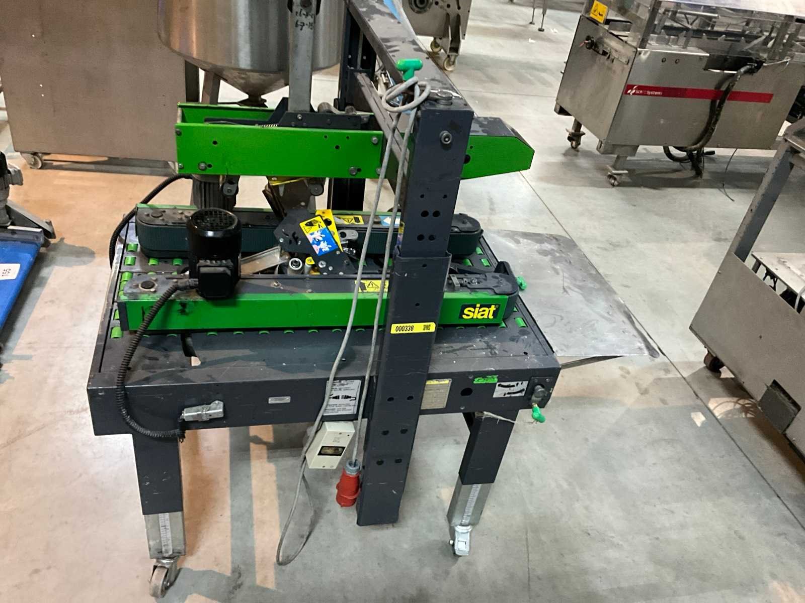 Nee Merk: Siat Type: semi-automatic case sealer Bouwjaar: 1990 Serienummer: 1450 Totale afmeting L: 1500mm Totale afmeting Breedte: 900mm Totale afmeting Hoogte: 1500mm