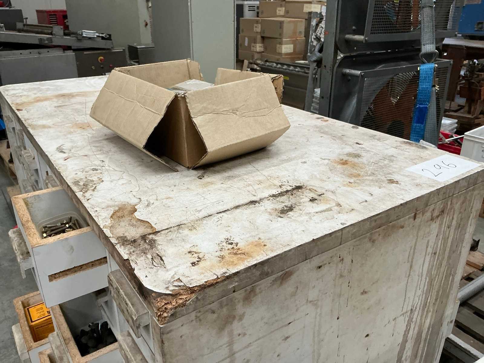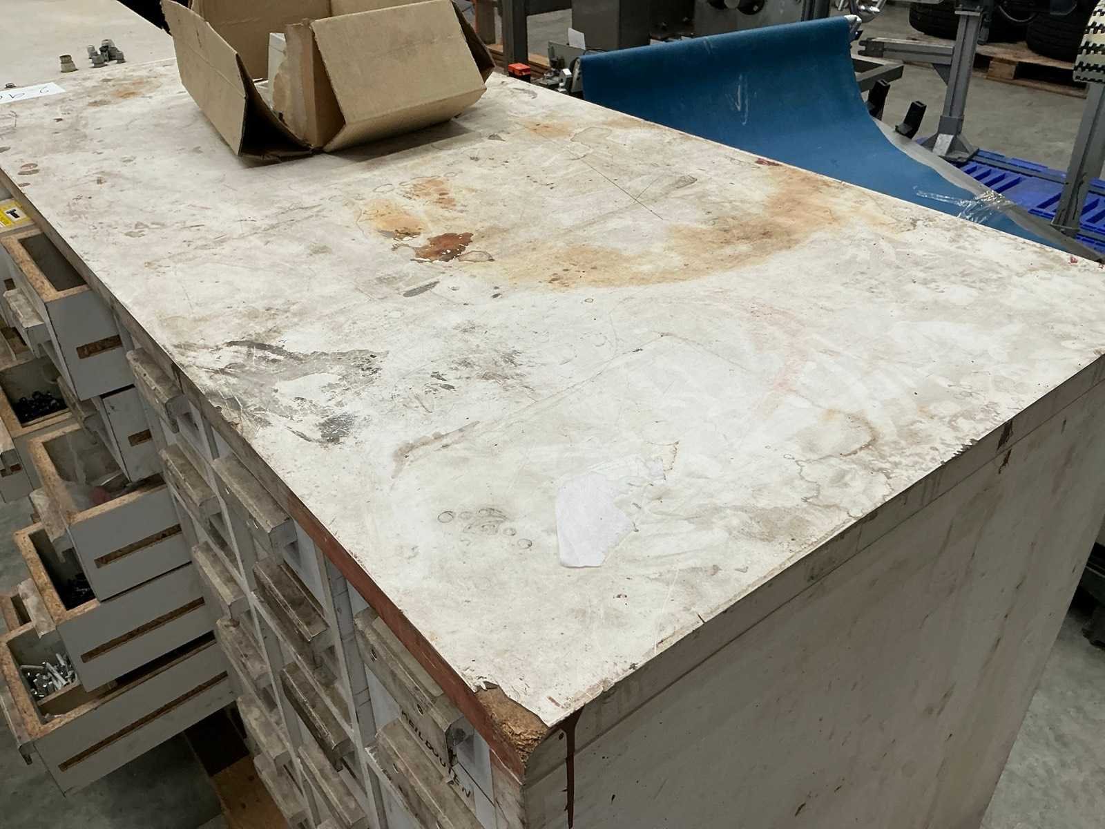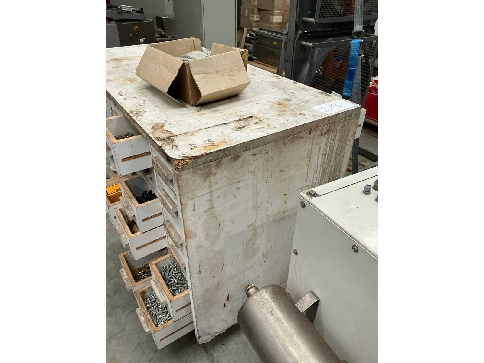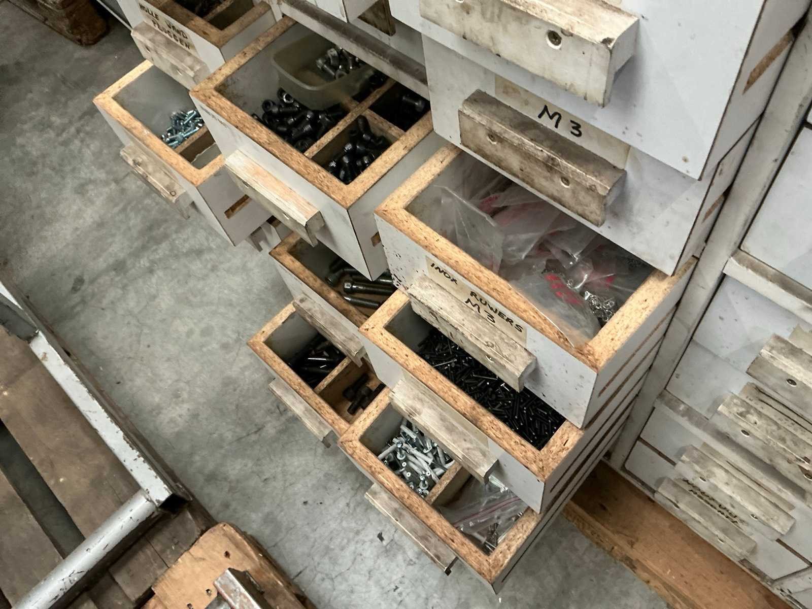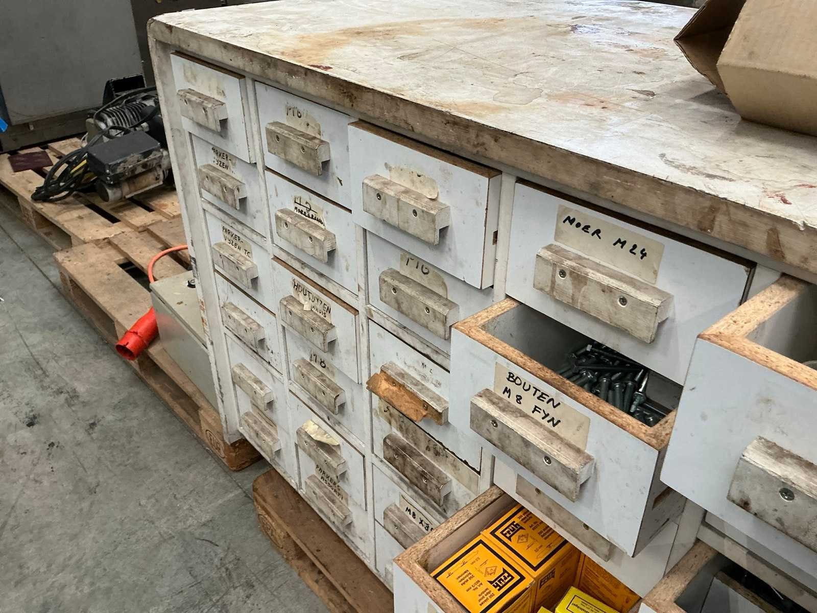 Voorzien van 72 schuifladen waaronder voorzien van bevestigingsmaterialen. Nee Breedte: 730mm Lengte: 1520mm Hoogte: 900mm