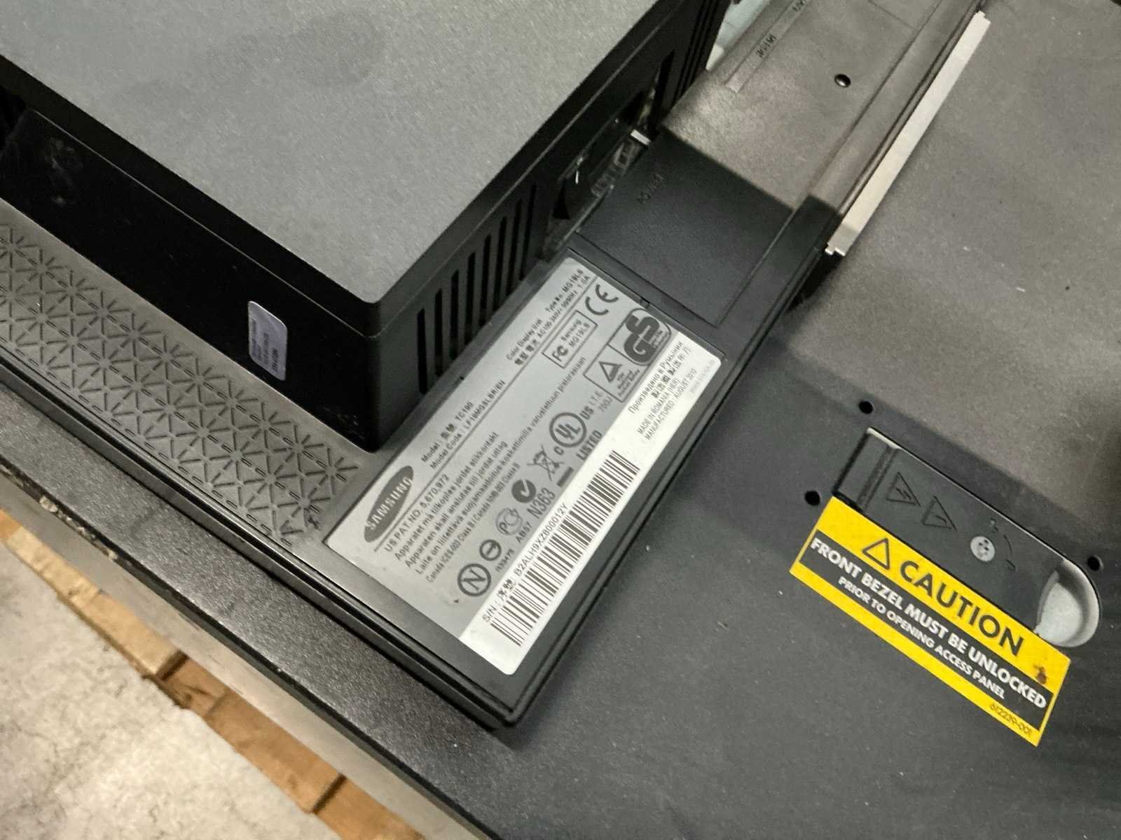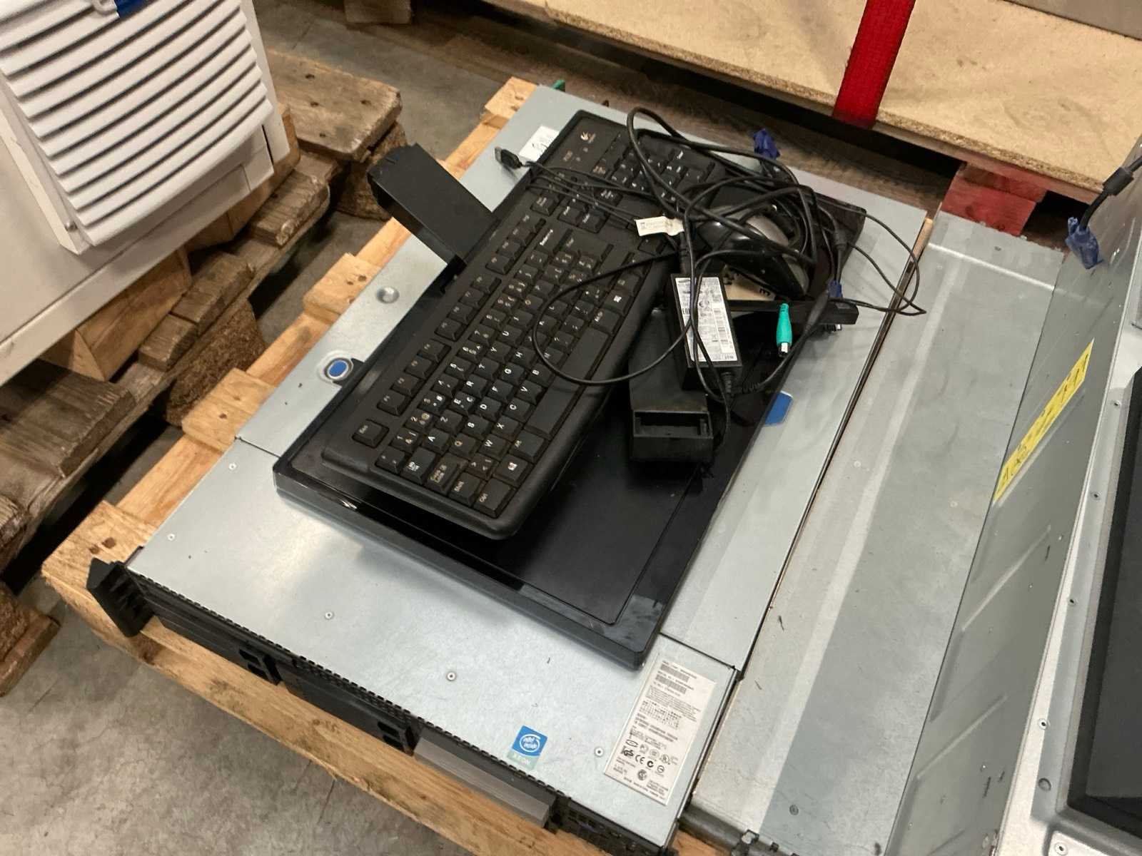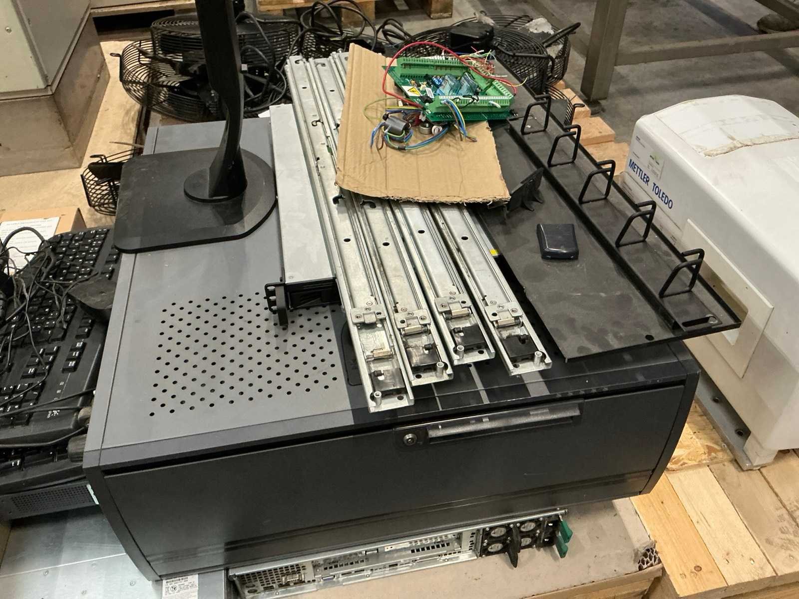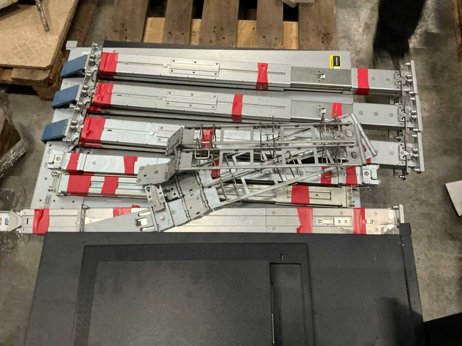 Liggende op 3x pallet waaronder 3x HP PROLIANT ML350 SAMSUNG, computercase, diverse monitors, switch D-Link,.. alle harde schijven verwijderd. Nee