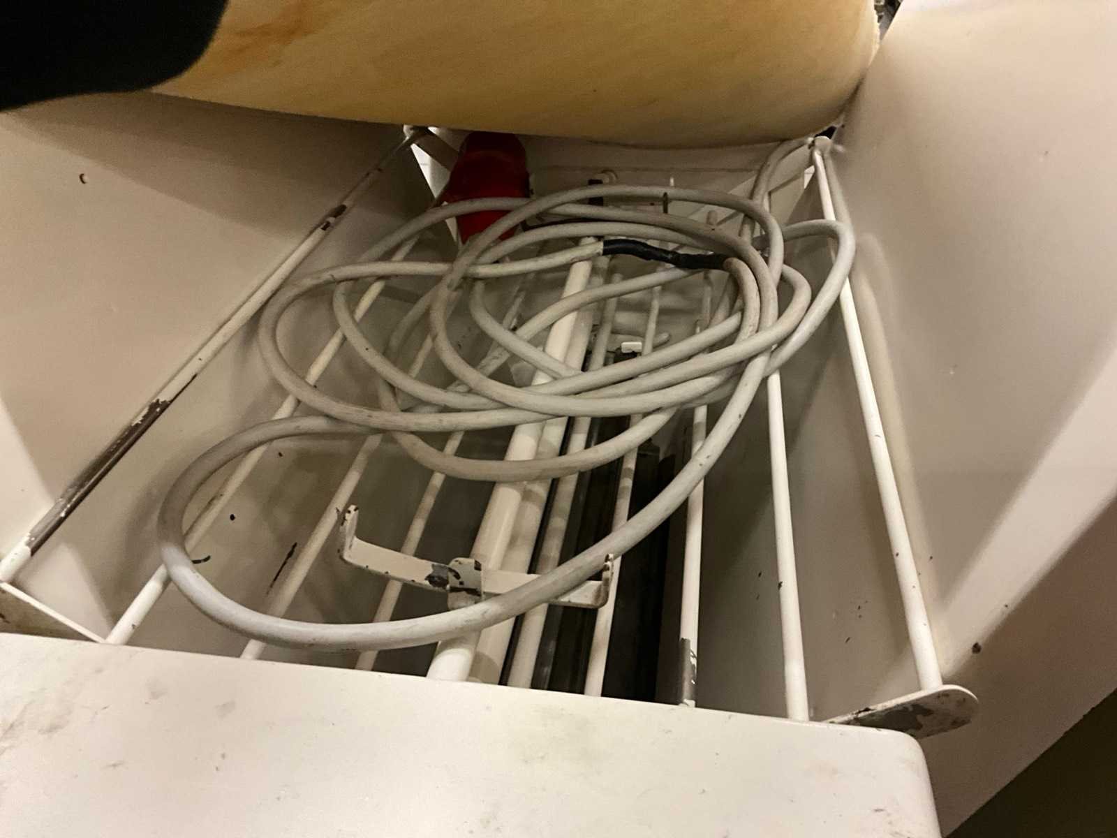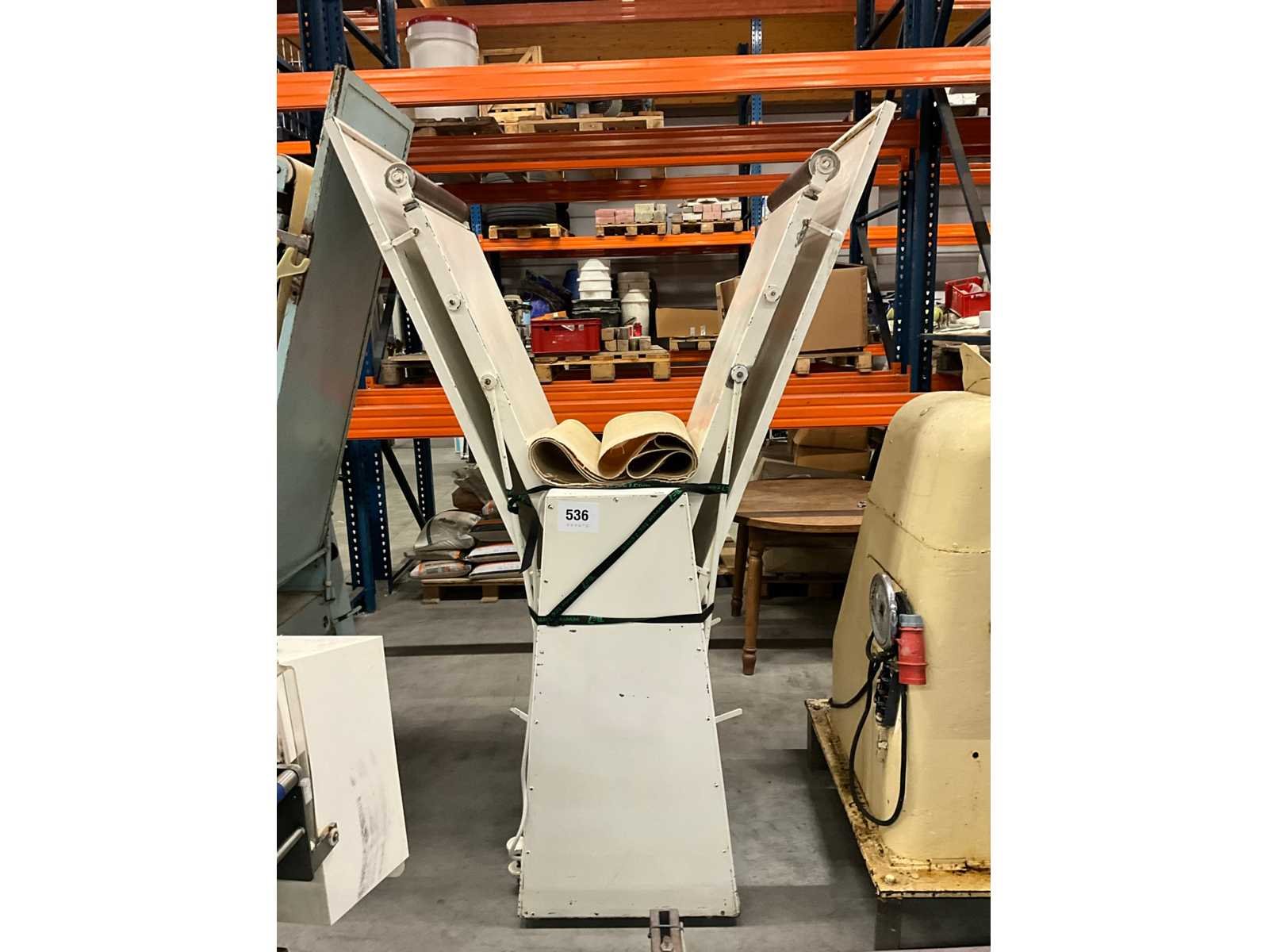 Voorzien van voetbediening Nee Transportband afm. l: 3000mm Transportband afm. b: 600mm Aansluiting: 380V Totale afmeting L: 3200mm Totale afmeting Breedte: 600mm Totale afmeting Hoogte: 2140mm