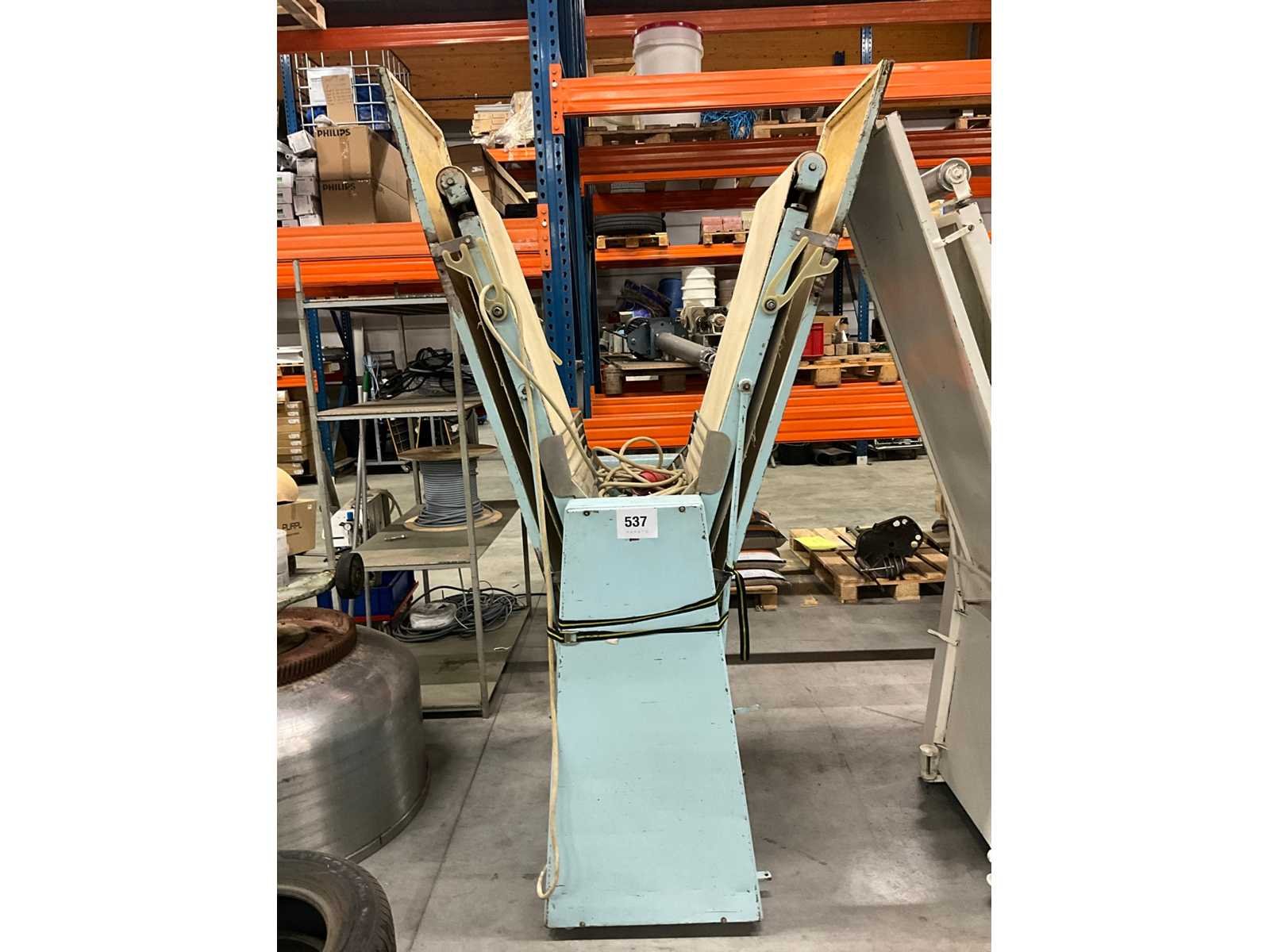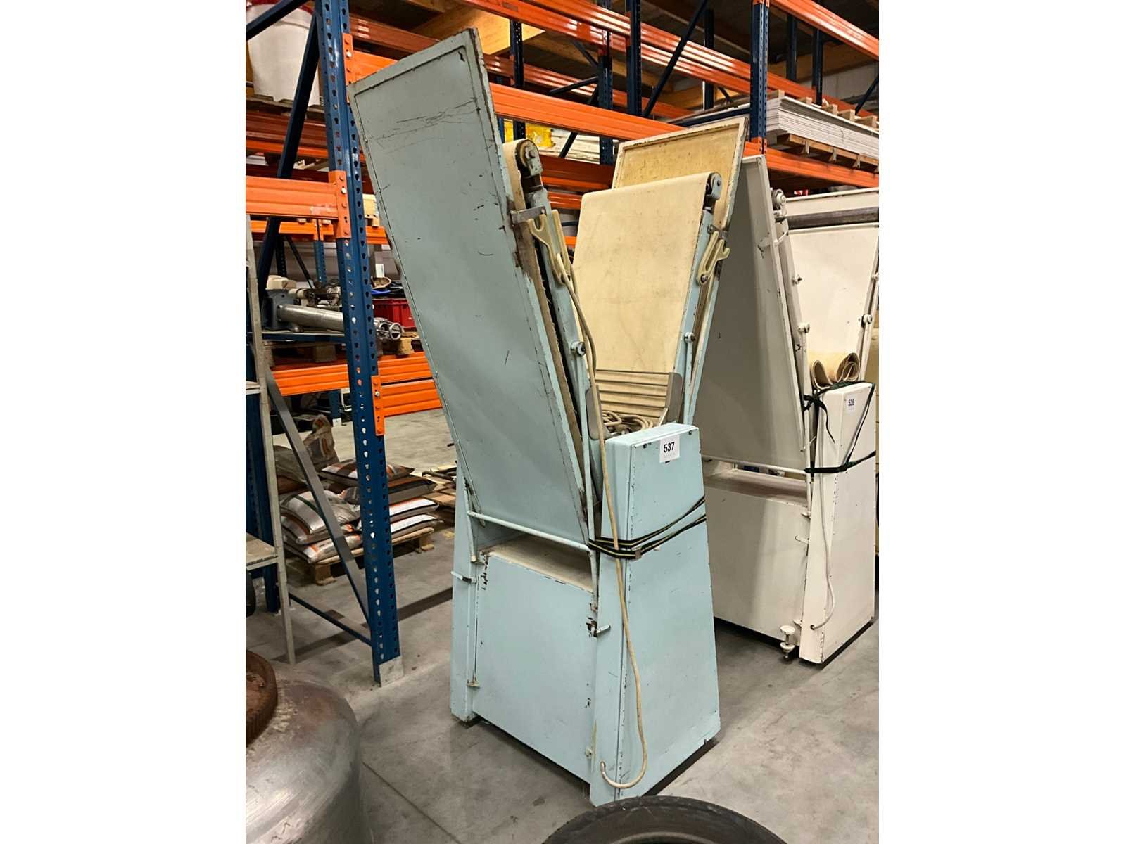 Voorzien van voetbediening Nee Transportband afm. l: 2600mm Transportband afm. b: 600mm Aansluiting: 380V Totale afmeting L: 3200mm Totale afmeting Breedte: 600mm Totale afmeting Hoogte: 2300mm