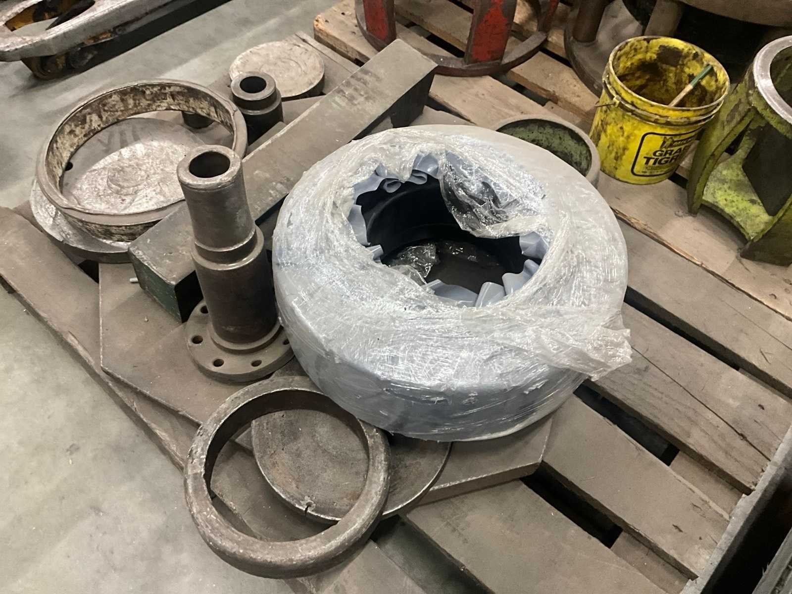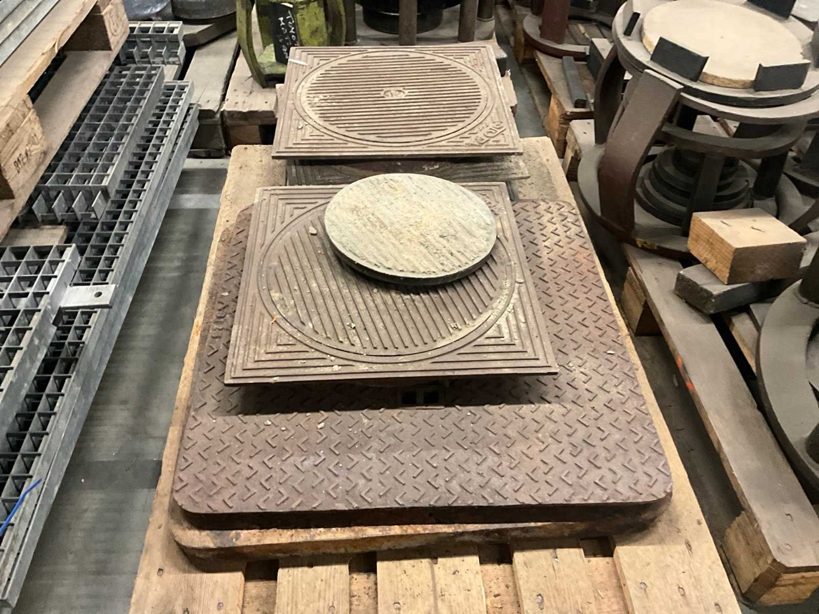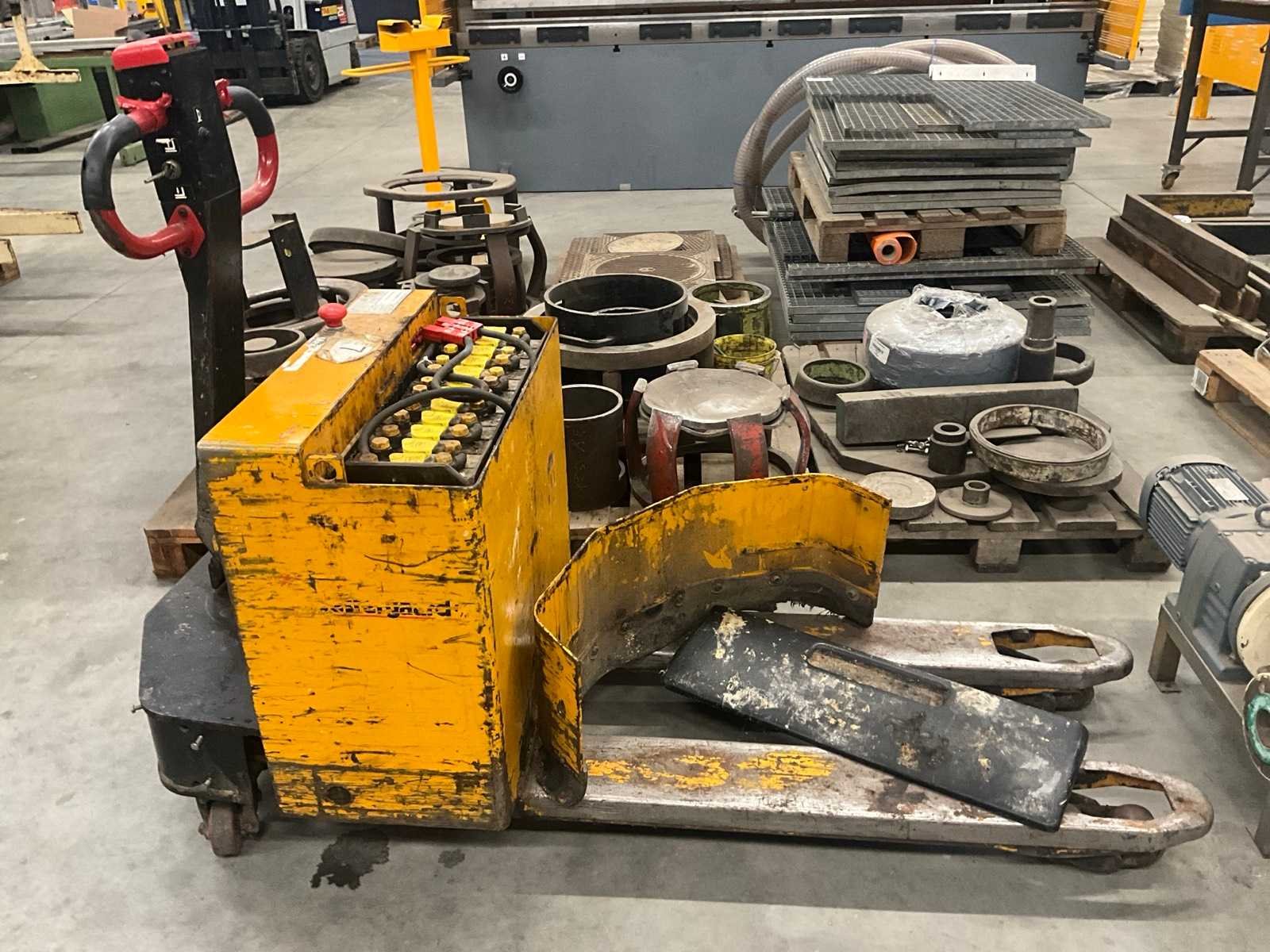 Bestaande uit elektrische transpallet ( niet werkend ), diverse bandenlichters en riooldeksels, liggende op 5 pallets. Nee