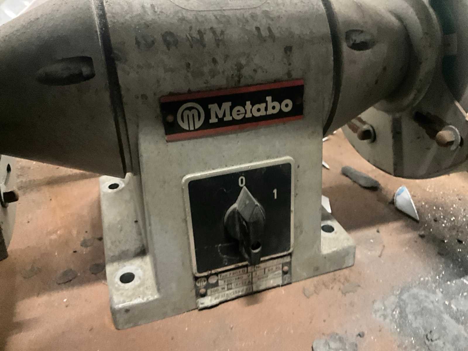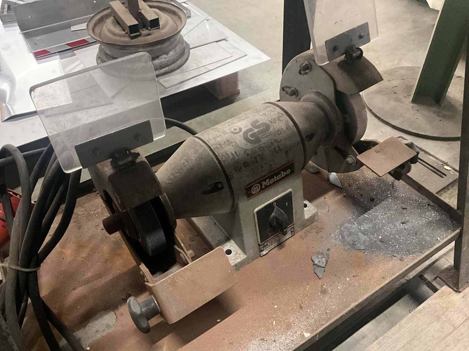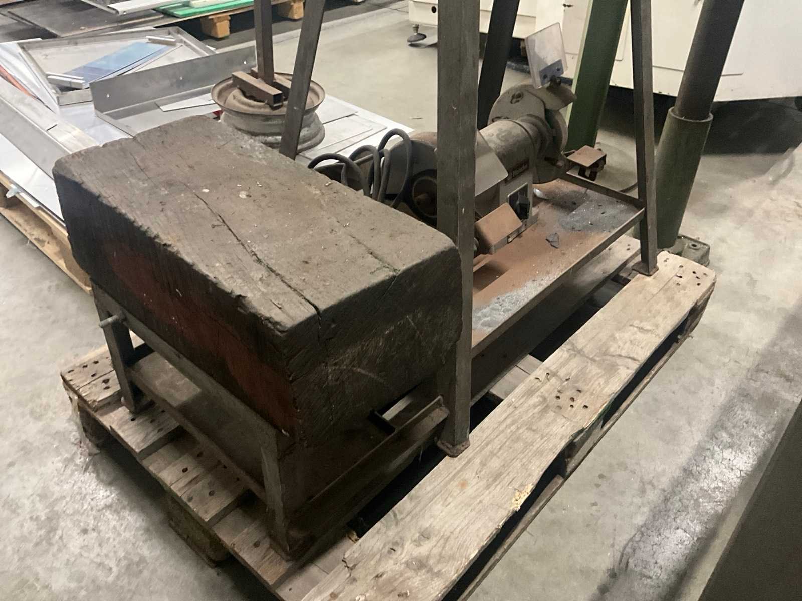 Bestaande uit plaatschaar gemonteerd op metalen onderstel 104 x 55 x 75cm compleet met dubbele slijpmolen Metabo Nee