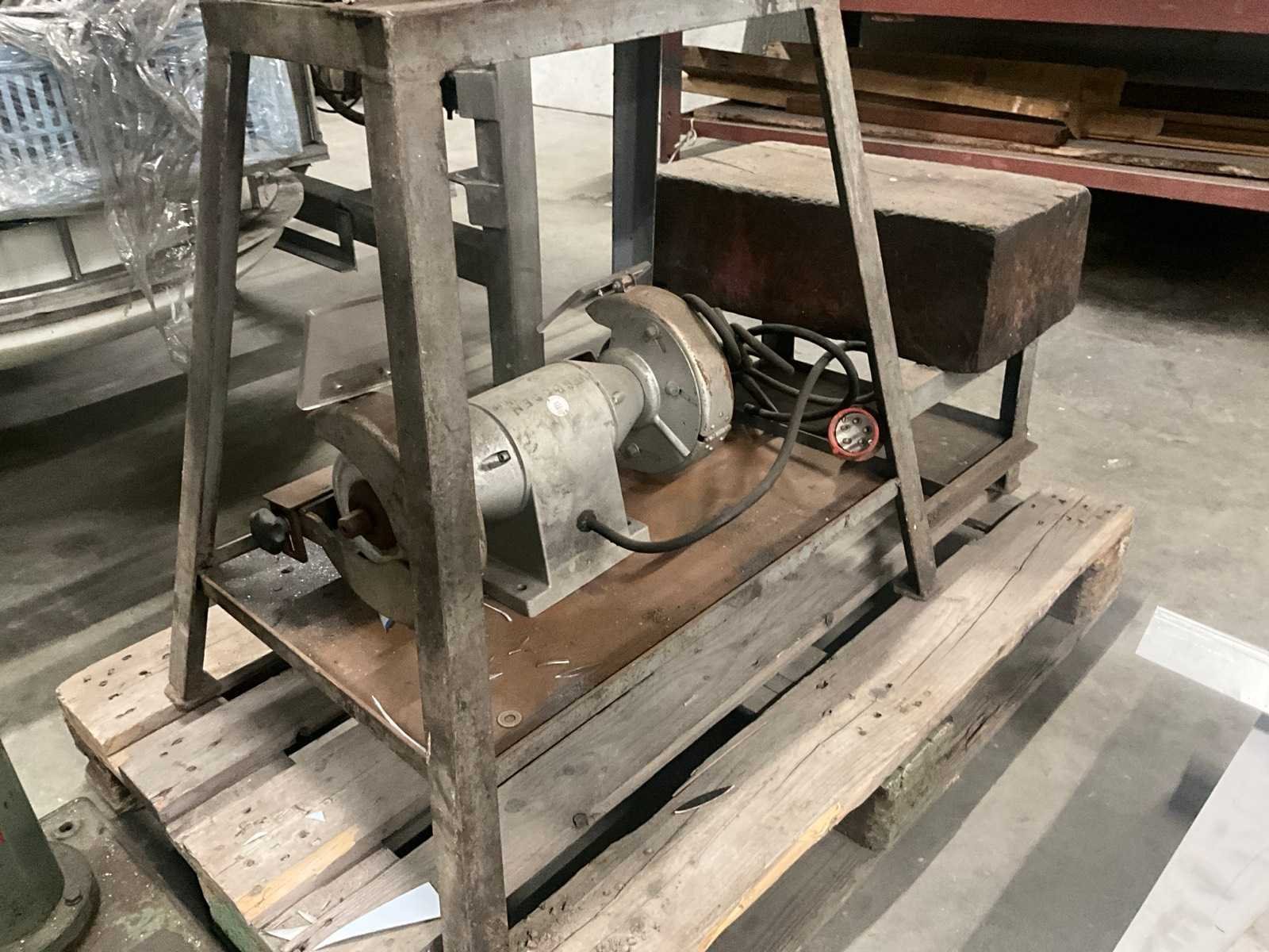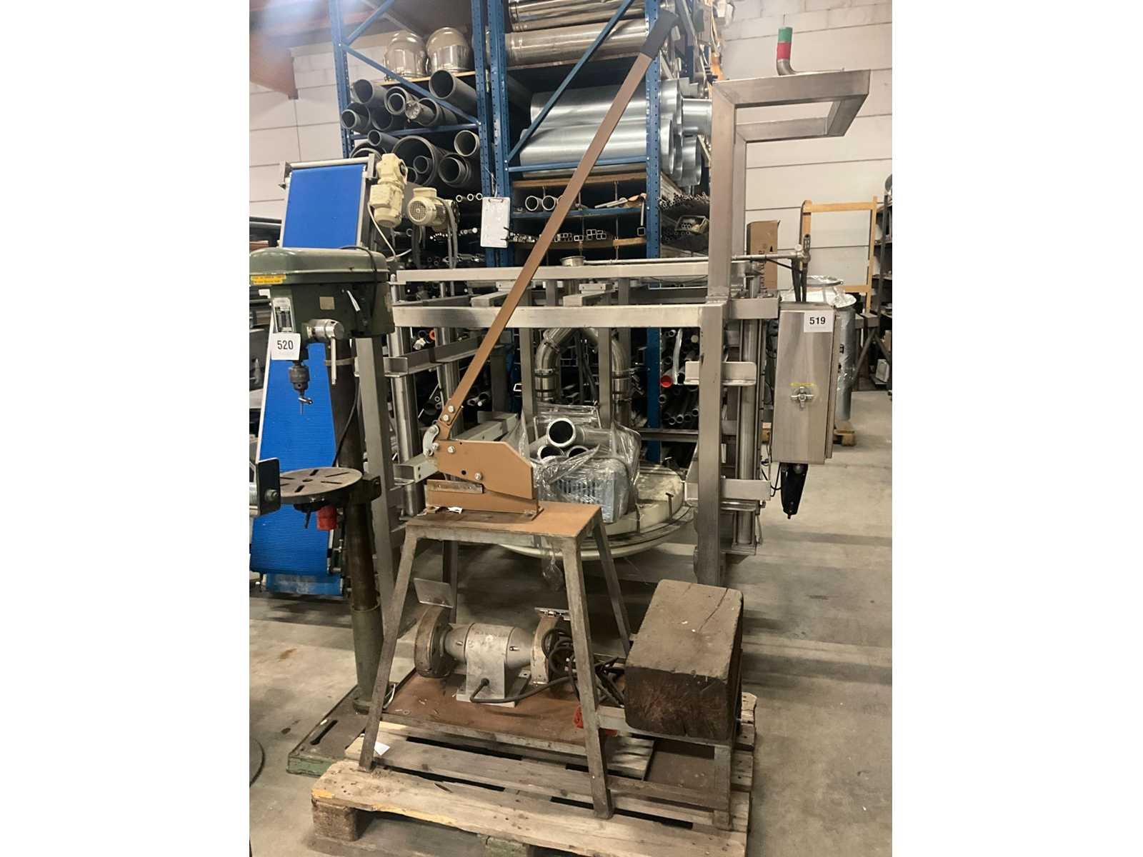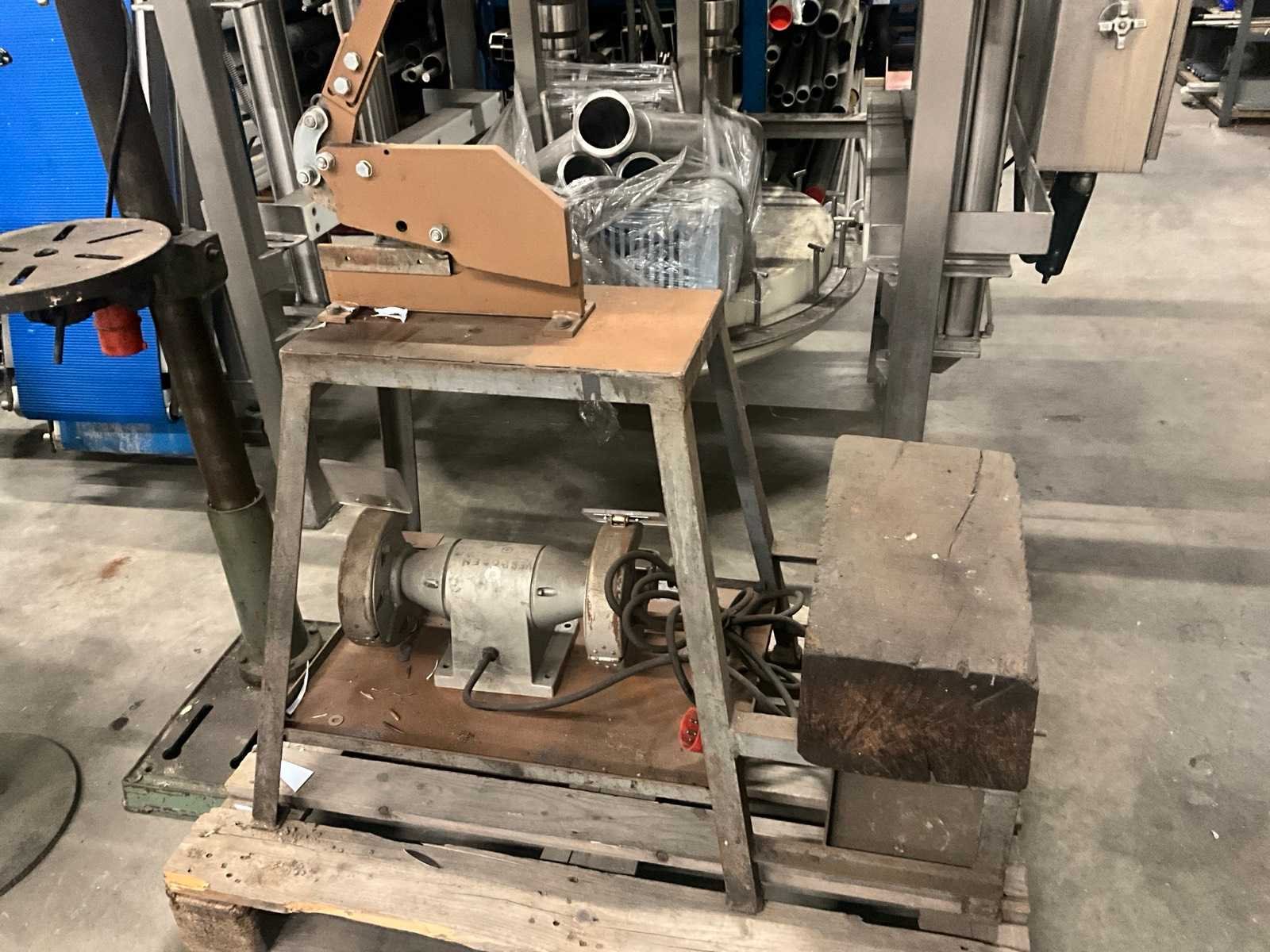 Bestaande uit plaatschaar gemonteerd op metalen onderstel 104 x 55 x 75cm compleet met dubbele slijpmolen Metabo Nee