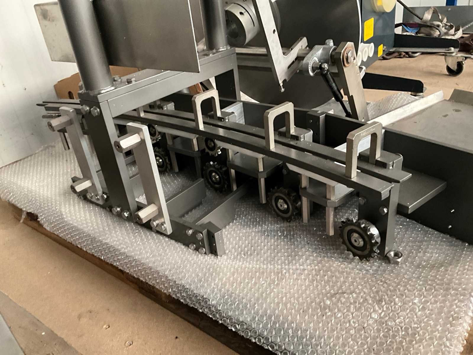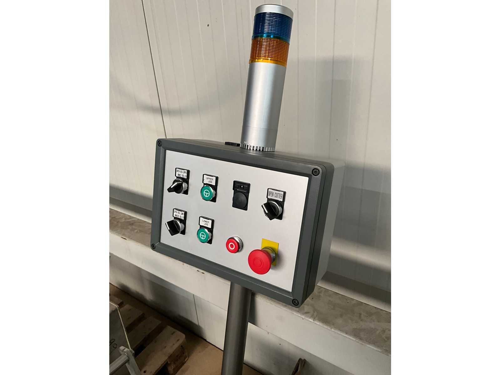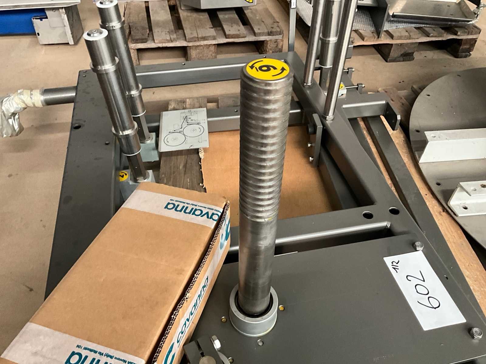 Waaronder 3x metalen frame voorzien van diverse rollen met AFM circa 170 x 105cm, compleet met metalen onderstel transportband voorzien van tandwielen en sturingskast. Liggende op 2 pallets. Nee