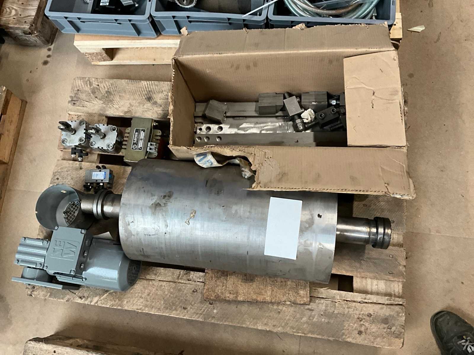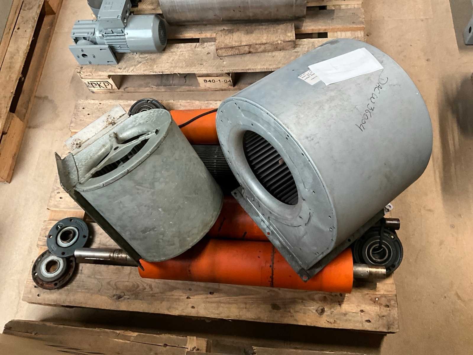 Bestaande uit 12 diverse rollen, electromotor SEW, 2x ventilator en diversen liggende op 4 pallets. Nee