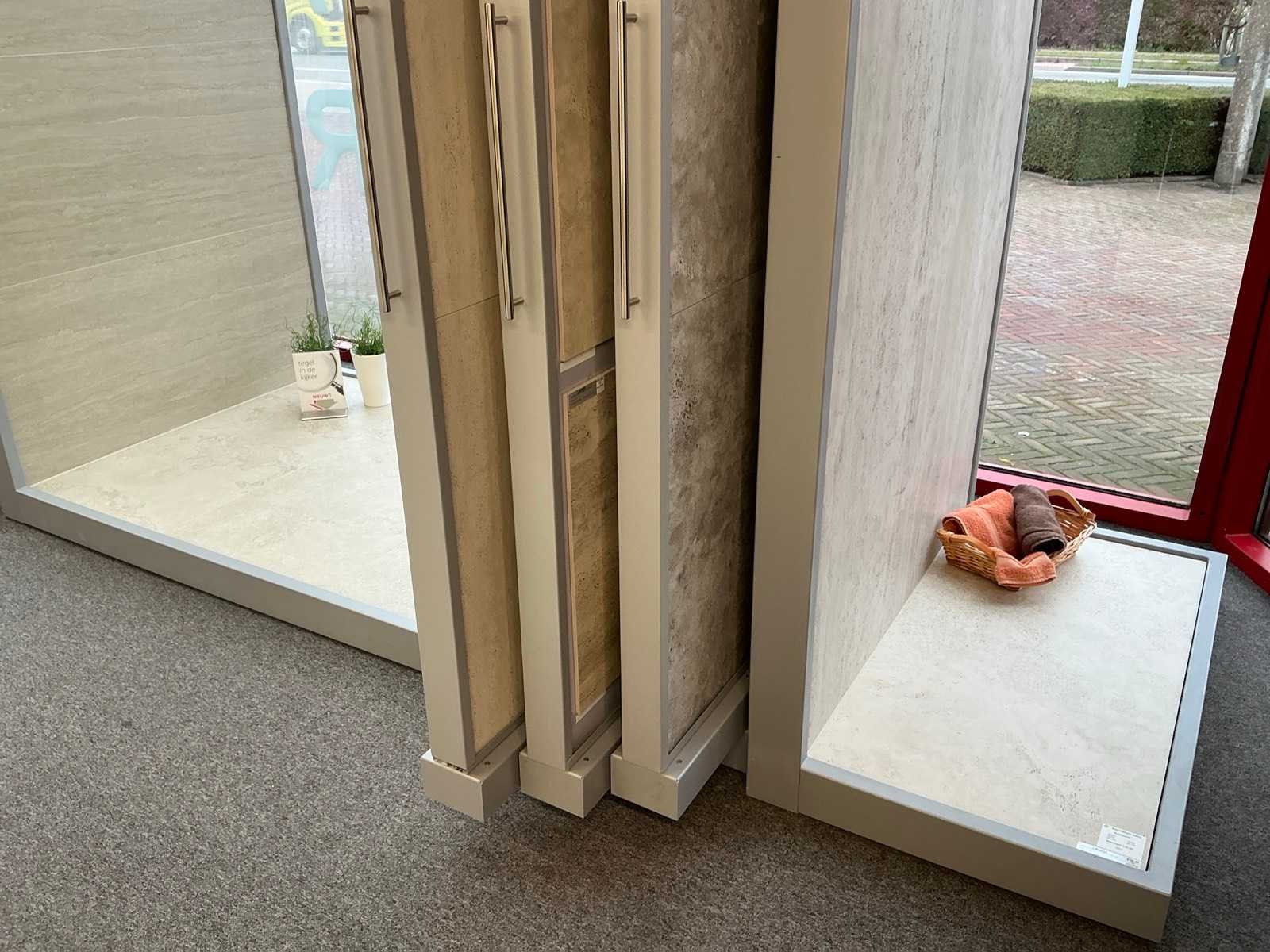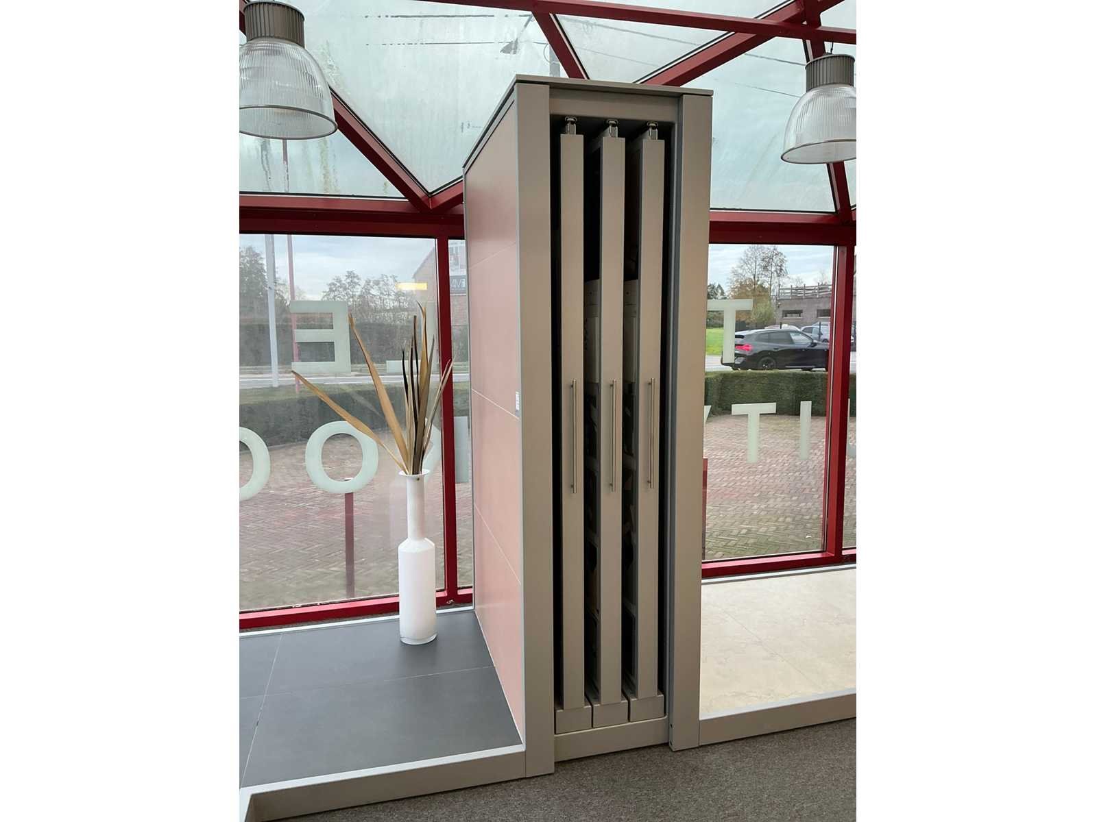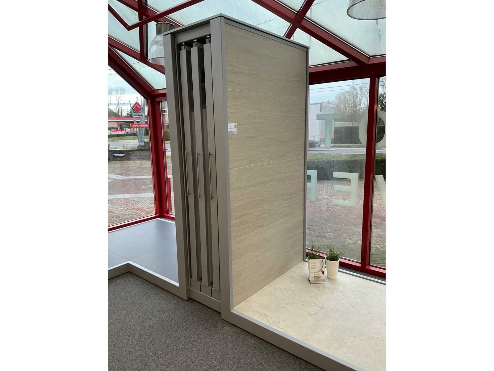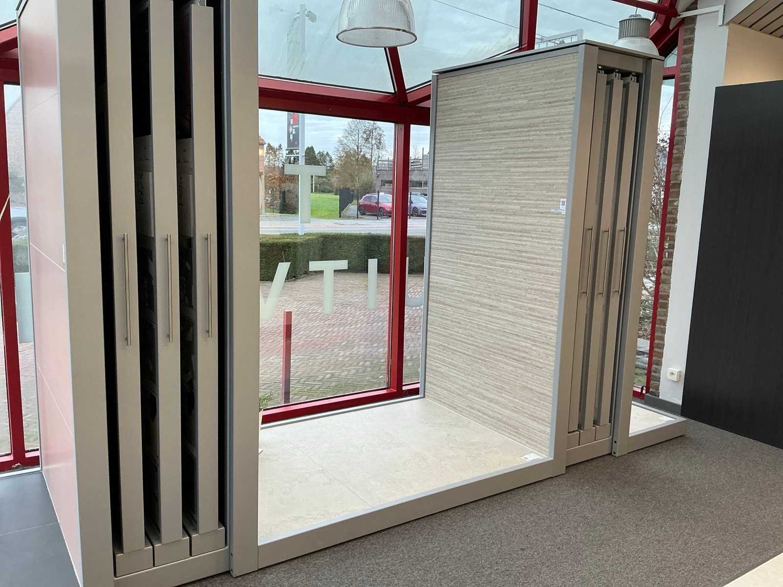 Bestaande uit REDEC Zeta 3 (3x), elk met afmetingen ca. 130 x 70 x 240cm + REDEC Rolbox L 120/60 (2x) met afmetingen ca. 130 x 75 x 240cm + REDEC Rolbox U 180/120 met afmetingen ca. 130 x 200 x 240cm + cornerbox met afmetingen ca. 220 x 220 x 240cm. Door koper te demonteren van omgeving. Alle aangekleefde tegels MOETEN meegenomen worden door koper. Nee Merk: REDEC