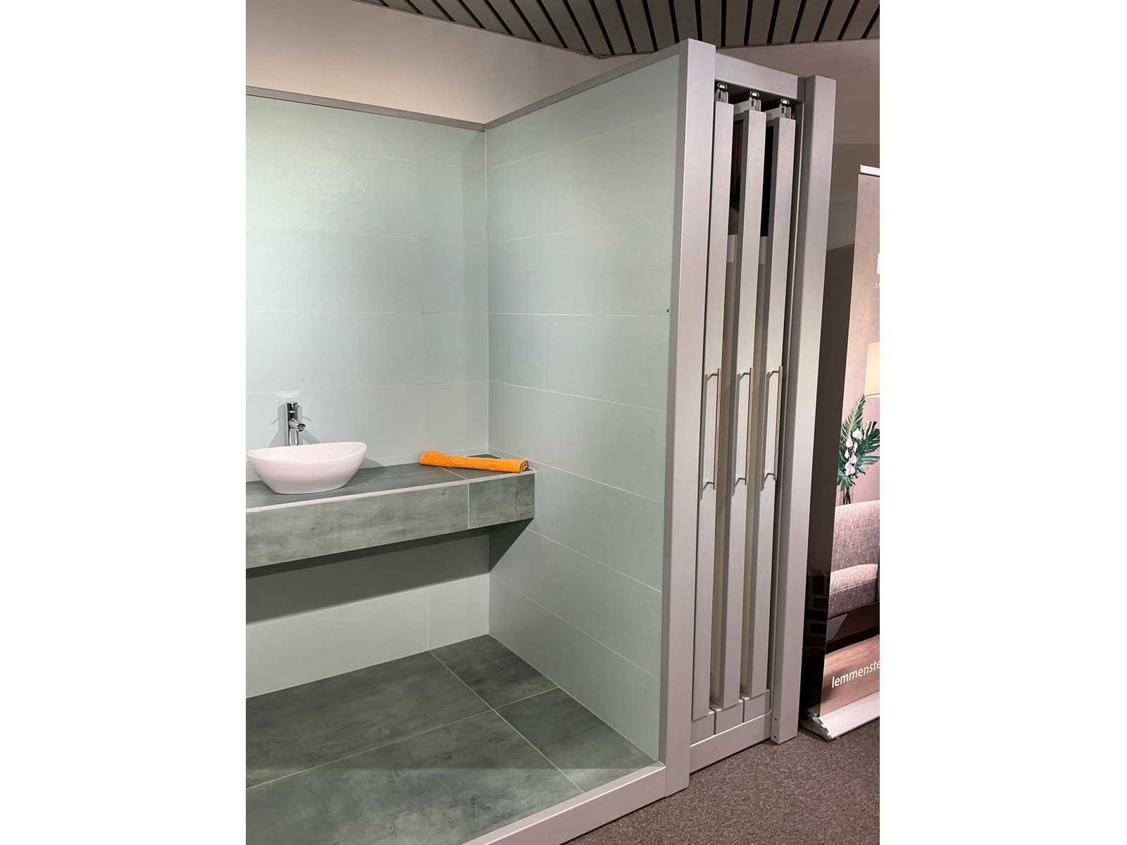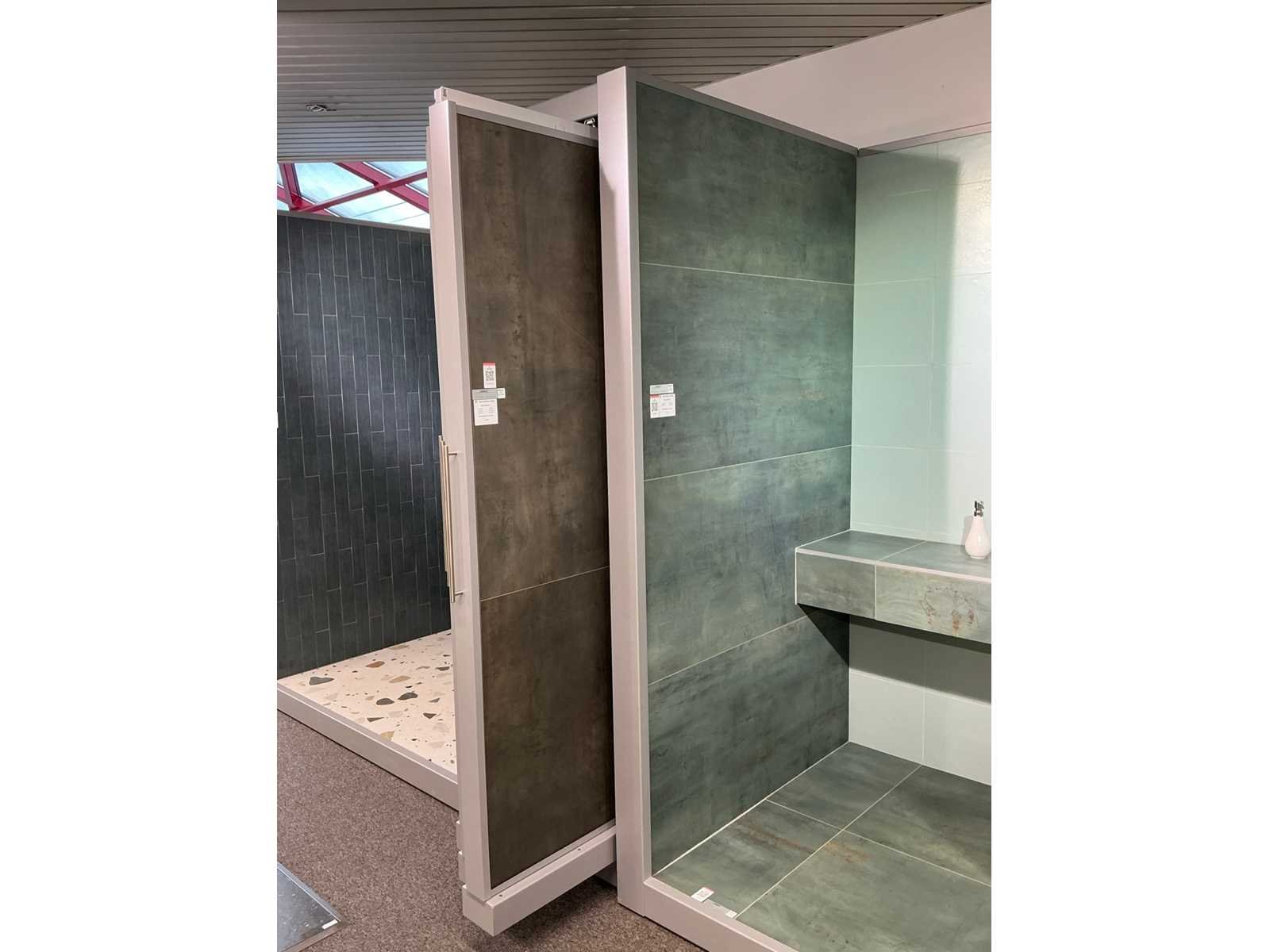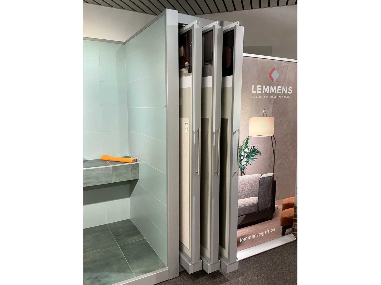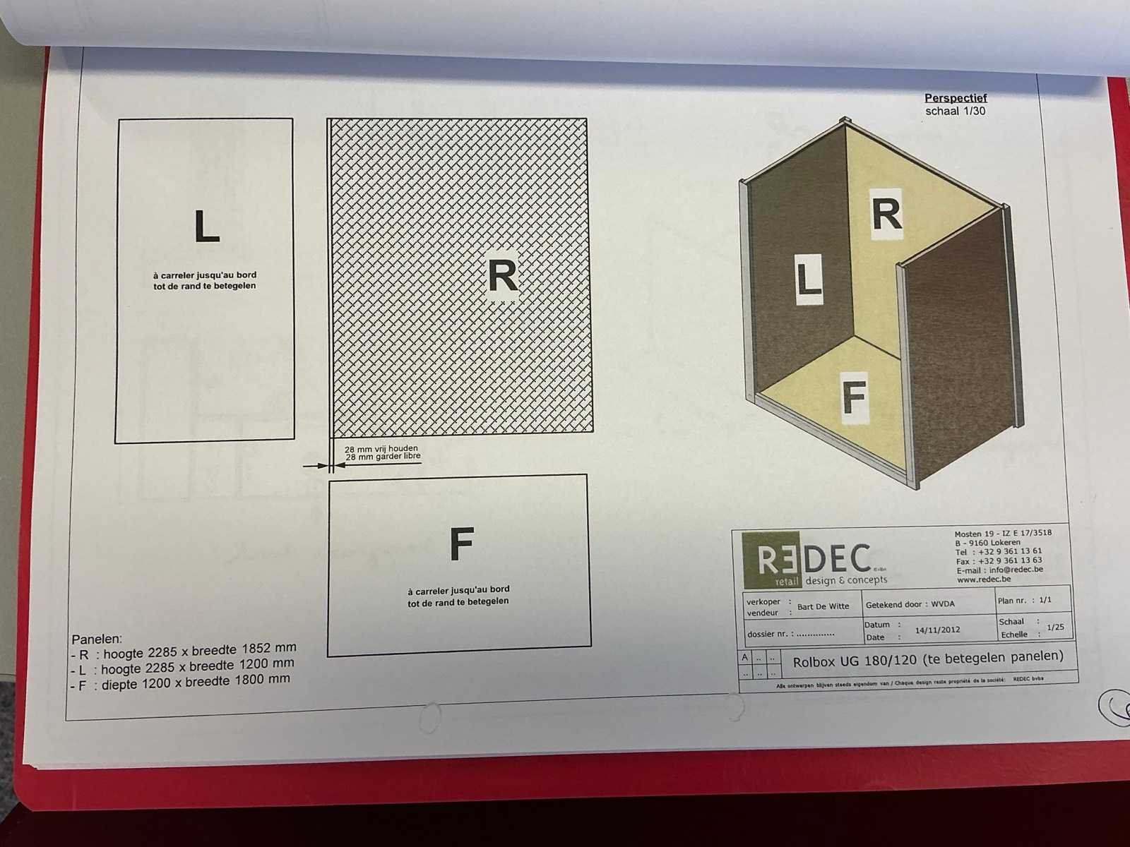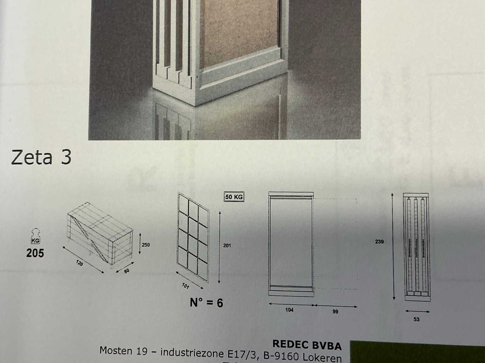 Bestaande uit REDEC Zeta 3 (2x), elk met afmetingen ca. 130 x 70 x 240cm + REDEC Rolbox UG 180/120 (2x), elk met afmetingen ca. 130 x 200 x 240cm. Door koper te demonteren van omgeving. Alle aangekleefde tegels en toebehoren MOETEN meegenomen worden door koper. Nee Merk: REDEC