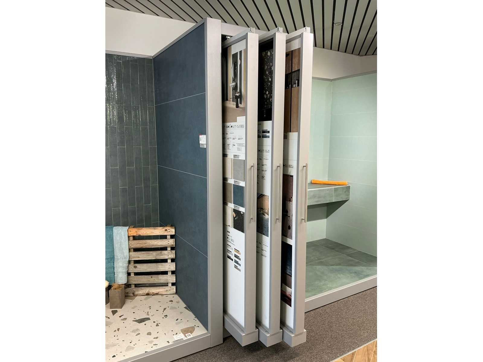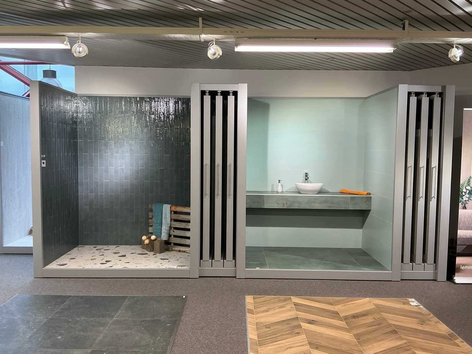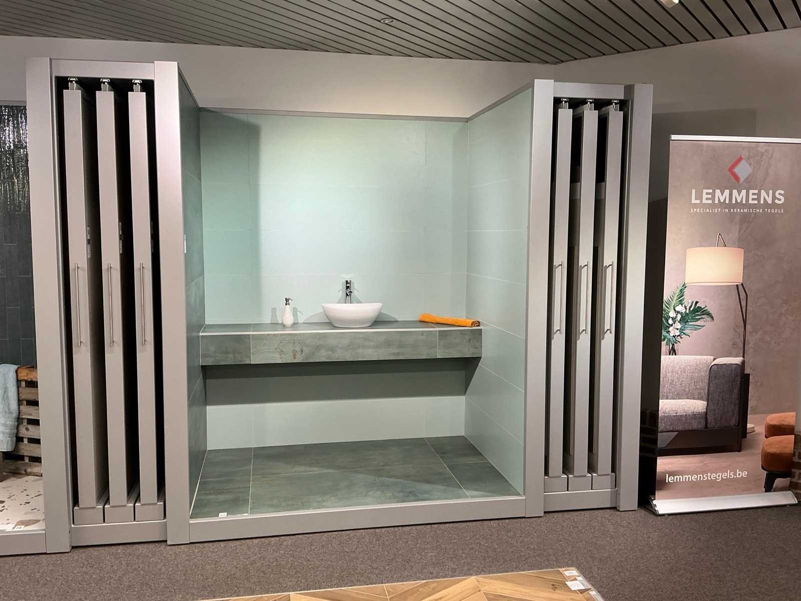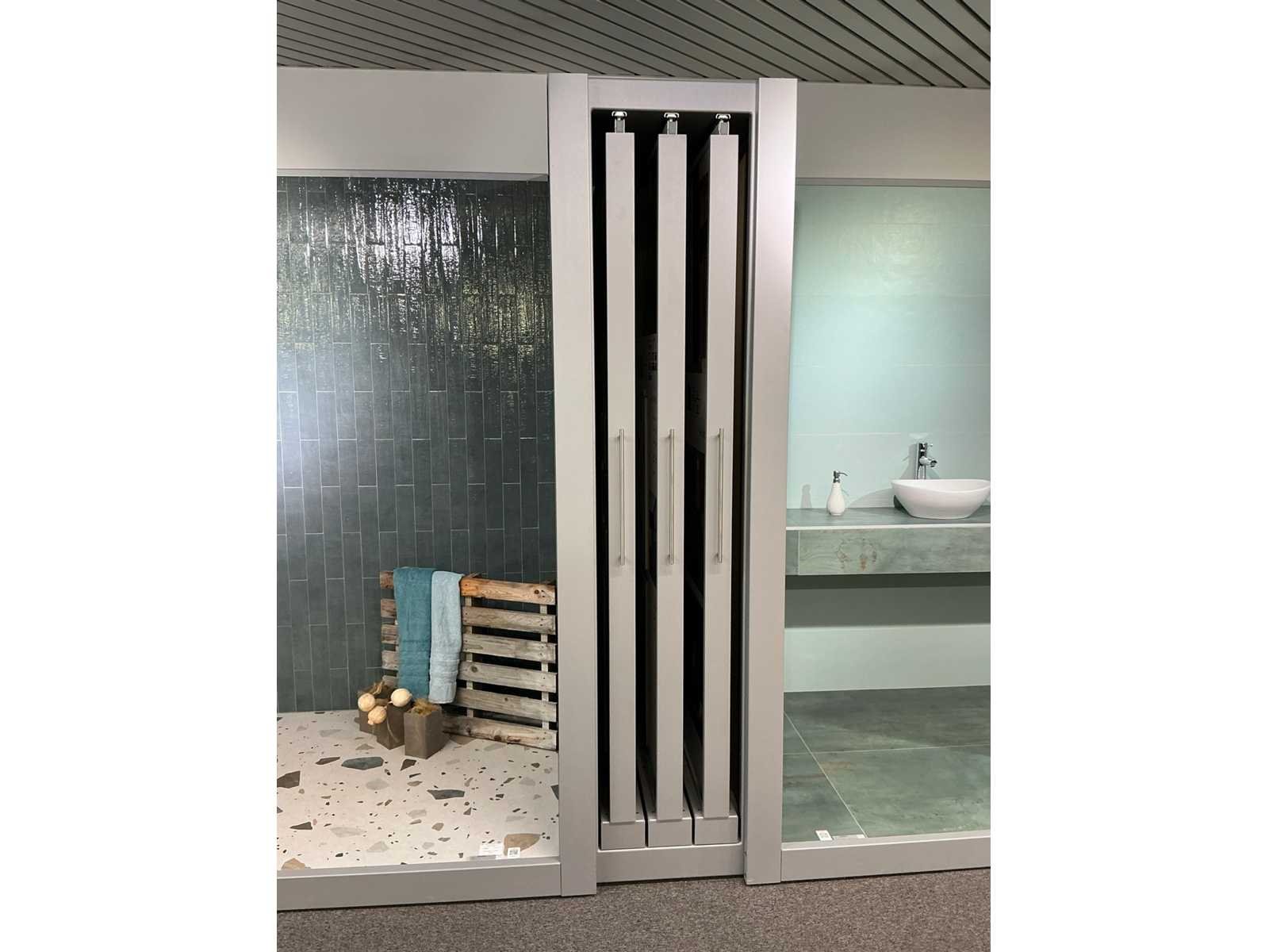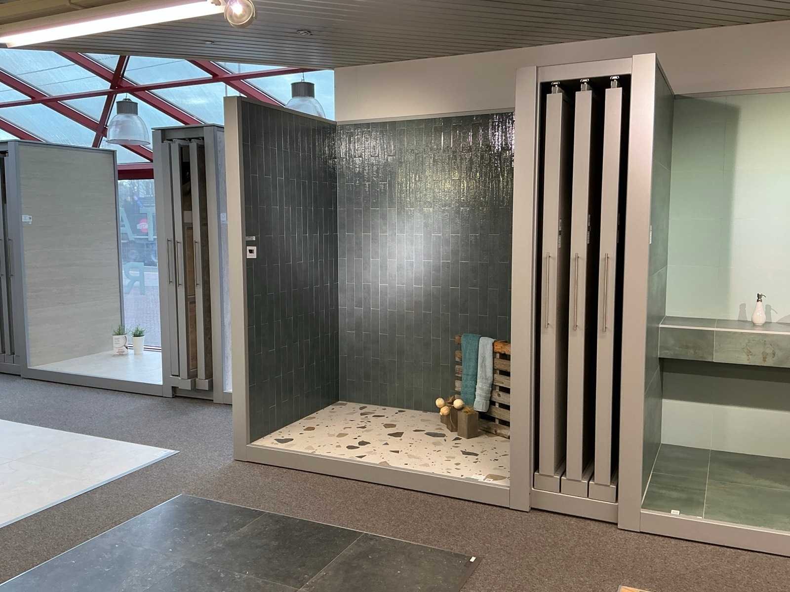 Bestaande uit REDEC Zeta 3 (2x), elk met afmetingen ca. 130 x 70 x 240cm + REDEC Rolbox UG 180/120 (2x), elk met afmetingen ca. 130 x 200 x 240cm. Door koper te demonteren van omgeving. Alle aangekleefde tegels en toebehoren MOETEN meegenomen worden door koper. Nee Merk: REDEC