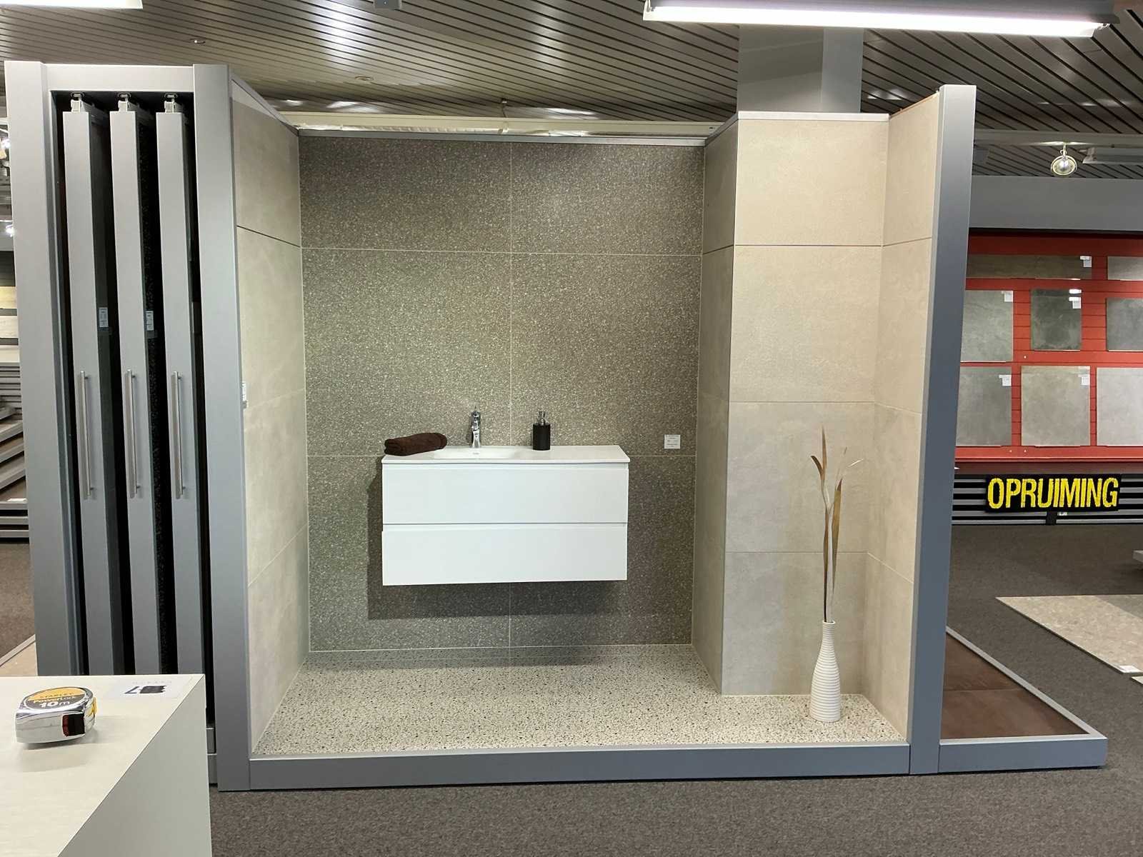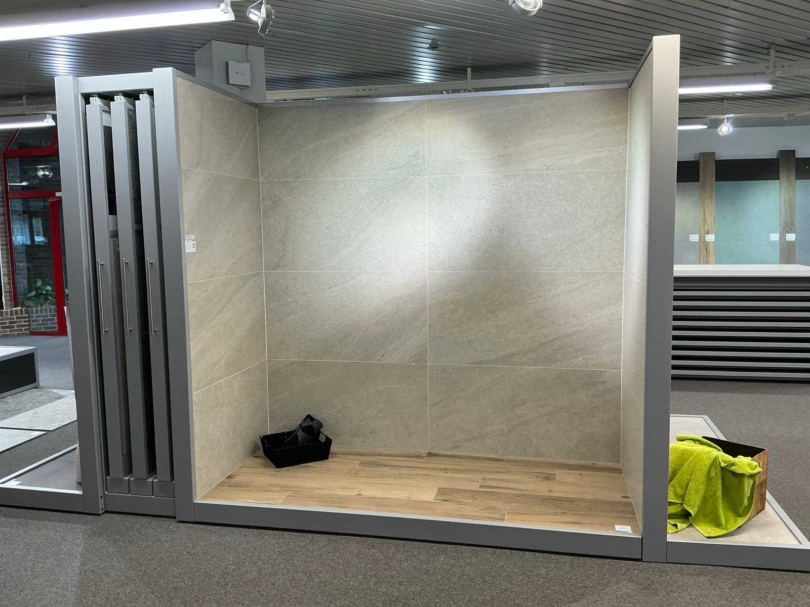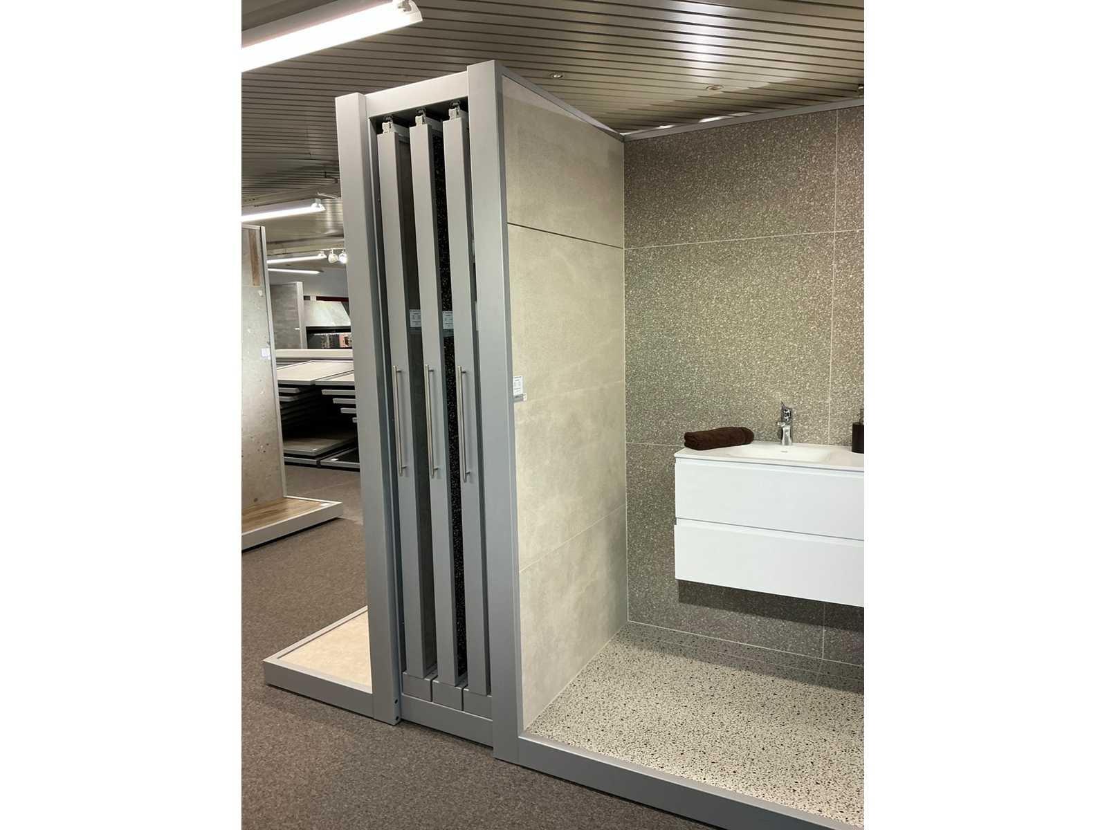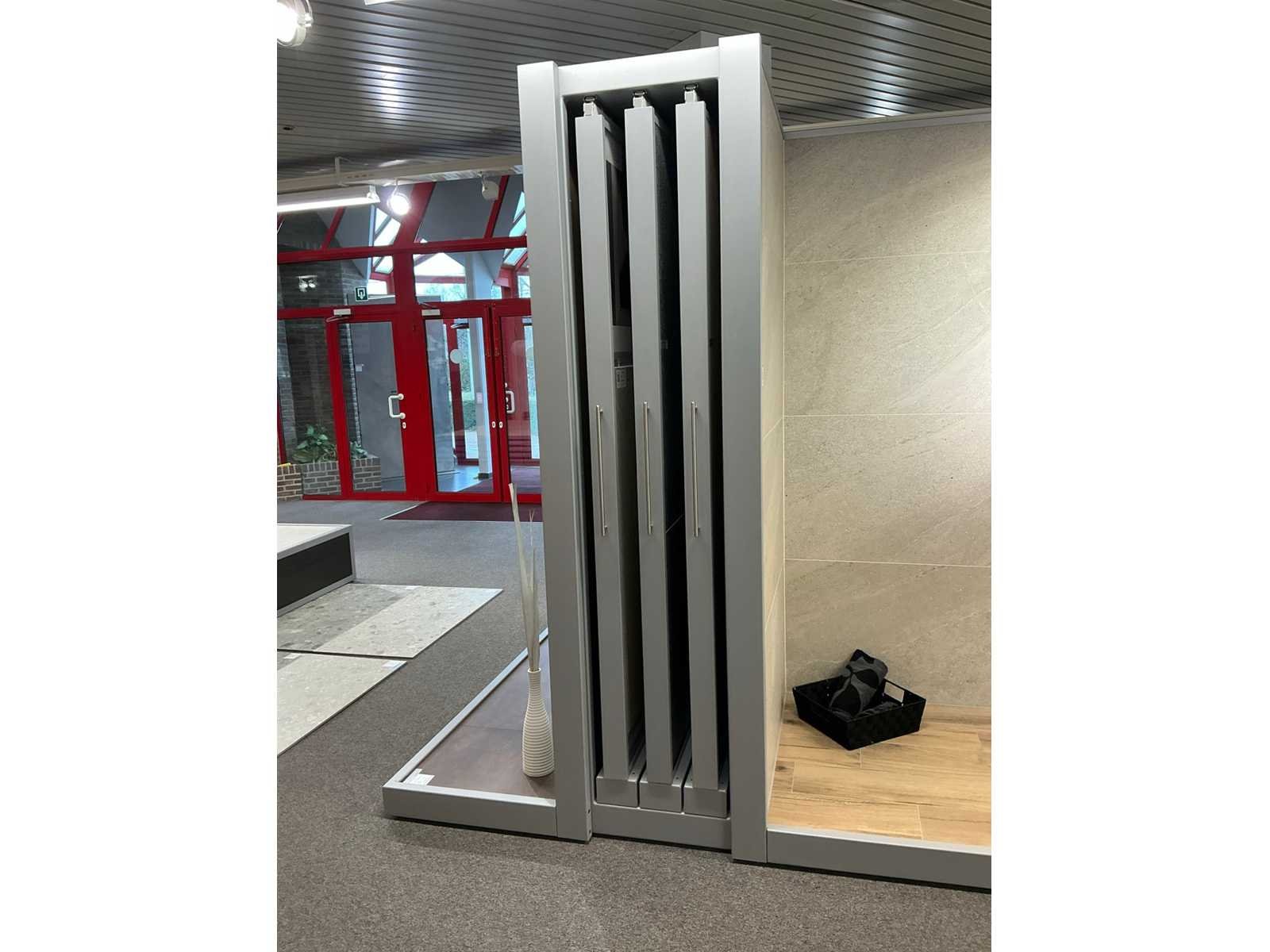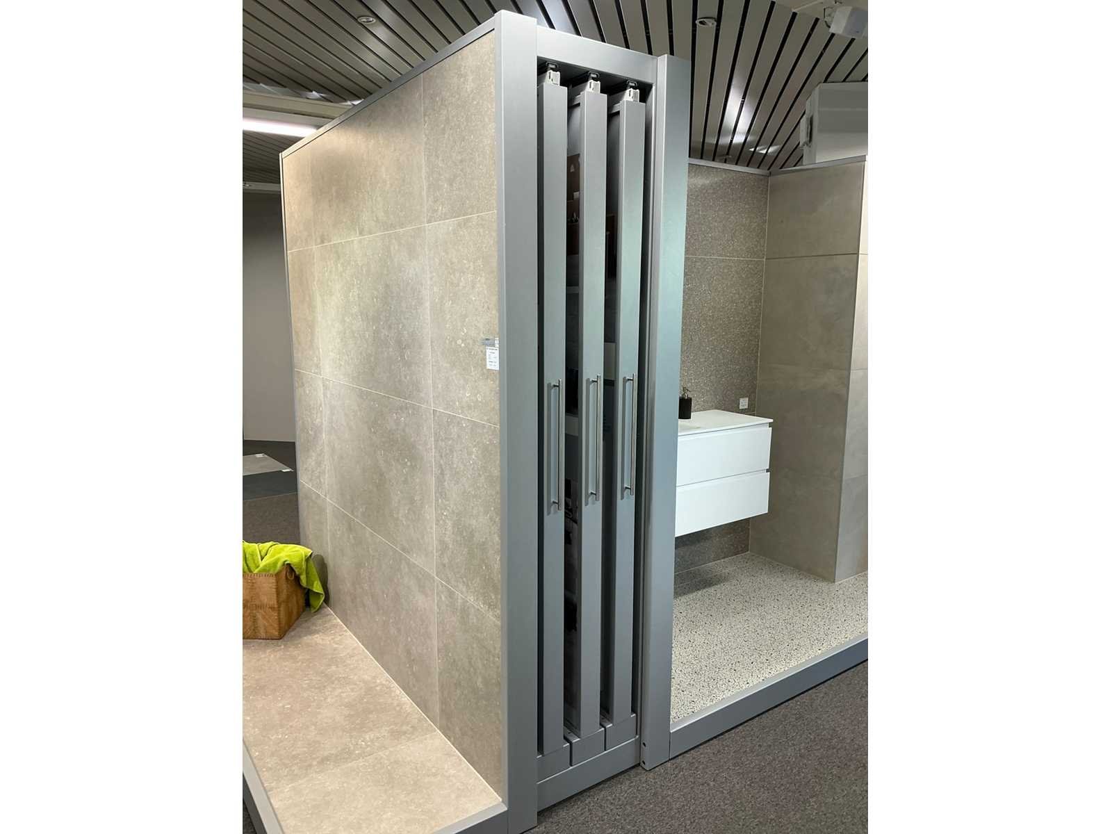 Bestaande uit REDEC Zeta 3 (2x), elk met afmetingen ca. 130 x 70 x 240cm + REDEC Rolbox L 210/60 (2x), elk met afmetingen ca. 130 x 75 x 240cm + REDEC Dubbele box op maat, met afmetingen ca. 237 x 101 x 240cm Door koper te demonteren van omgeving. Alle aangekleefde tegels en toebehoren MOETEN meegenomen worden door koper. Nee Merk: REDEC