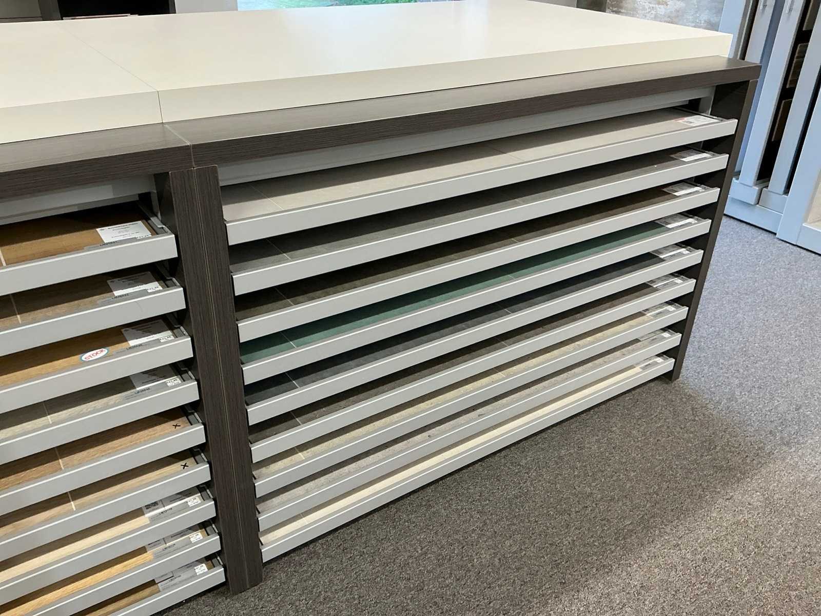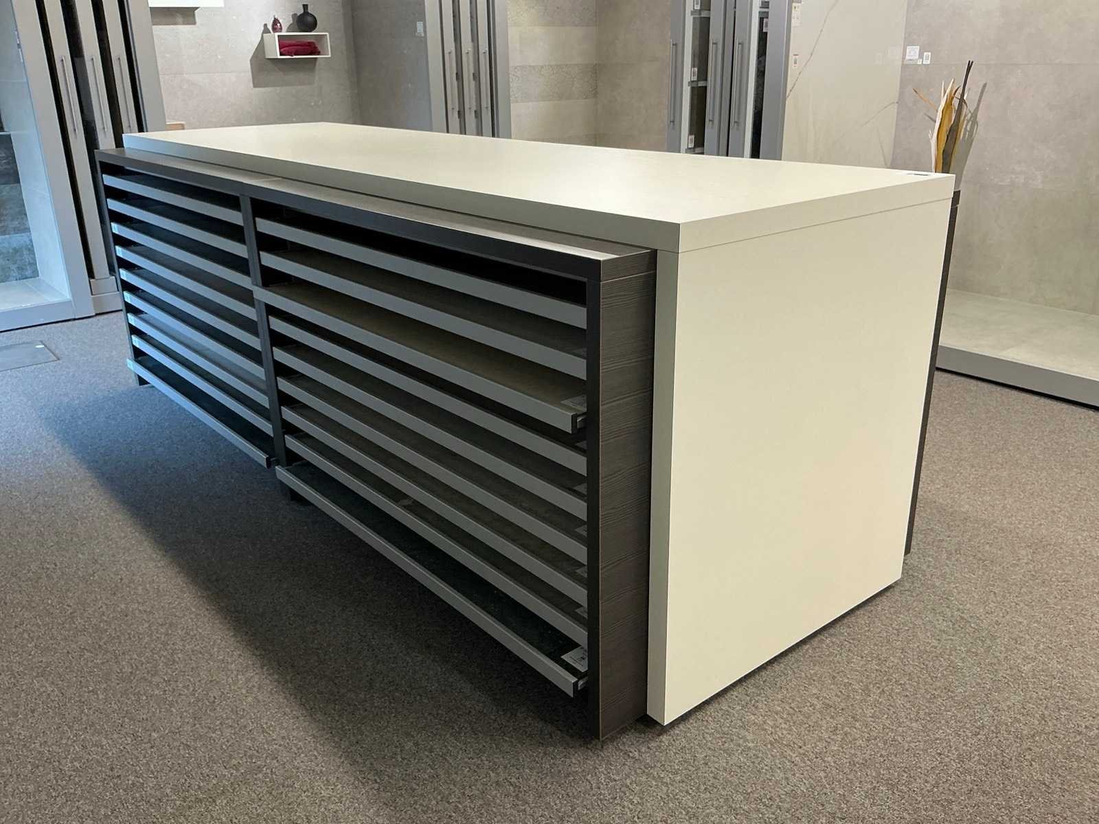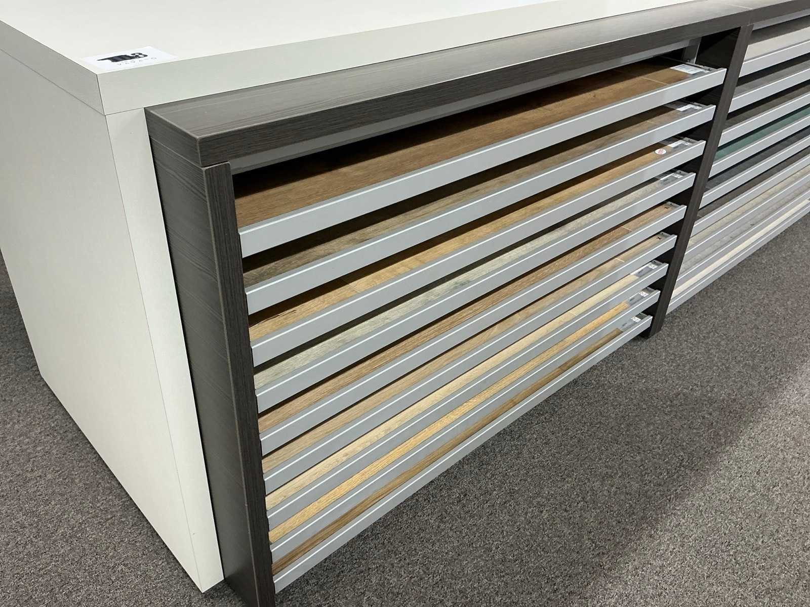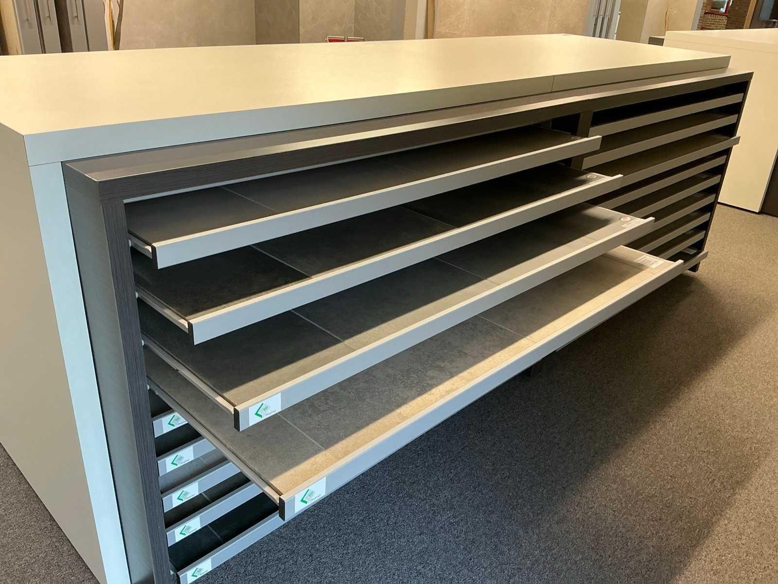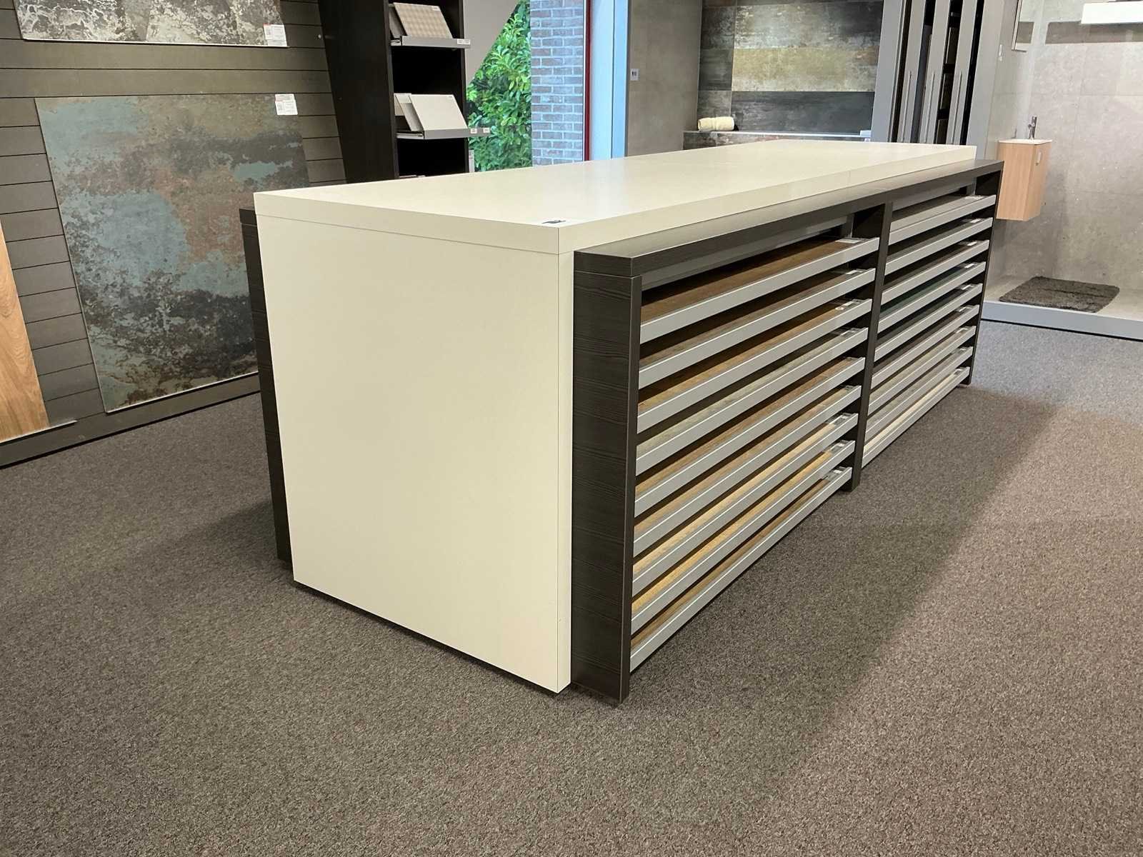 Bestaande uit 1x decorblok (320 MEL) en 2x REDEC Delta 18-142 R, elk voorzien van 18x schuifplateau. Te demonteren/verplaatsen van meubel door koper. Alle aangeplakte tegels en toebehoren MOETEN worden meegenomen door koper. Nee Merk: REDEC
